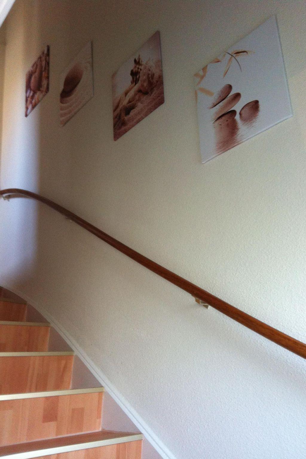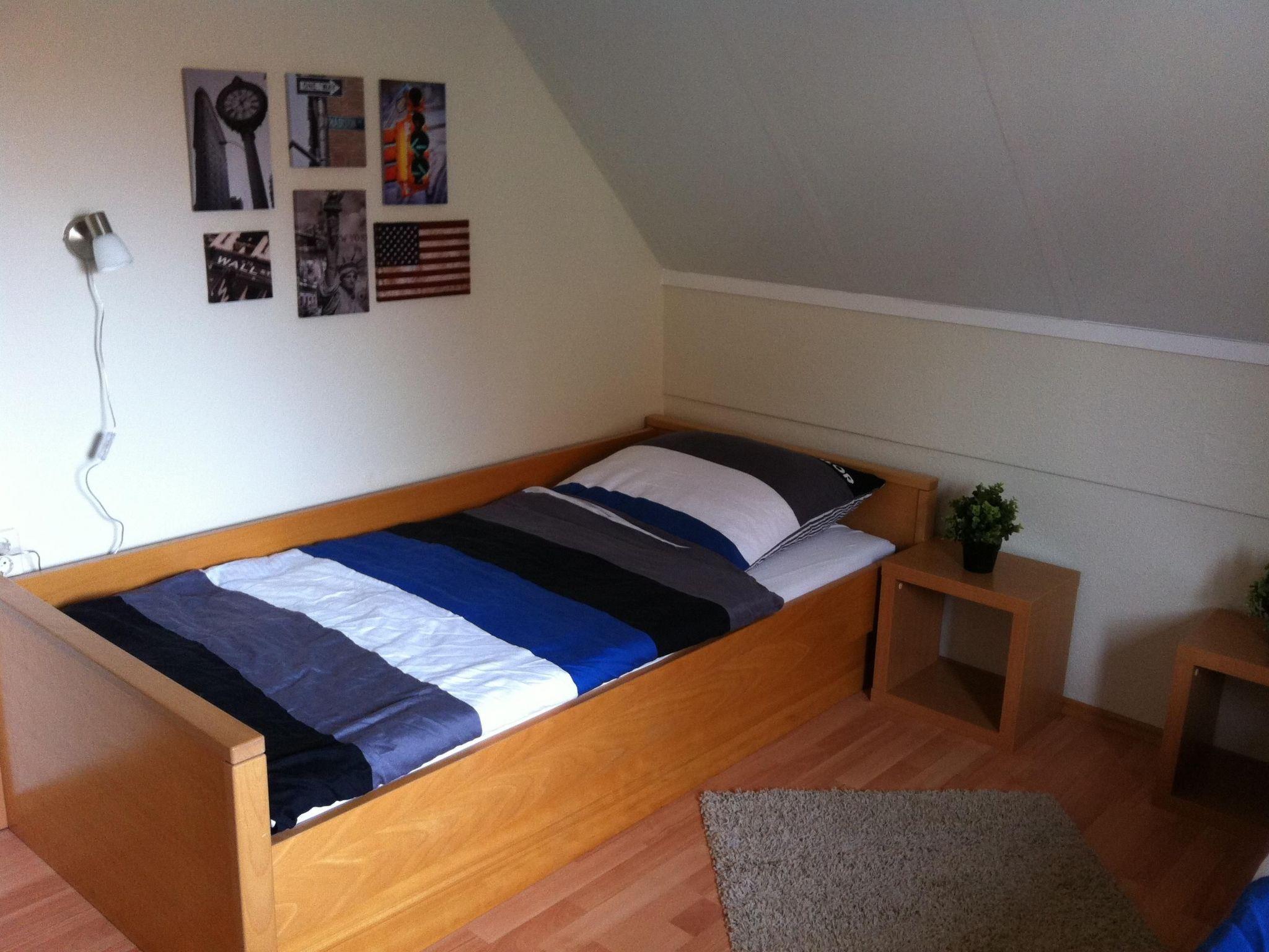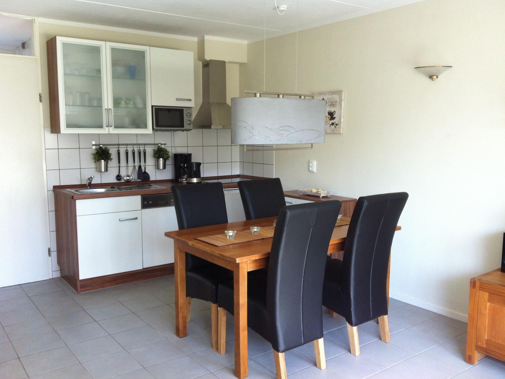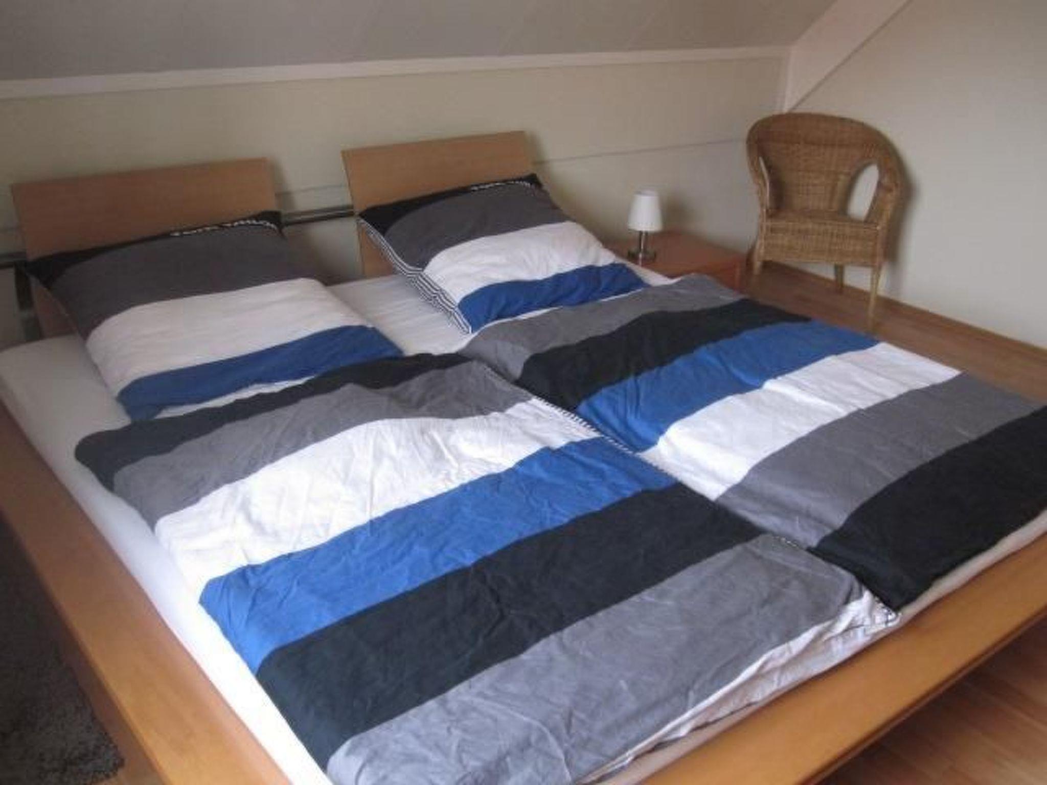 The house is fully equipped and furnished for four people. The ground floor has a living room with a kitchen unit including a dishwasher, ceramic hob and microwave (there was no space for an oven) and the bathroom has a shower. There are two bedrooms on the first floor, with a double bed (200 x 200cm) and two single beds (90 x 200cm). Both bedrooms have built-in cupboards with generous storage space. The house was completely renovated in 2015, including a new bathroom and new furniture. The ground floor has tiled flooring, while the first floor has laminate. A flatscreen TV with cable channels, a DVD player and a stereo system are provided in the living room. There is a second flatscreen TV with a DVB-T receiver in one of the bedrooms. All the rooms can be heated. There is no Internet connection.