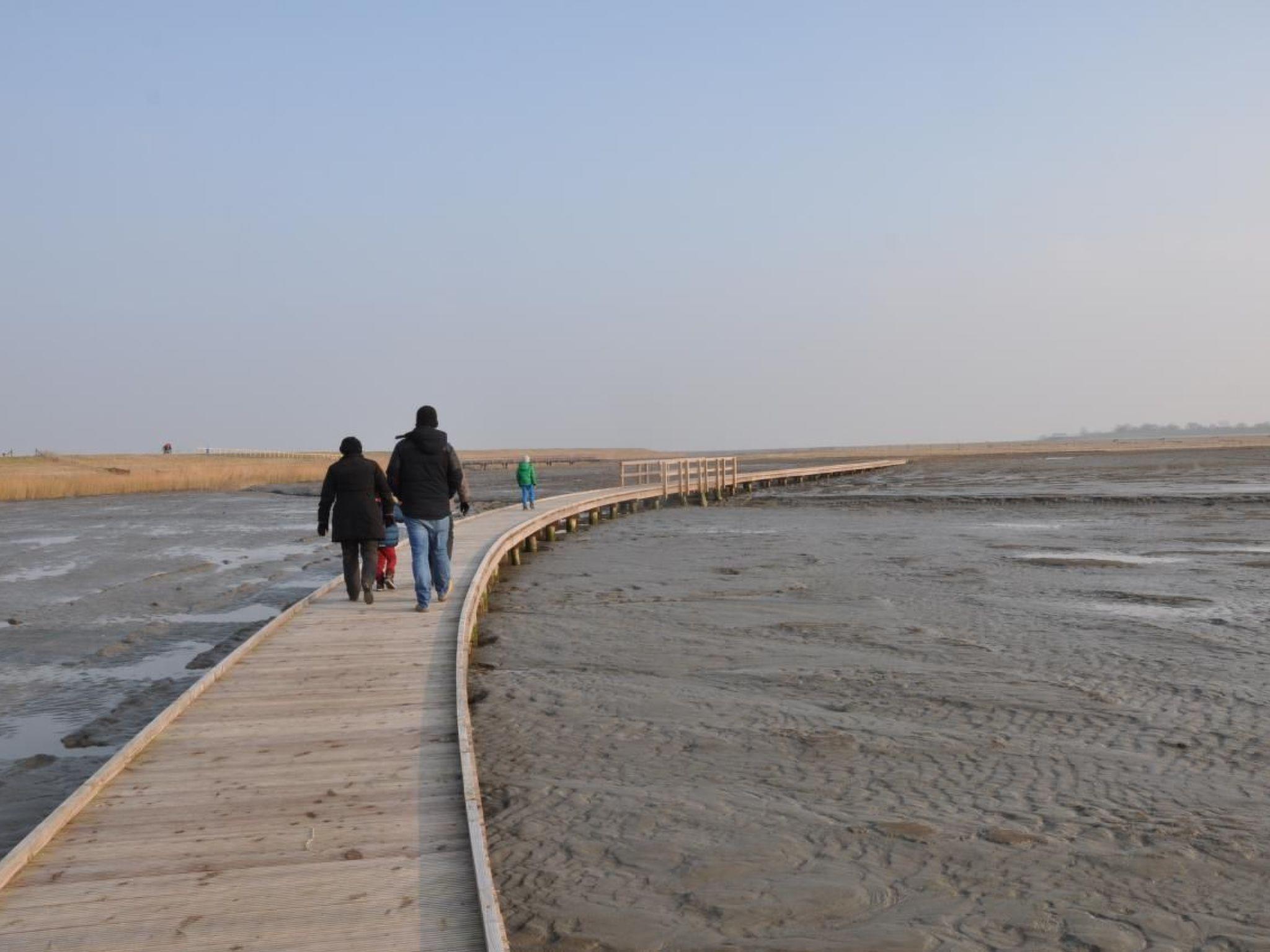 The holiday home is perfectly located in Eckwarderhörne, just a few minutes' walk from the dyke, an idyllic inland lake and the lido, surrounded by a wide range of leisure facilities such as a large swimming/angling lake, playgrounds, tennis and volleyball courts and a bicycle hire shop. The surrounding area offers a wide range of excursions such as walks in the Wadden Sea, cycling tours or a visit to the nearby lido with its fascinating flora and fauna.