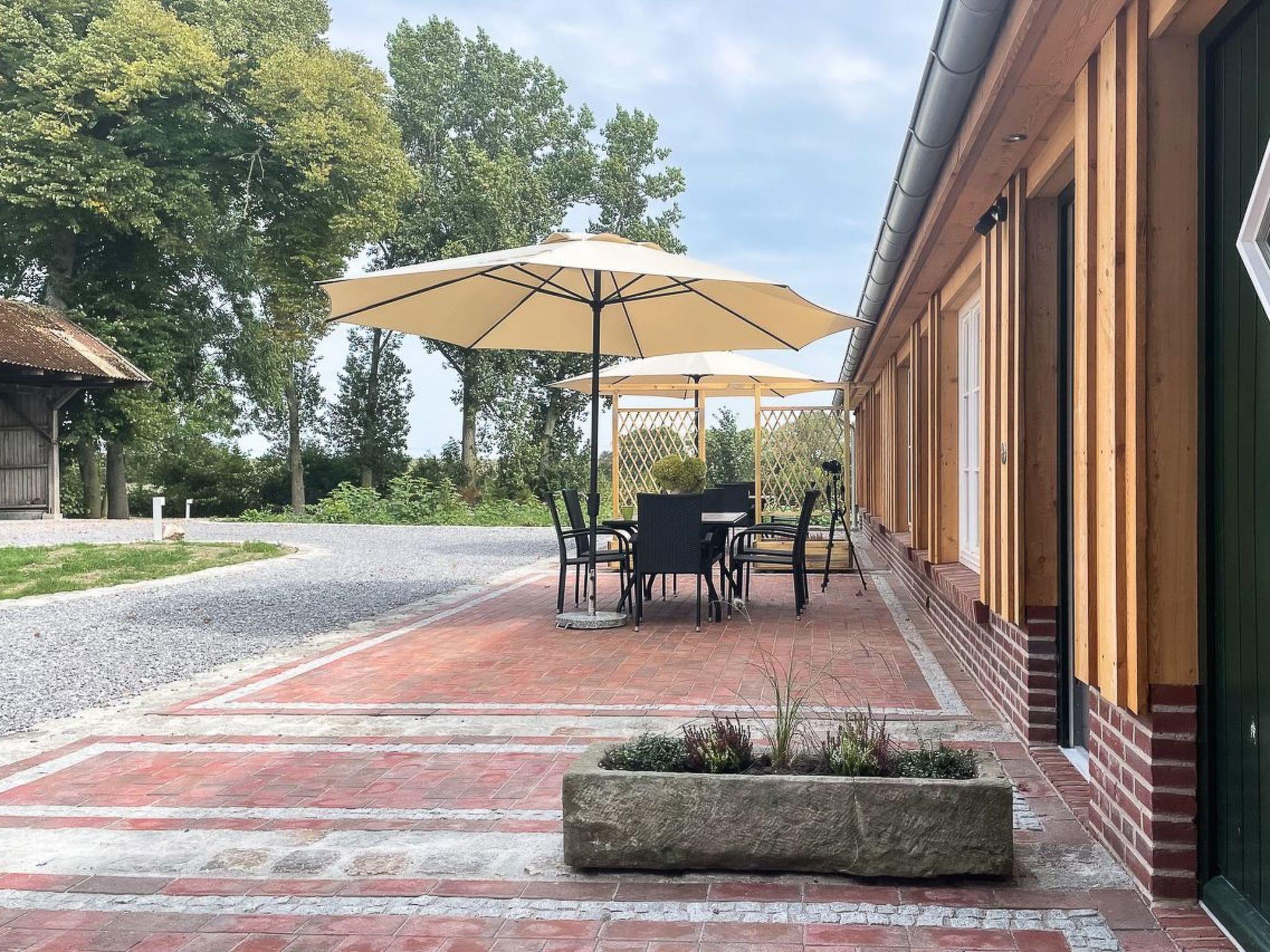 The comfortable and cosy Mettje holiday flat on the Butjadingen peninsula is located on a side street with little traffic. It is part of a large historic, listed farm complex and is located in the immediate vicinity of the Lower Saxony Wadden Sea National Park, where the "Langwarder Groden" nature trail also begins.
