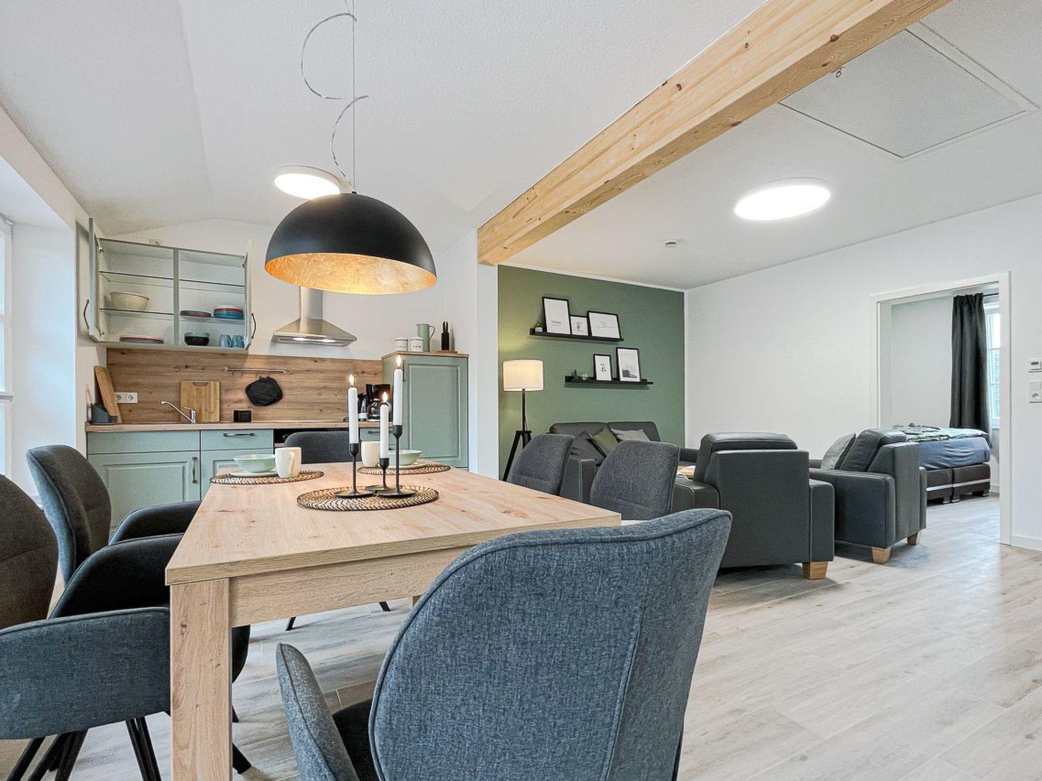 The flat is barrier-free. A walbox is available for electric cars and there is storage space for bicycles etc. in the large hallway. E-bikes can also be charged there. A utility room with washing machine and tumble dryer is available to all guests for communal use. The hosts offer a bread roll service. A cot and high chair are available for small children on request.