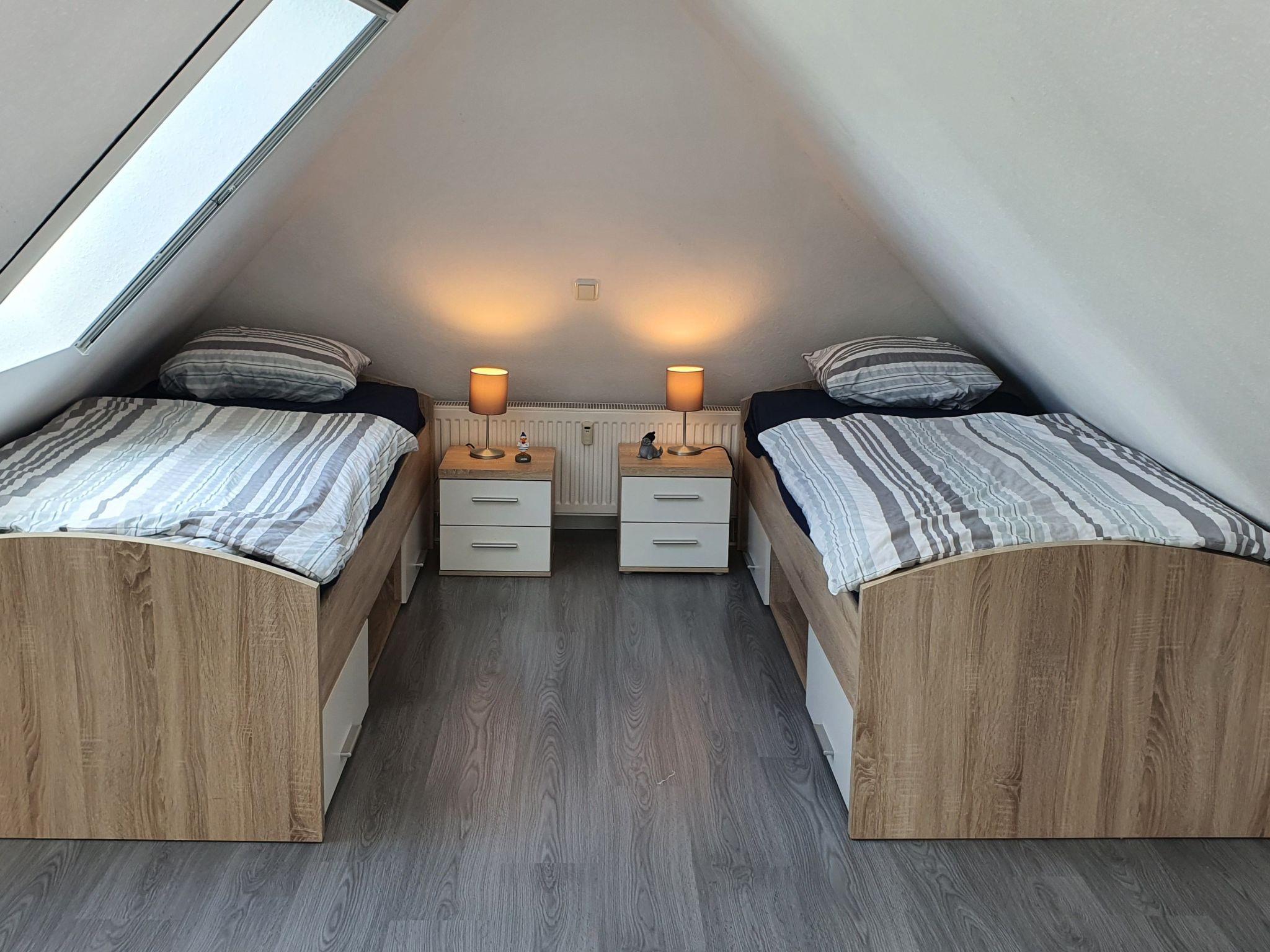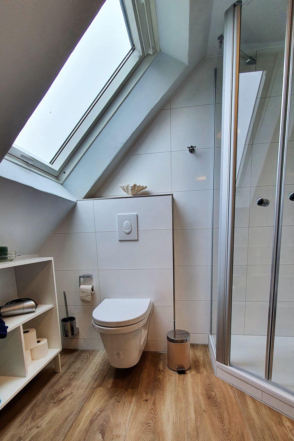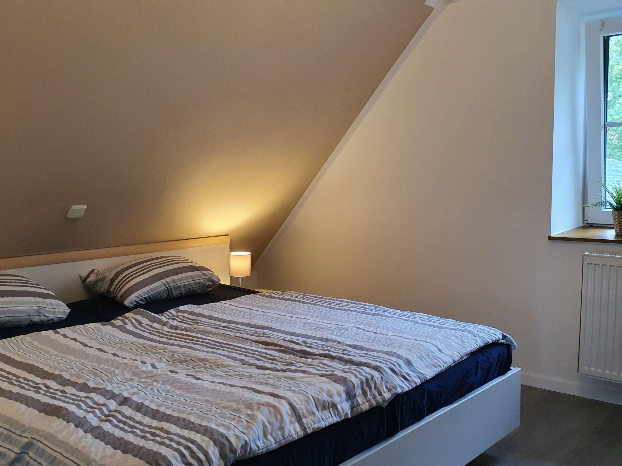 The "Galeriewohnung" is characterised by its modern furnishings and spacious layout over 110 m² and three floors. On the ground floor, you are greeted by an inviting entrance area with a stylish industrial-look shower room. A staircase takes you to the first of the light-flooded living floors, which has two double bedrooms and another shower room. The living floor has a spacious eat-in kitchen with a dining table for six people and a cosy living area with an electrically extendable sofa, a 65" TV and a wood-burning stove for cosy hours. There is additional sleeping accommodation on the gallery, which is accessible via another staircase.