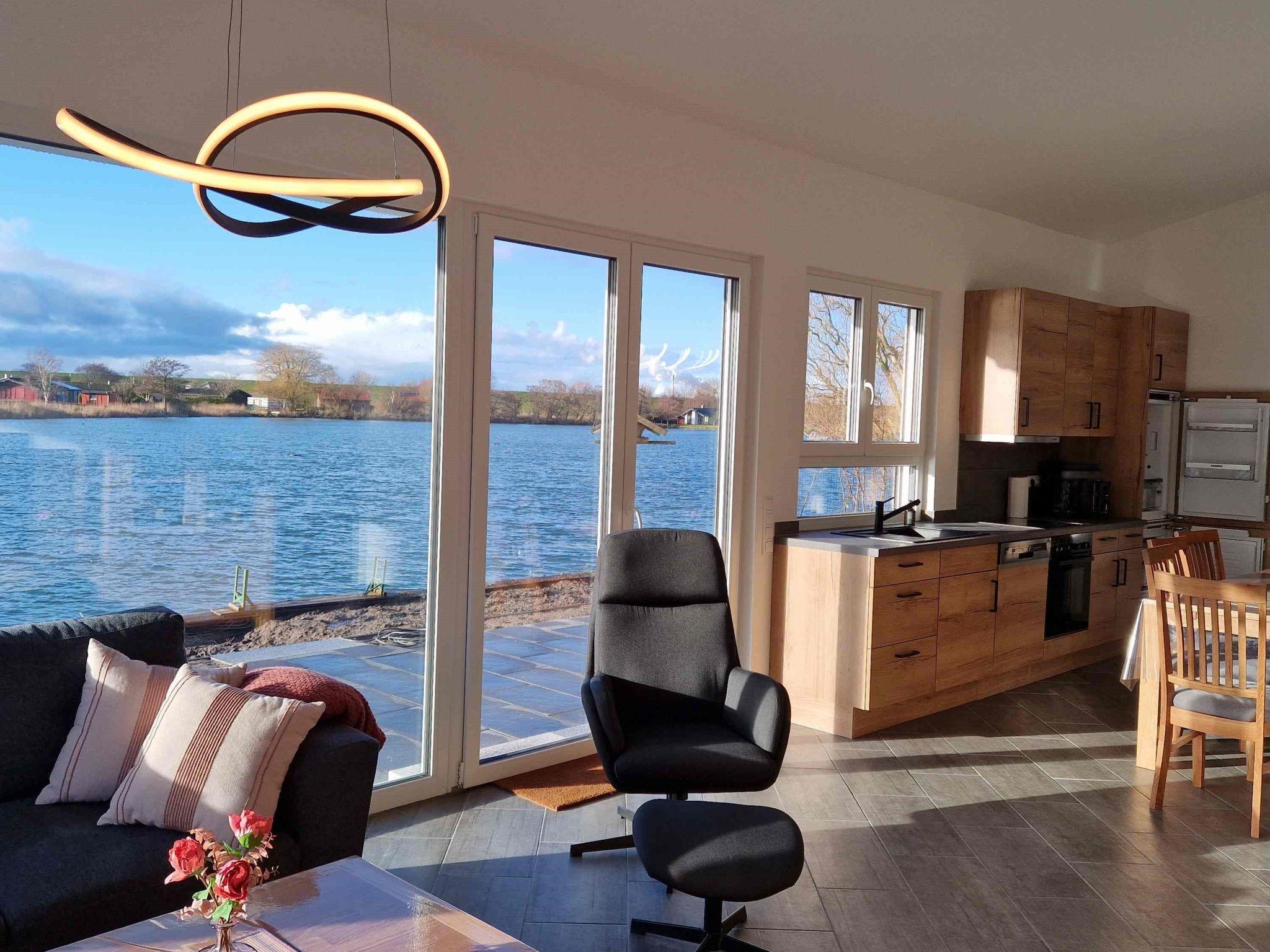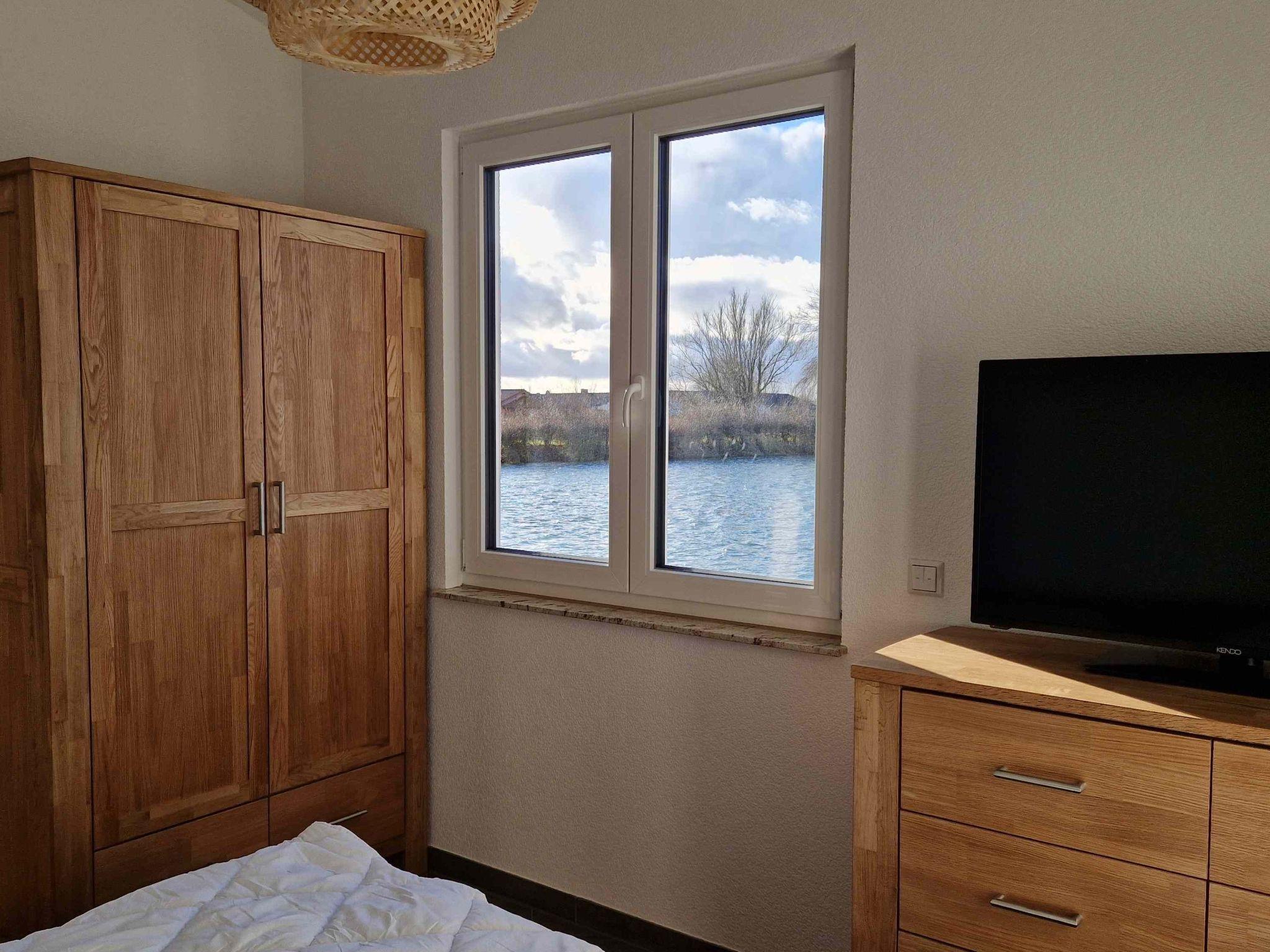 Newly built wooden house A 17 with its own exclusive access to the inland lake with dyke view, 80 sqm living space, first occupancy December 2024, pets allowed (max. 2), carport, electric external venetian blinds living room and kitchen, electric shutters in the 3 bedrooms, all rooms tiled, 2 bathrooms with walk-in shower, 1 x wall-mounted towel radiator, TV in the living room and in the 3 bedrooms. For 6 people with 3 bedrooms and 2 full bathrooms. Private 367 sqm plot with private access to the lake- 3 bedrooms (2 bedrooms with double beds 1.80m x 2.00m and 2 x single beds 0.90m x 2.00m)- living room with large floor-to-ceiling windows with beautiful views of the lake- fully equipped fitted kitchen with dishwasher, 1 storage room, 1 hallway, sun terrace with garden furniture and barbecue- 1 carport + 1 additional parking space