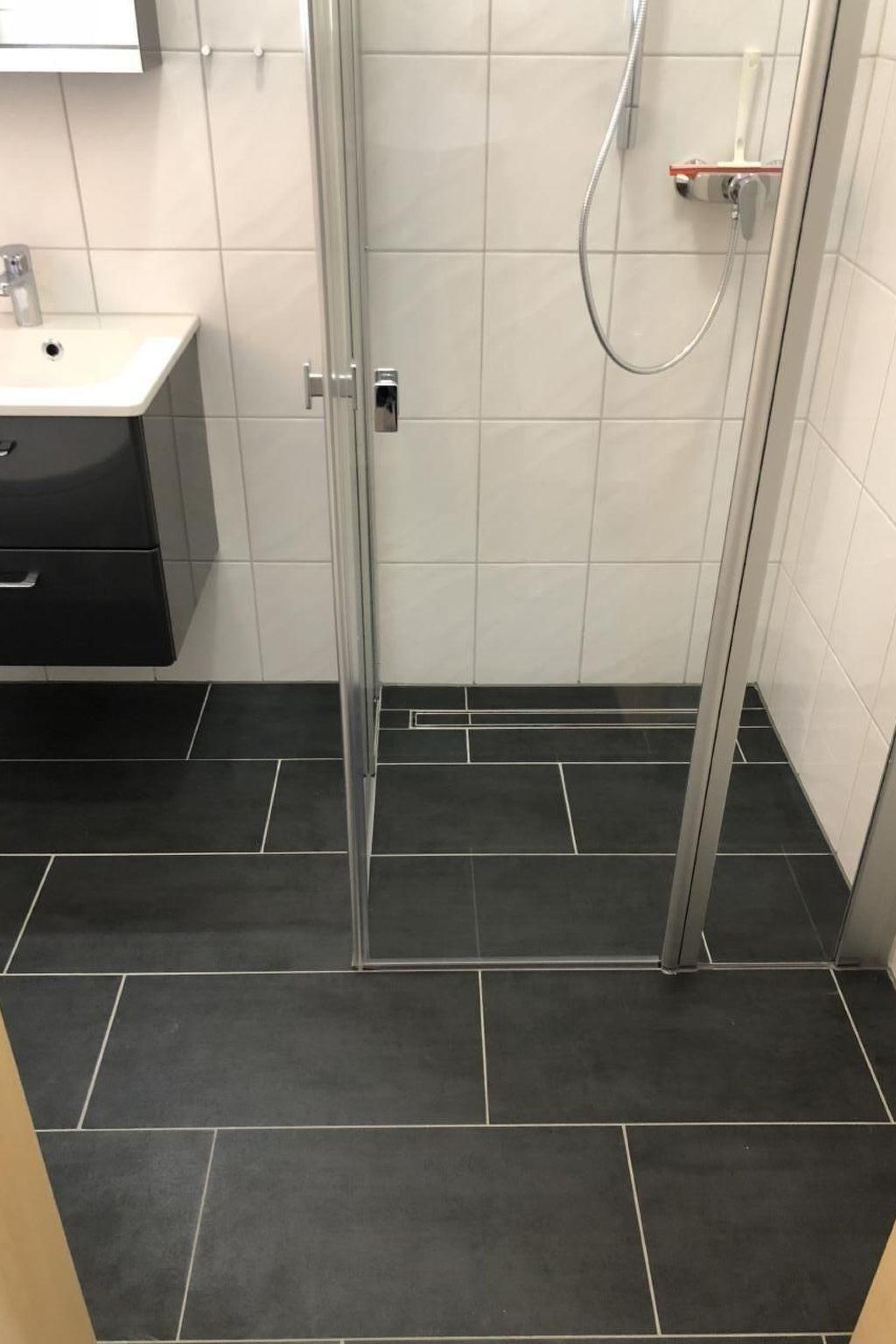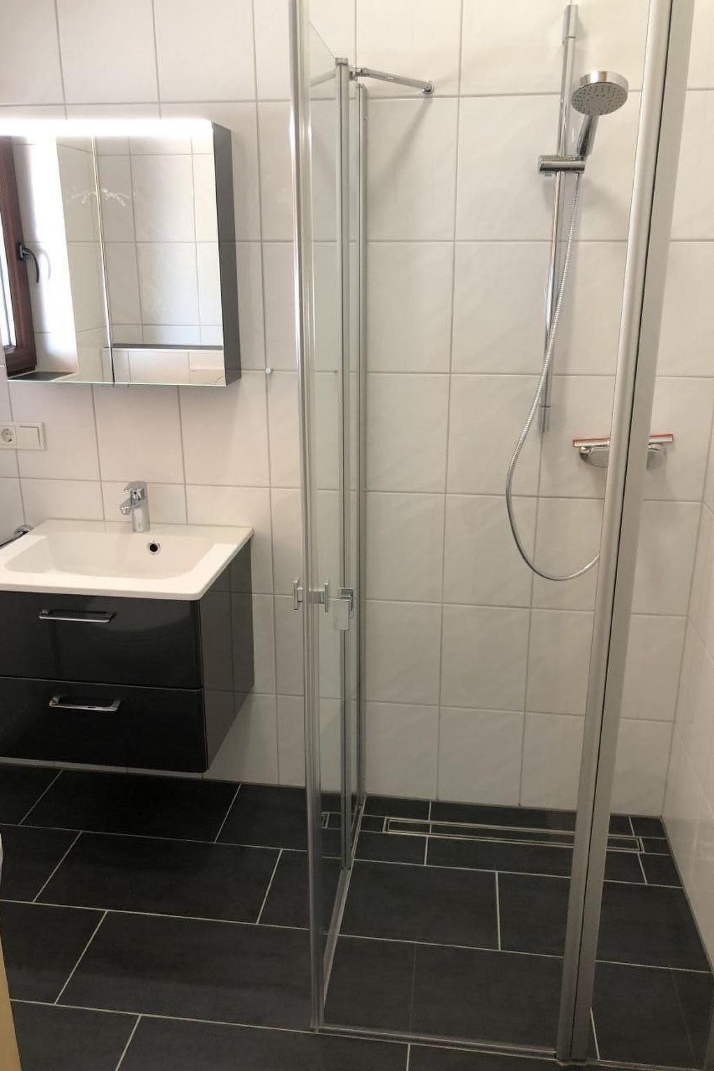 3 bedrooms with 6 beds at ground level: 1 bedroom with double bed 1.80x2.00 m, 2 bedrooms each with 2x single bed 0.90x2.00 m, bathroom with walk-in shower