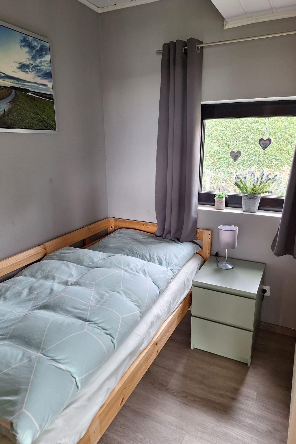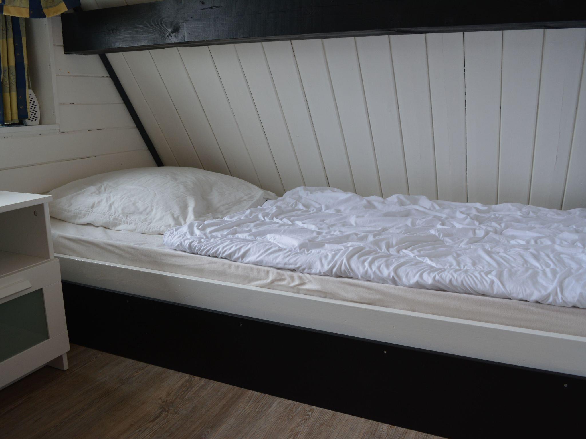 The house can accommodate up to five people. The ground floor is approx. 50 m² in size and consists of the following rooms: Large living room with integrated kitchen and dining area, access to the terrace; small room with a bed, large bathroom with underfloor heating, walk-in shower, toilet and washbasin; utility room with washing machine and extra WC. On the upper floor there is a bedroom with a double bed and a bedroom with two single beds. With a travel cot (including pillow, duvet and extra mattress) and a children's high chair, which are provided free of charge by the owner, as well as a door gate at the top, a toilet seat for children and a stool in the bathroom, the house offers family-friendly facilities. Radio/CD, television (satellite TV) and DVD player are also available. Internet/WLAN is also provided free of charge by the owner.