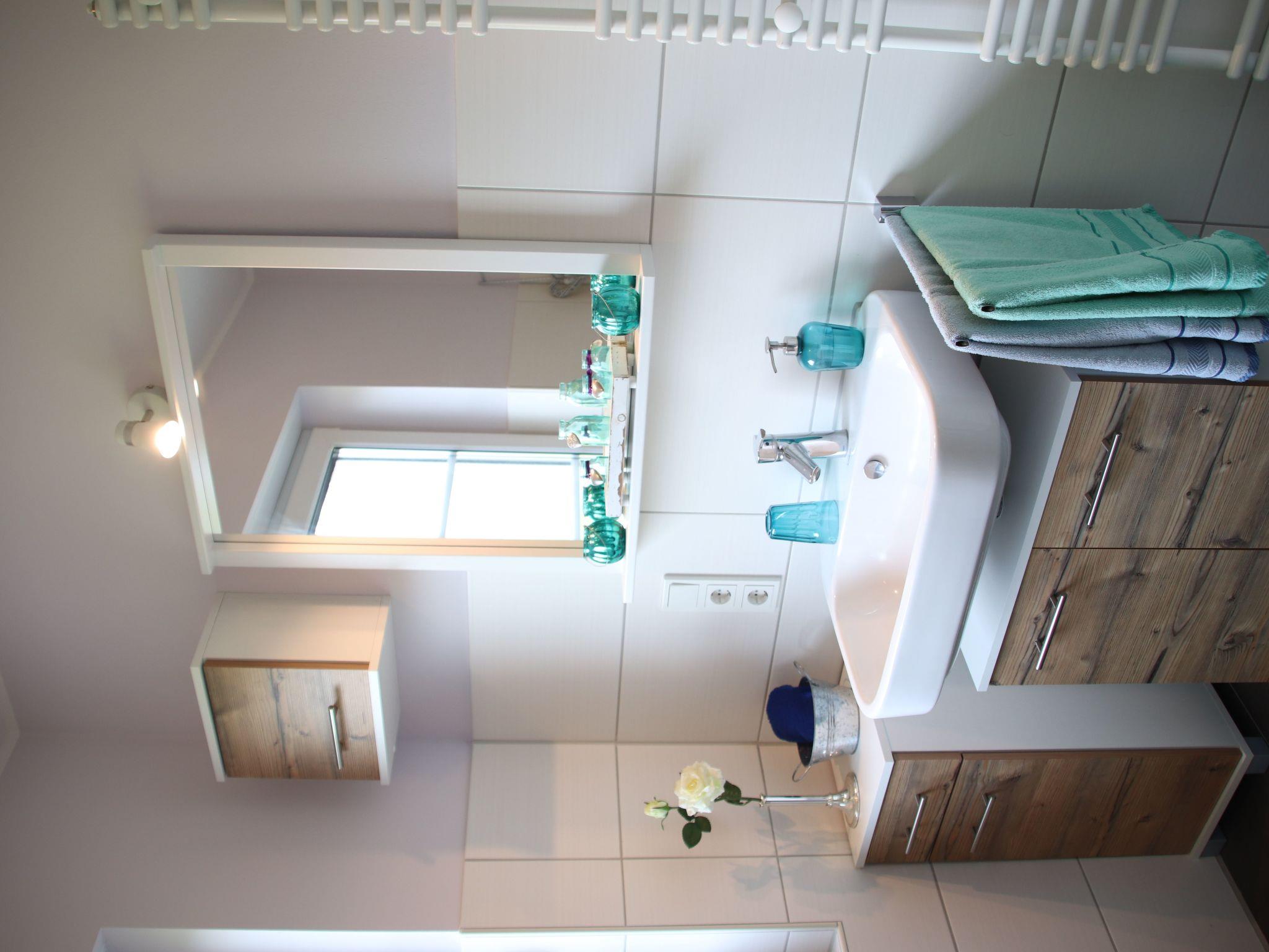 There is a bathroom on both floors. On the top floor there is a daylight-bright, large bathroom with bathtub, shower, WC and two washbasins. The counterpart on the ground floor is a daylight-bright shower room with WC. After a trip to the beach or a relaxing sauna session, take a seat in the cosy living area. A wood-burning stove provides cosy warmth and a high-quality corner sofa and a comfortable rattan armchair invite you to linger. Of course, a flat-screen TV also provides entertainment here, which can be used for your film night with satellite TV, TV-USB connection and DVD player. The well-equipped fitted kitchen with open-plan dining area allows you to cater for yourself comfortably and extensively. From a dishwasher and a cooker with ceramic hob to various coffee machines, all the appliances you could wish for are available. All rooms are equipped with electric shutters and underfloor heating. Bedrooms, terrace and bathrooms also have insect screens. There is a tumble dryer and washing machine in the storeroom (for a fee). Extensive children's equipment (e.g. children's crockery, high chair, children's cutlery, wooden baby cot with mattress and a stair gate) is available.