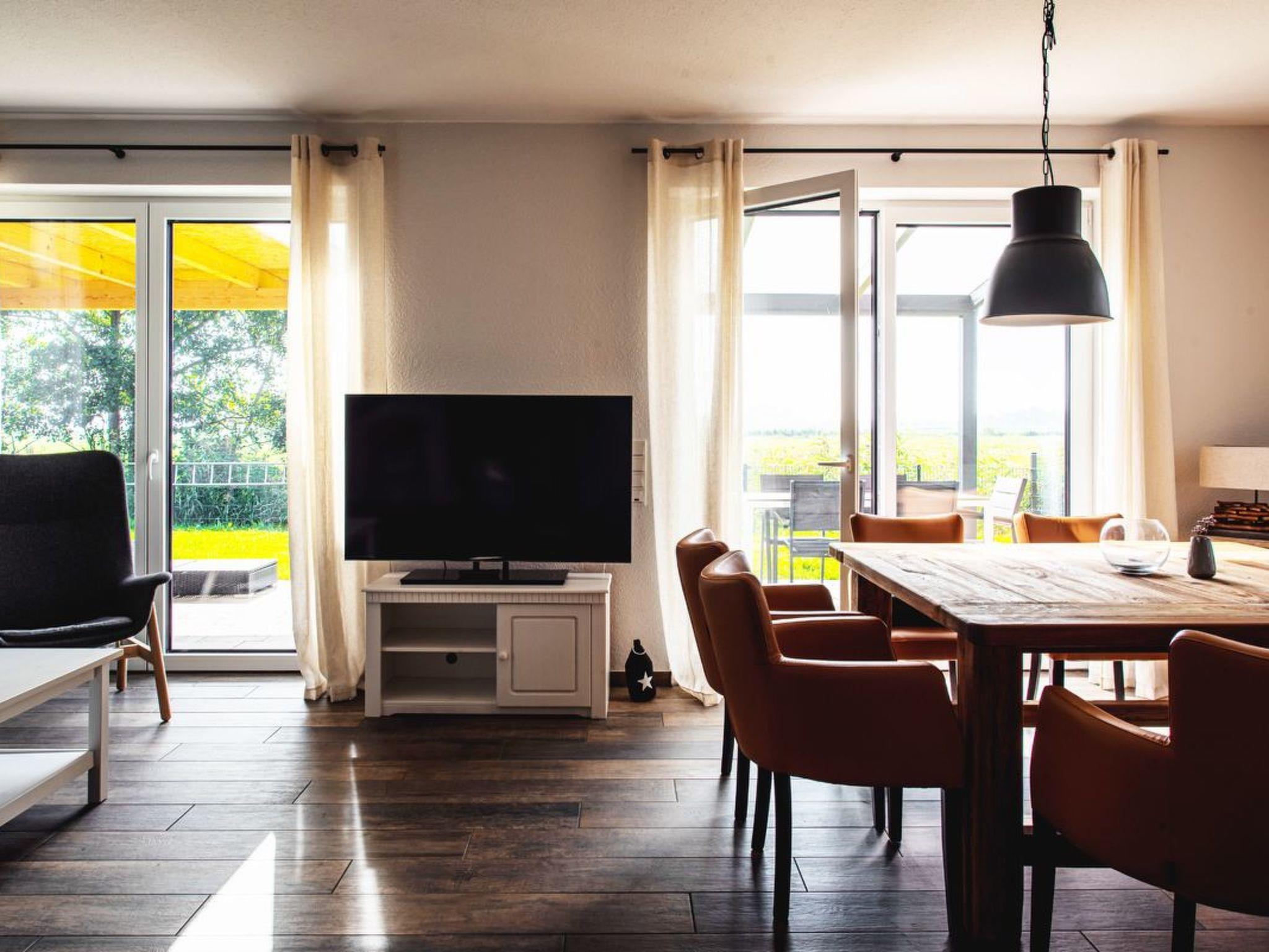 The holiday home welcomes you all year round: in summer, the covered terrace and garden and in winter, the cosy couch in front of the stove invite you to enjoy the view of the open meadows.