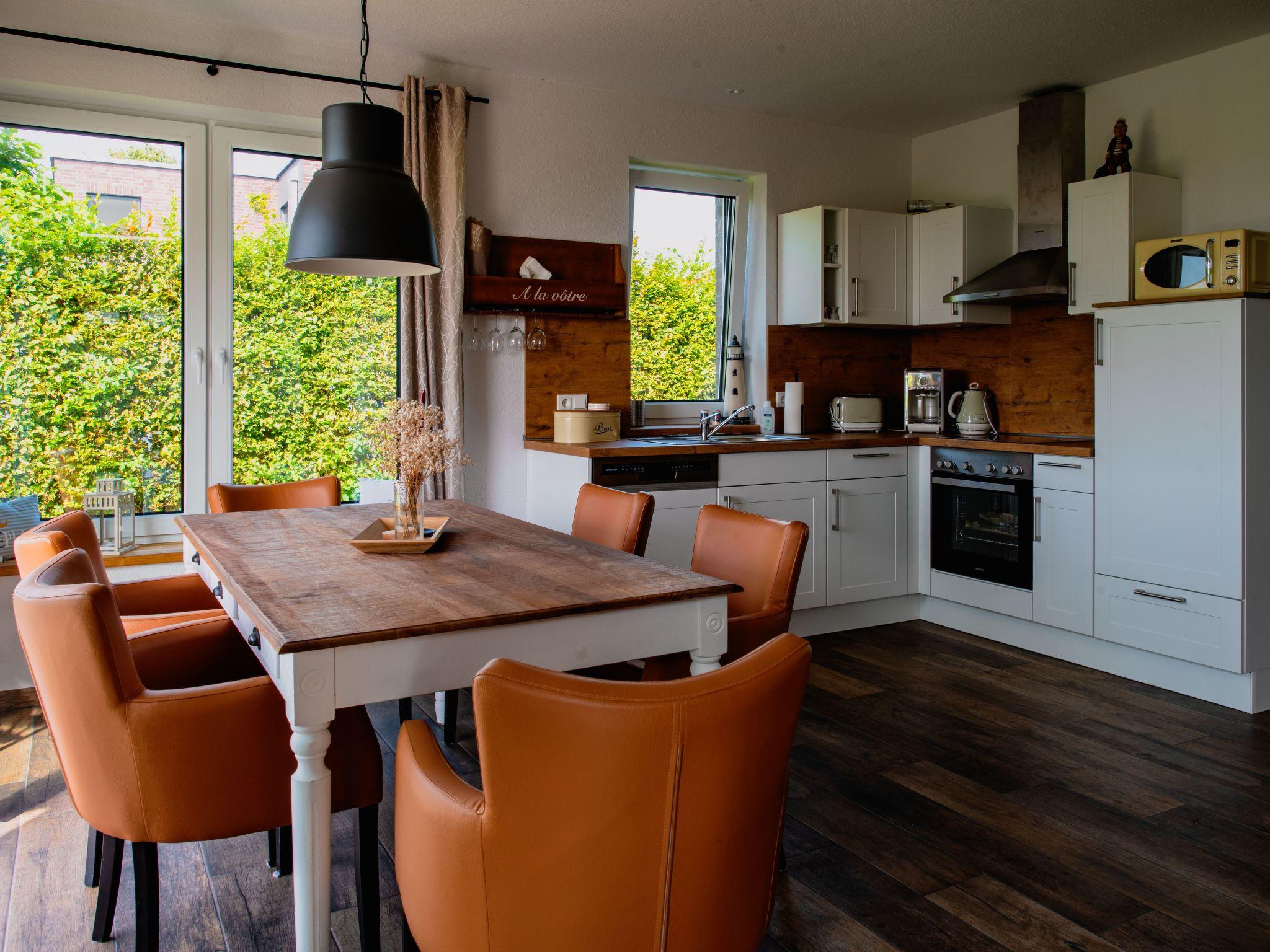 The kitchen has everything you need for a carefree stay as well as a dining table for six people.