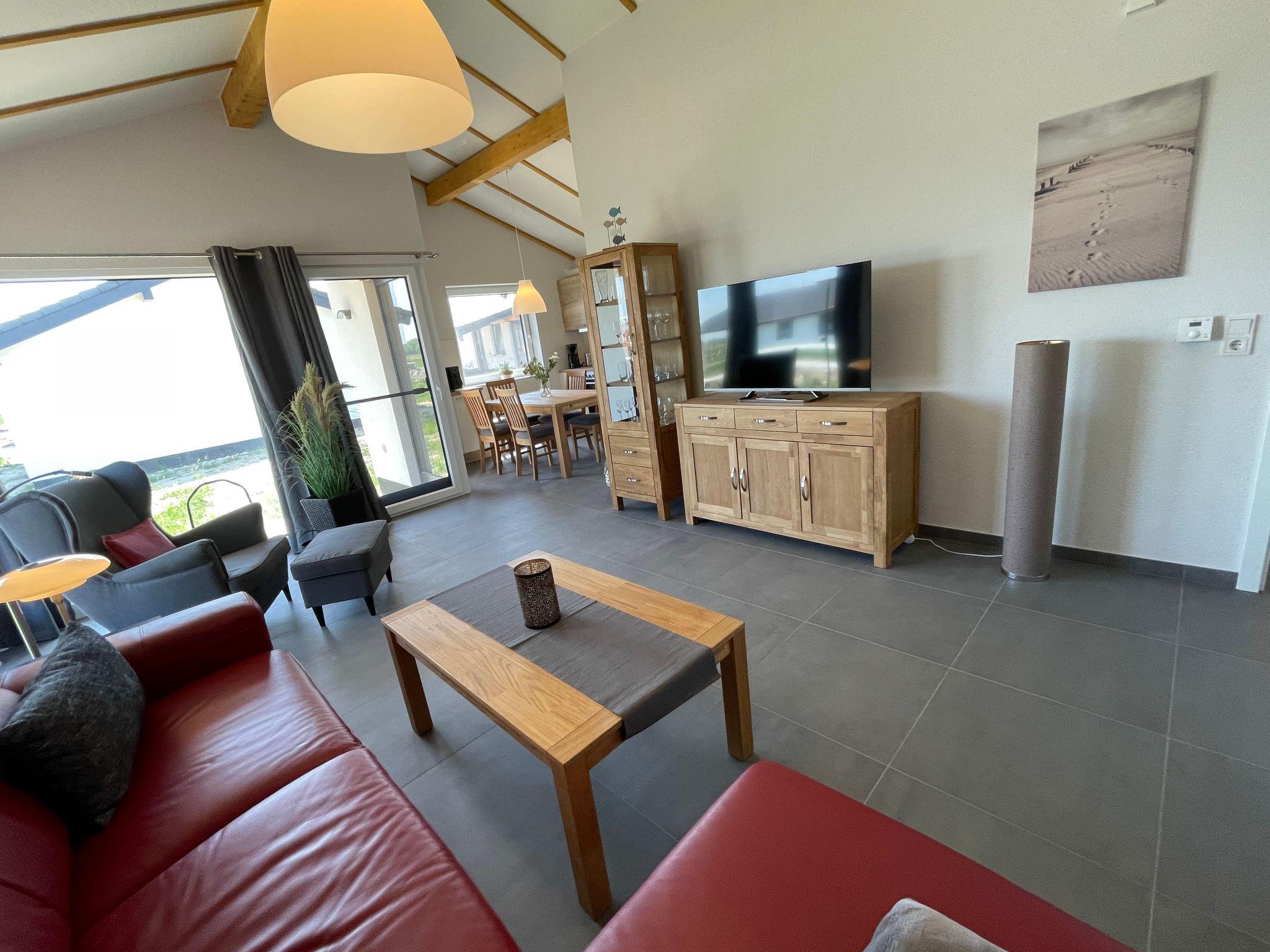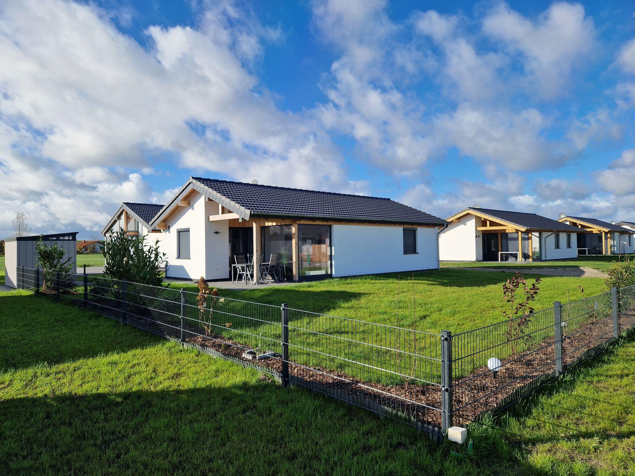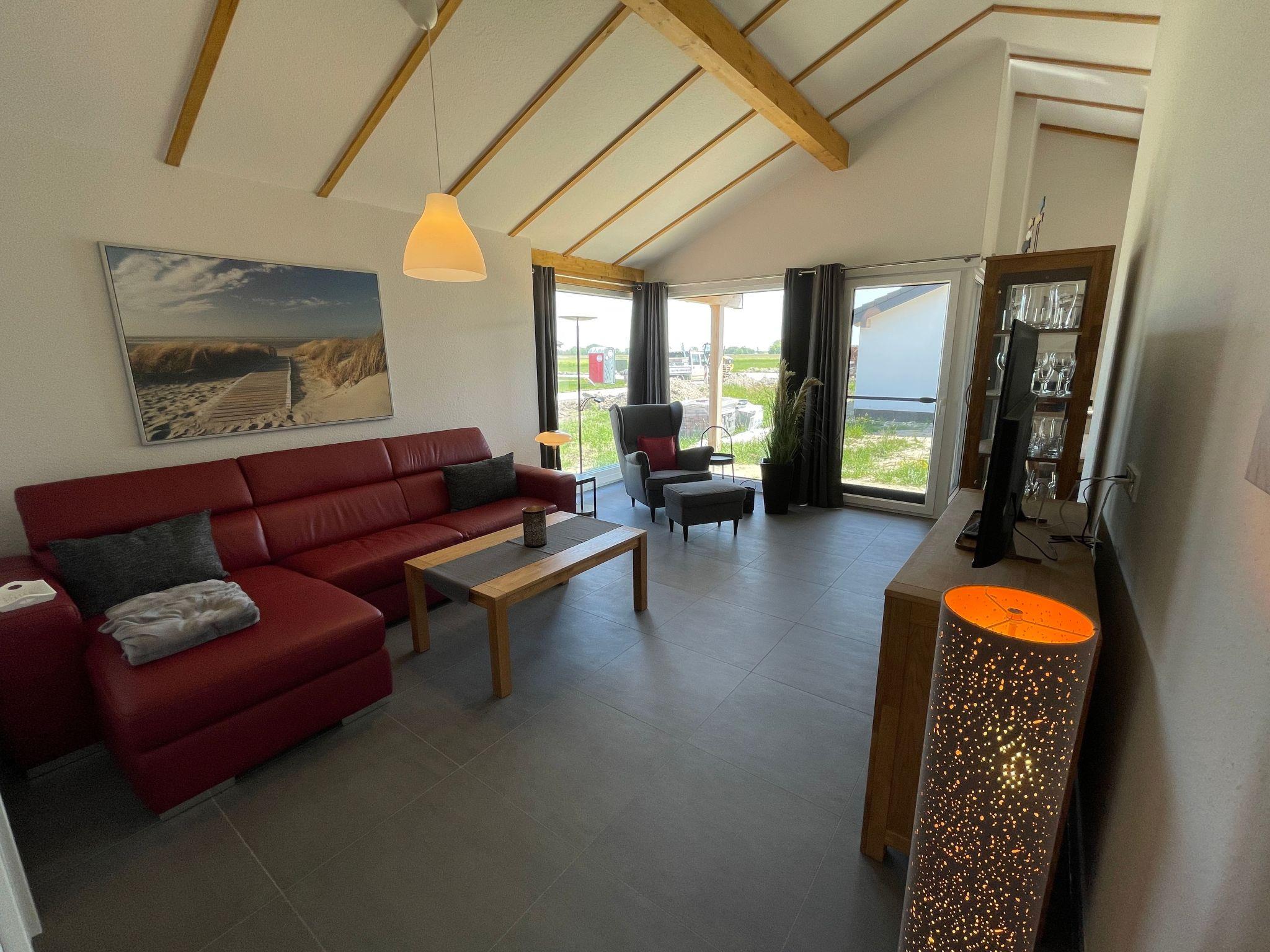 New build house G 22, first occupancy August 2022, 66 sqm living space, no pets allowed, fenced, mechanical shutters in the 2 bedrooms + kitchen, fly screens everywhere, all rooms tiled, bathroom: with walk-in shower, underfloor heating, rainforest shower, wall-mounted towel radiator, TV in the living room and in the 2 bedroomsFor 4 people with 2 bedrooms and 1 bathroomOwn 429 square metre property- 2 bedrooms (1x double bed 1.80m x 2.00m, 1x 2 single beds 0.90 x 2,00m)- 1 spacious living room with large floor-to-ceiling windows- fully equipped fitted kitchen with dishwasher and microwave- 1 storage room / 1 hallway- covered sun terrace with garden furniture, beach chair and garden barbecue, garden house- outside tap- carport + 1 car parkferiendorf-nordsee.The house is located in the holiday village Eckwarderhörne in the immediate vicinity of the dike, the ferry dock (including passenger / bicycle ferry to Wilhelmshaven) and a 50,000 square metre inland lake belonging to the holiday village (with an approx. 500 square metre sandy lawn directly on the inland lake, swimming pontoon and jetties).The Eckwarderhörne lido with its beach hall, lighthouse, ferry landing stage and starting point for guided mudflat walks is about 800 m away. In the idyllic holiday village, away from the traffic, there is the "To'n Spieker" dyke inn, bicycle hire, children's playground and a 1,000 m² play area with beach volleyball court, badminton court, basketball hoop, outdoor table tennis table, sandpit and swings.