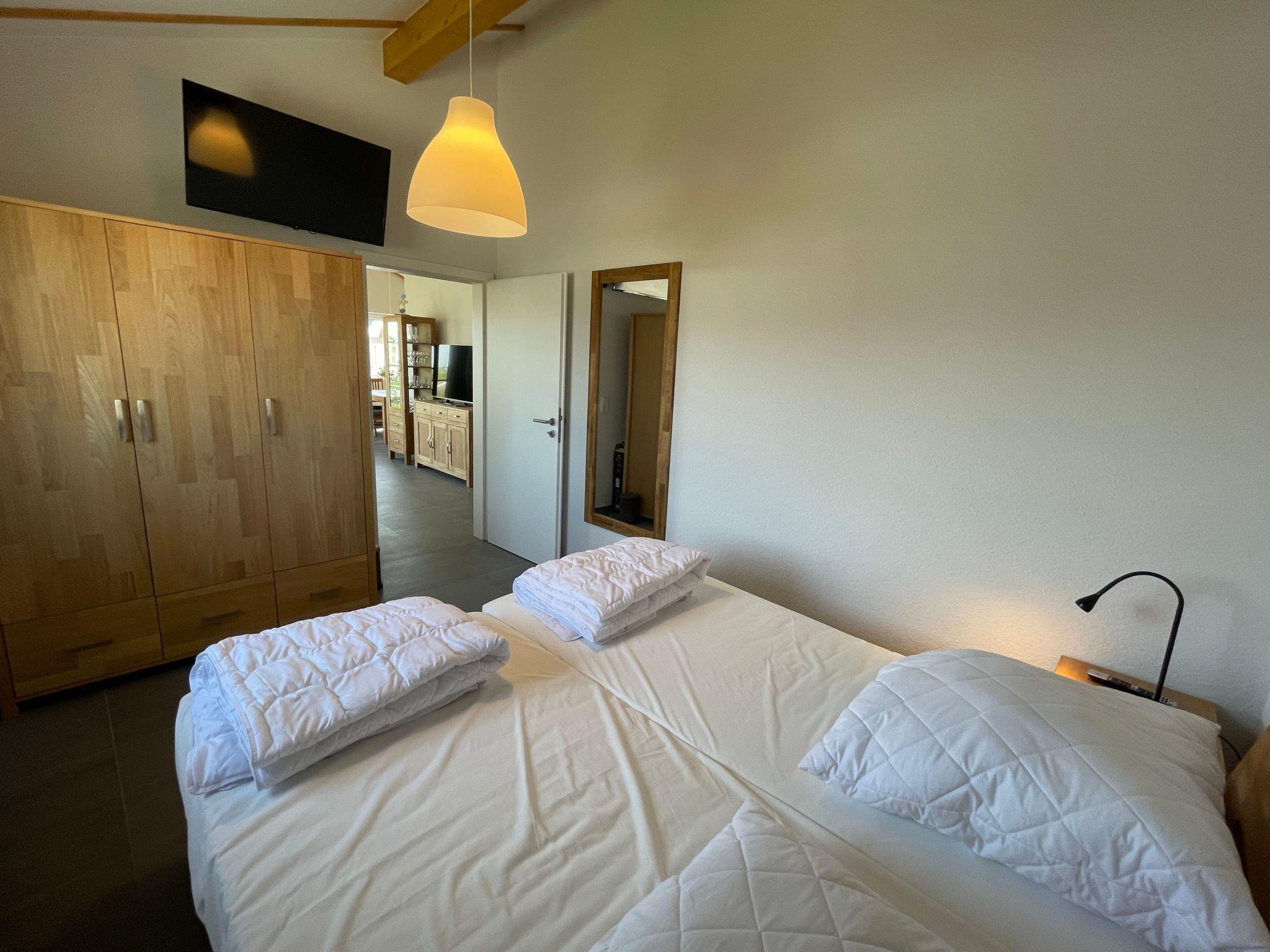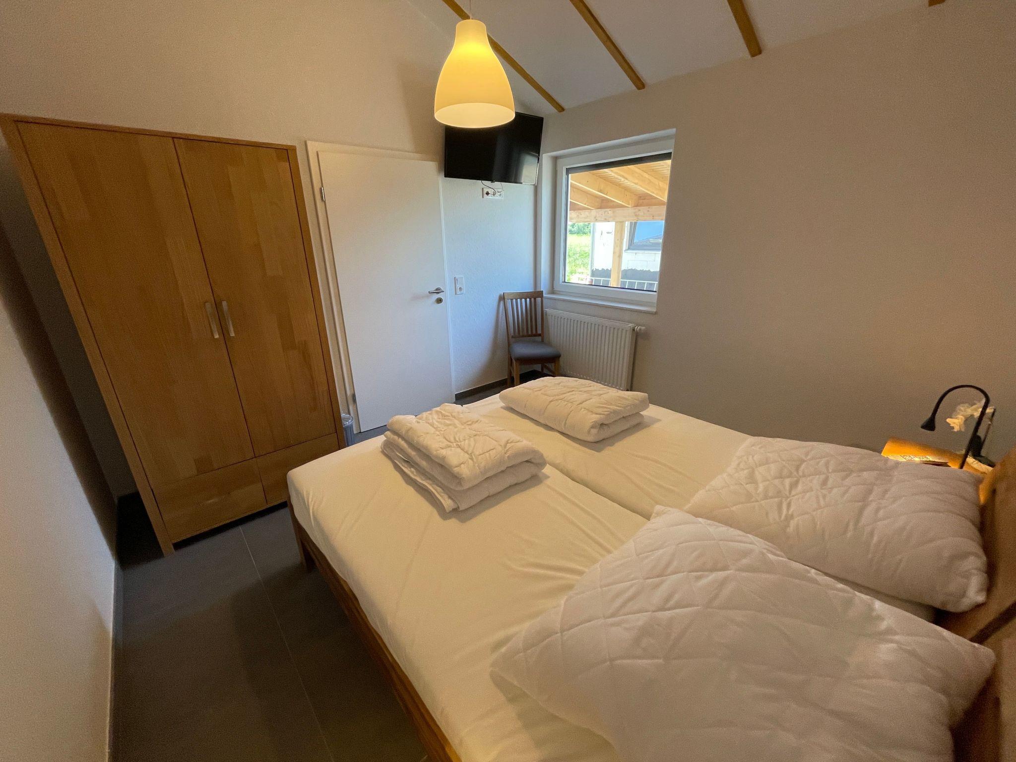 Brief description 1Number of kitchens : 1Bedroom 1Other bedroom furnishings : electric shutters, fly screens, TV, wardrobe, bedside tables, reading lampsBedroom 2Other bedroom furnishings : electric shutters, fly screens, TV, 2x single beds 0.90 x 2.00 m)Bathroom 1Other bathroom furnishings : Walk-in shower, underfloor heatingSurroundingsBike rentalSports facilities in the area : Fishing, climbing, cycling tours, indoor riding arenaGarden and outdoor facilitiesGarden equipment : Garden furniture available, beach chair, barbecue fireplace New building, first occupancy August 2022, 66 sqm living space, no pets allowed, fly screens everywhere, directly in the holiday village Eckwarderhörne: G 22