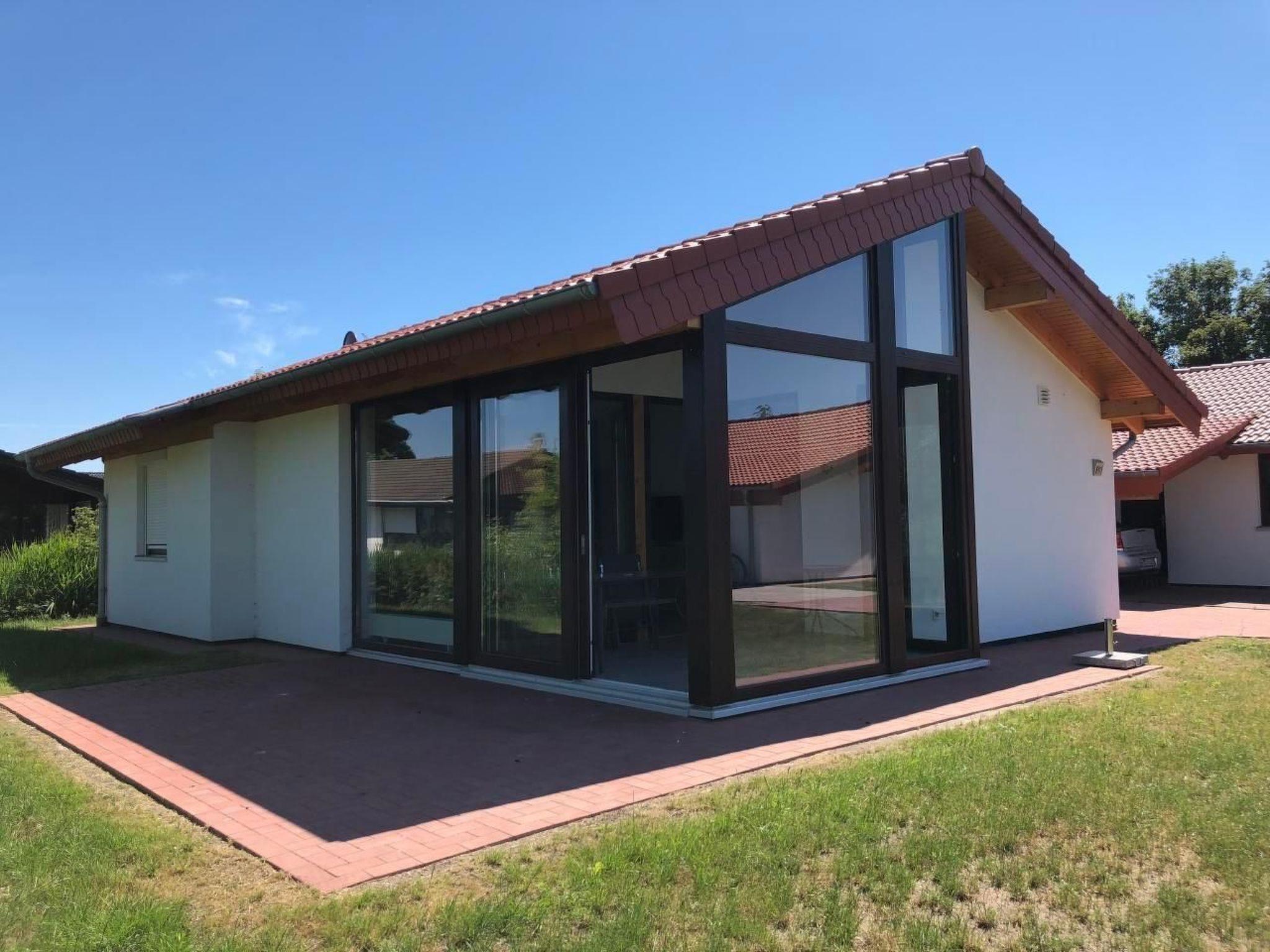 Detached, ground floor bungalow with conservatory for 5 persons, own approx. 350 sqm property, all windows (also in the conservatory) have fly screens-2 bedrooms: 1 bedroom with double bed 1.80 x 2.00 m, 1 bedroom with 2 x single bed 0.90 x 2.00 m + 1x bunk bed 0.90 x 2.00 m (accessible via ladder)-large living room with 6.5 m window front to the floor-covered sun terrace with garden furniture and parasol-carport and further parking space at the house-fully equipped fitted kitchen. Storeroom. Free WLAN (reception) at the holiday village administrationThe house is located in the holiday village Eckwarderhörne in the immediate vicinity of the dike, the ferry dock (including passenger / bicycle ferry to Wilhelmshaven) and a 50,000 square metre inland lake belonging to the holiday village (with an approx. 500 square metre sandy lawn directly on the inland lake, swimming pontoon and jetties).The Eckwarderhörne lido with its beach hall, lighthouse, ferry landing stage and starting point for guided mudflat walks is about 800 m away. The holiday village is idyllically situated away from the traffic and has the "To'n Spieker" dyke inn, bicycle hire, children's playground and a 1,000 m² play area with beach volleyball court, badminton court, basketball hoop, outdoor table tennis table, sandpit and swings.