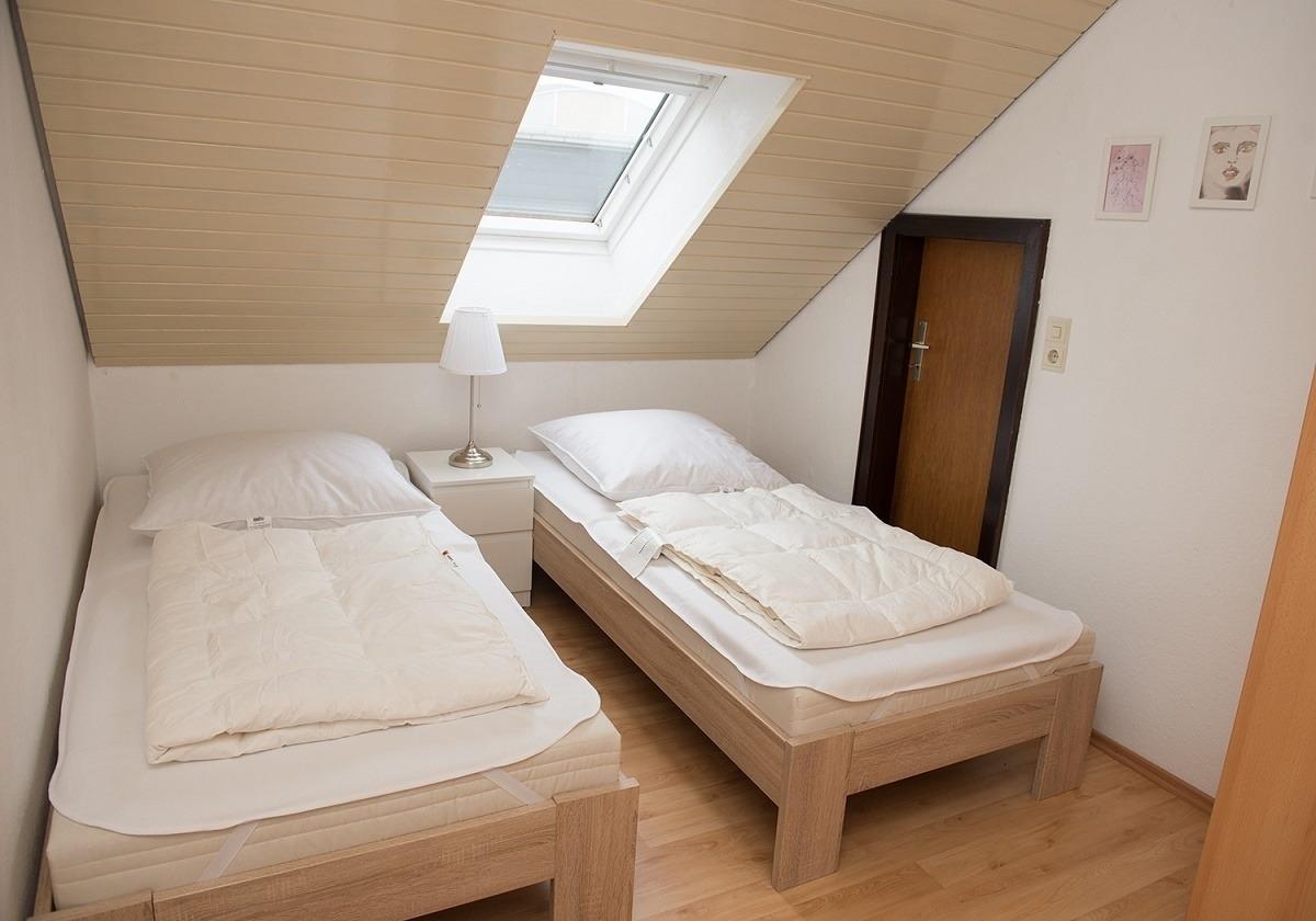 Die Ferienwohnung liegt im 2.Obergeschoss der Appartementanlage und hat ein Wohnzimmer mit Sitzecke, Kabel-TV, Radio und Essecke, ein Schlafzimmer mit zwei Einzelbetten, ein Schlafzimmer mit einem Doppelbett und einem Kinderbett, eine separate Küche (4-Plattenherd mit Backofen, Mikrowelle, Geschirrspüler, Kaffeemaschine, Wasserkocher, Toaster), ein Bad mit WC und Badewanne sowie einen Balkon mit Gartenmöbeln. Über W-Lan-Freifunk können Sie ins Internet. Das Mitbringen von Haustieren ist gegen Gebühr gestattet. Ein Hochstuhl ist vorhanden.