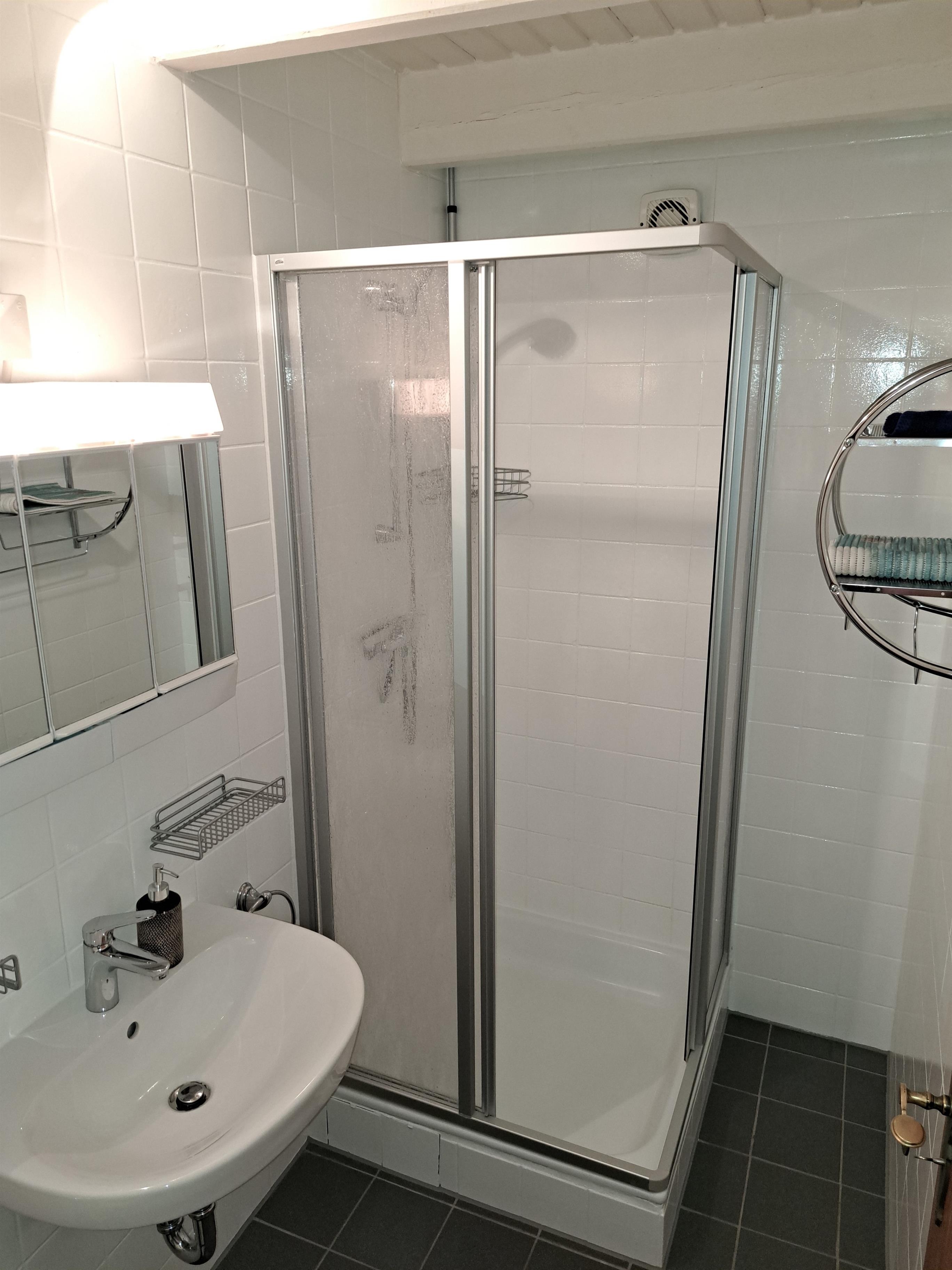 Im unterem Bereich befindet sich das Wohnzimmer mit einer offenen Küche. Die Küche ist komplett zum kochen und backen ausgestattet. Auch ein Geschirrspüler, Kaffeemaschine, Wasserkocher, Mikrowelle, Kühlschrank und Esstisch sind vorhanden. Der Wohnbereich ist mit einem Sofa, Couchtisch, Fernseher (Smart TV mit W-Lan Verbindung. Sie haben die Möglichkeit mit ihrem eigenen Account oder mitgebrachten TV-Stick Fernsehprogramme zu empfangen) und einem DVD Player ausgestattet. Des weiteren verfügt die Wohnung über einen überdachten Balkon. In der oberen Etage befinden sich 2 Schlafräume. Ein Zimmer mit Doppelbett und Kleiderschrank. Bei Bedarf kann dort auch ein Kinderbett aufgestellt werden. Der andere Schlafraum ist mit zwei getrennten Betten ausgestattet. Zu der Wohnung gehört ein PKW Stellplatz. Von Mitte Mai bis November steht den Feriengästen ein Schwimmbad in der Anlage zur Verfügung. Ein separates Sauna Holzhäuschen kann gegen Entgelt genutzt werden. In der Außenanlage sind ein Grillplatz mit verschiedenen Sitzecken, Spielplatz, Fahrradstellplätze und eine E- Bike Ladestation.