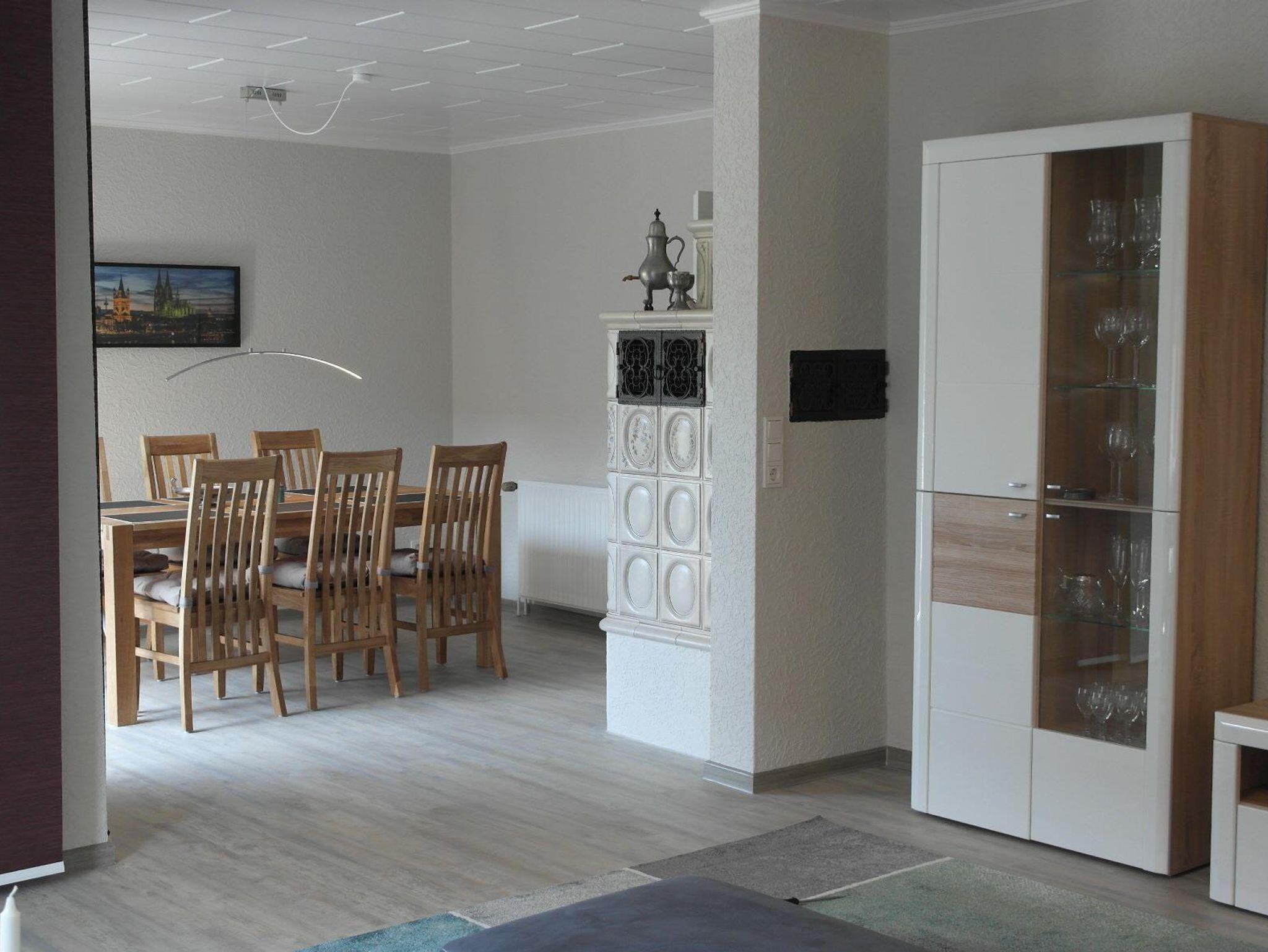 Die sehr gut ausgestattete 4****Ferienwohnung Hennes liegt im Erdgeschoss und hat ein gemütliches Wohnzimmer mit Ledercouch zum Wohlfühlen für heimische Fernsehabende auf dem 55LCD TV mit BluRay Player und HD+. An allen Smart-TVs im Haus sind für Sie Netflix Accounts hinterlegt. Im daneben gelegenen Esszimmer befindet sich ein großer Kachofen für die kalte und gemüliche Jahreszeit. Eine sehr gut ausgestatte separate Küche mit Küchenzeile (Backofen, Ceranfeld, Geschirrspüler, Kühlschrank, Kaffeemaschine, Wasserkocher, Toaster, Eierkocher und einer zusätzlichen Kaffeepadmaschine) und Esstisch mit Sitzgelegenheiten schließt sich an. Ein Doppelschlafzimmer mit Boxspringbetten ( 180x200cm), Kleiderschrank und TV , ein Kinderzimmer mit Etagenbett 2x 90x 200cm( Kindergerecht), Kleiderschrank und TV. Ein modernes Bad mit Dusche, Badewanne, WC, Fön und Waschtisch und ein zusätzliches Gäste WC im Eingangsbereich stehen Ihnen zur Verfügung. Im Garten finden Sie eine Terrasse mit Gartenmöbeln und einer Liegewiese. Die Garage kann für mitgebrachte Fahrräder genutzt werden, dort ist ein seperater Raum mit Waschmaschine und Trockner eingerichtet worden. Ein Stellplatz für Ihr Fahrzeug ist vorhanden. Im Garten steht Ihnen ein Gasgrill zur allgemeinen Nutzung zur Verfügung.