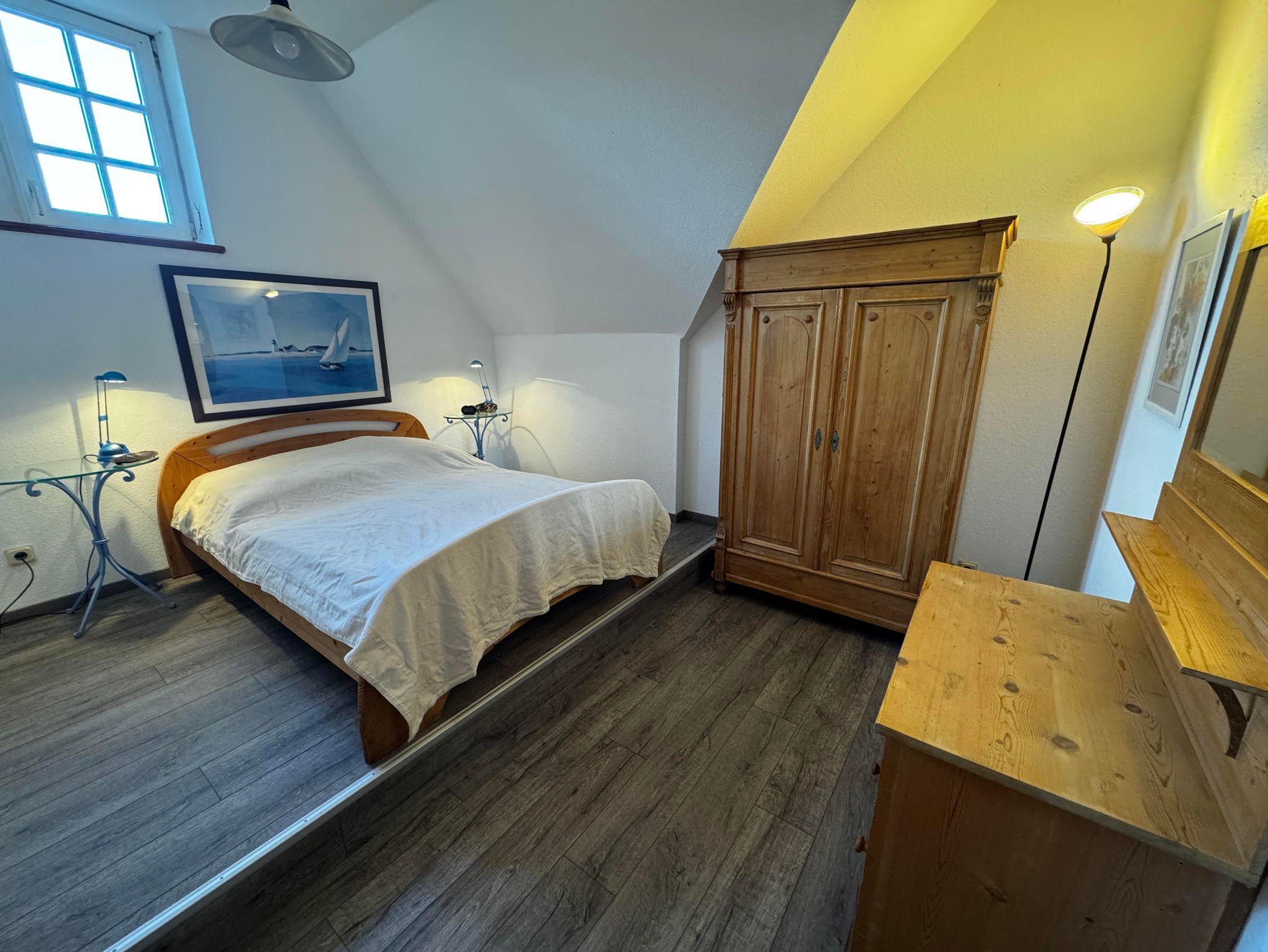 Die Wohnung verfügt über zwei gemütliche Schlafzimmer: Das Elternschlafzimmer ist mit einem komfortablen Doppelbett (1,40 m Breite) und Kleiderschrank ausgestattet, während das Kinderzimmer zwei Einzelbetten sowie Spielzeug zum Entdecken und Spielen bereithält. Bettwäsche ist selbstverständlich inklusive.