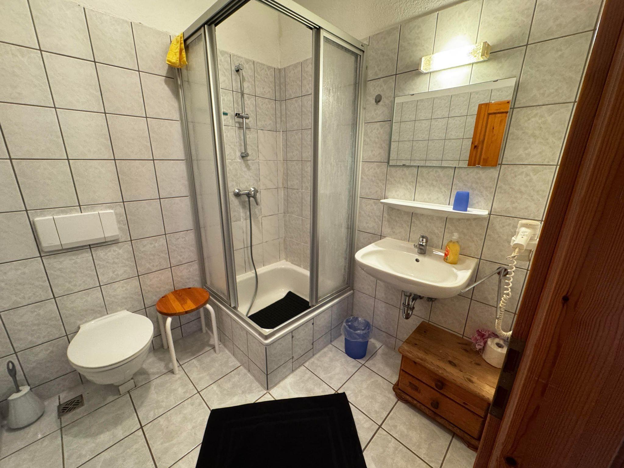 Das moderne Badezimmer verfügt über Dusche, WC, Haartrockner und Handtücher. Draußen können Sie den Garten mit Sitzmöglichkeiten und Grill nutzen, während Fahrräder sicher in der Scheune abgestellt werden können.