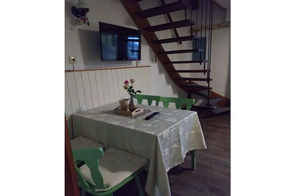 Vores ferielejlighed (100 meter fra Nordsøen) har en separat indgang med en overdækket terrasse. Stueetagen har en stue-spisestue og et fuldt udstyret køkken. Et badeværelse med regnbruser, tv og stereoanlæg. Ovenpå er der et soveværelse med en dobbeltseng og et andet værelse med to senge (også til voksne). En barneseng og højstol er gratis til rådighed. Et stort, overdækket grønt område til solbadning eller leg for børnene (legeredskaber til rådighed) støder op til terrassen. En stor vinterhave er til rådighed til leg eller socialt samvær i dårligt vejr. Der er også en grillplads med havemøbler og grilludstyr. En vaskemaskine og tørretumbler er også tilgængelige. Wi-Fi internetadgang er tilgængelig efter anmodning.