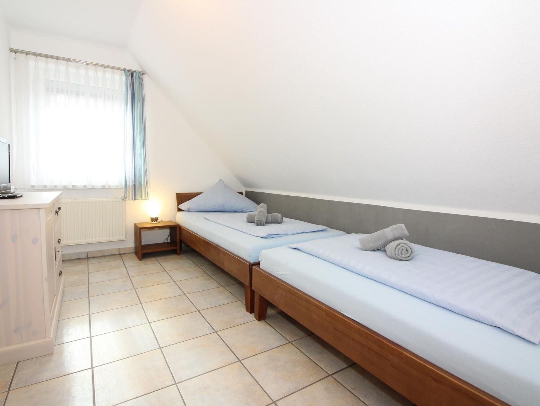 mit zwei Komfort-Einzelbetten, Kleiderschrank (im Schrank ist zusätzlich ein Kinderreisebett vorhanden) und