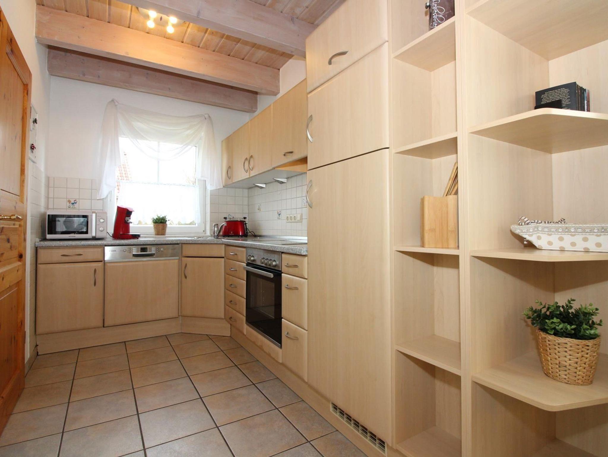 Die offene Küche ist hervorragend ausgestattet mit Backofen, Spülmaschine, großem Kühlschrank mit