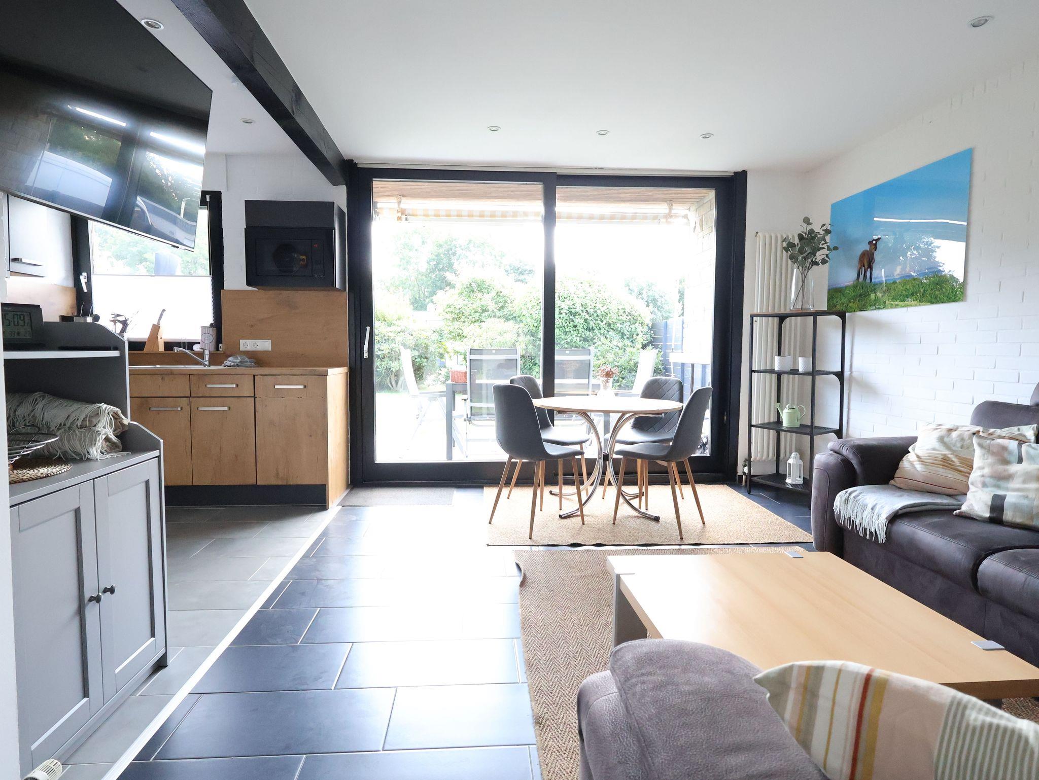 In der voll ausgestatteten und neuen Küche finden Sie neben Geschirrspüler, Ofen, Ceranfeld, Kühlschrank mit Gefrierfach, Mikrowelle, Toaster und Kaffeemaschine weitere gängige Küchengeräte und -utensilien. Im Wohnzimmer können Sie von einem großen Sofa auf den Flachbildfernseher mit Smart-TV und in den Garten schauen. Von hier aus ist auch die ca. 30 m² große Süd-Terrasse begehbar, auf der neben Sitz- und Liegemöbeln ein Sonnenschirm im windgeschützten Außenbereich und eine ausfahrbare Markise zu finden sind. Darüber hinaus erwartet Sie ein schöner, komplett eingezäunter, Garten mit ausreichend Platz zum Spielen, Grillen und Entspannen. Eine Zentralheizung erwärmt das gesamte, durchgefließte Haus. Auch eine Waschmaschine, ein eigener Parklatz am Haus sowie Internet sind vorhanden.