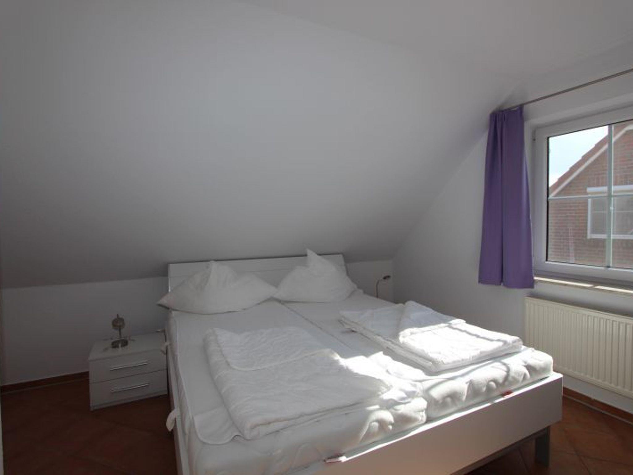 Im OG: ein Schlafzimmer mit Doppelbett und 32 Zoll Flachbildschirm, ein Schlafzimmer mit zwei Einzelbetten, ein schönes Tageslichtbad mit Dusche und WC.