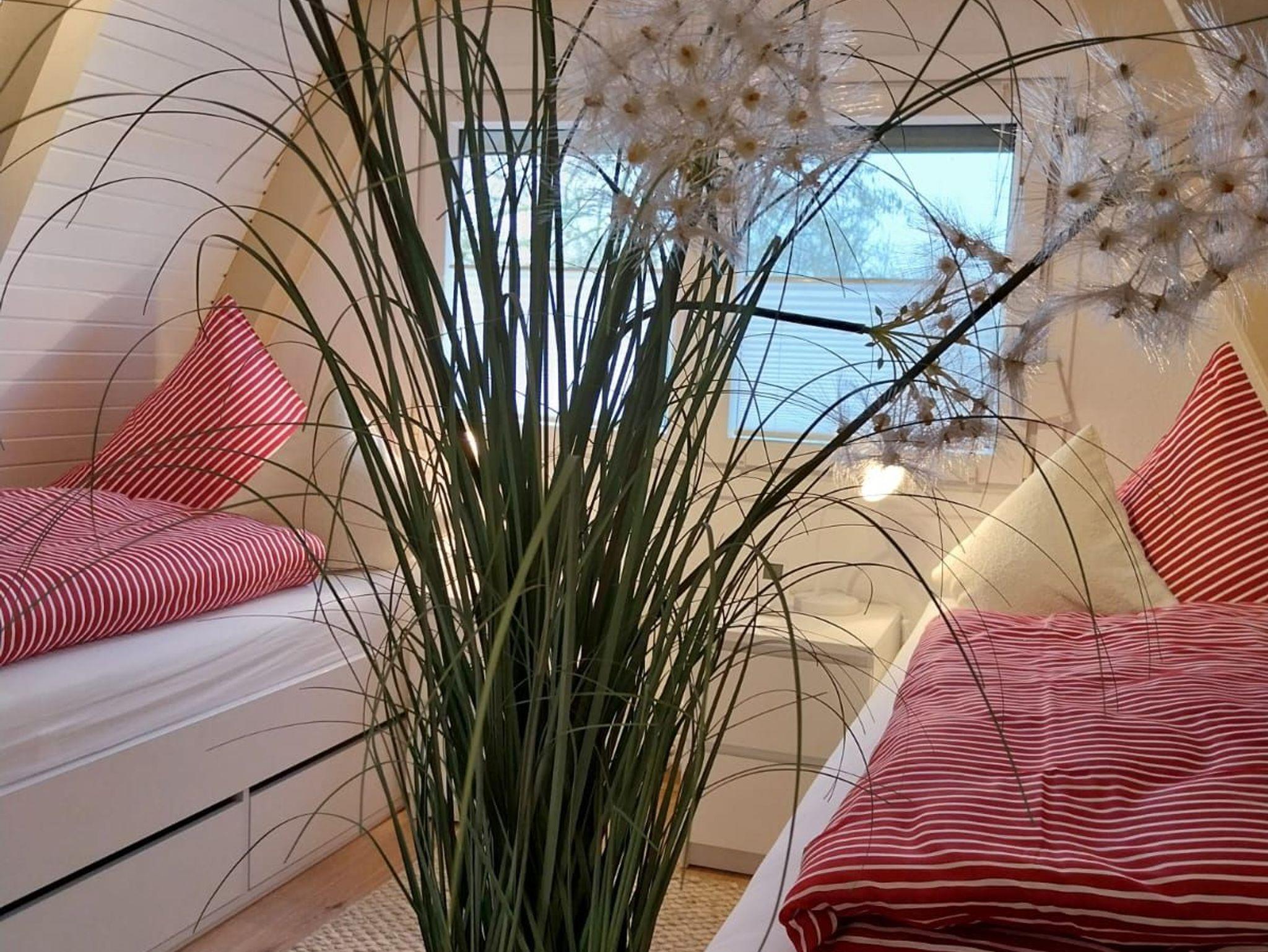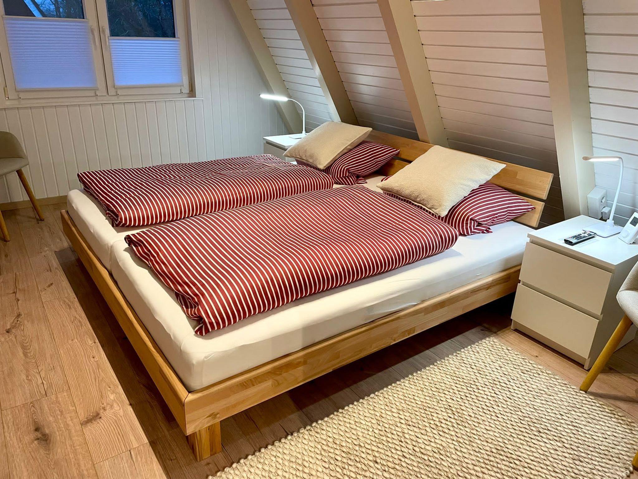 In unserem 2024 frisch renovierten und klimatisierten Schwedenhaus erwarten Sie ein gemütliches Wohnzimmer mit einer integrierten Küche und zwei liebevoll gestaltete Schlafzimmer. Diese befinden sich im Obergeschoss und sind selbstverständlich beide mit Fernsehern ausgestattet. Das eine der beiden Schlafzimmer bietet ein gemütliches Doppelbett, das andere zwei Einzelbetten.