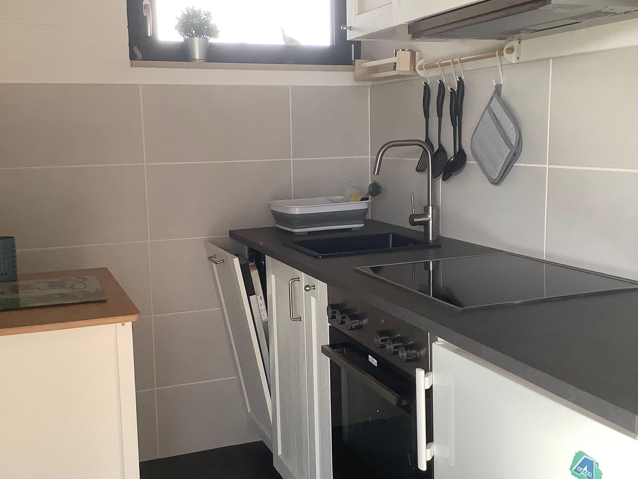 Neben einer gut eingerichteten Küche mit Geschirrspüler, E-Herd, Mikrowelle Kaffeemaschine, Wasserkocher und Toaster, erwartet Sie zusätzlich ein Flachbildfernseher im Wohnbereich, Radio mit MP3-Spieler, zwei Sofas und eine Waschmaschine. Im Wohnzimmer ist 2025 ein Pelletofen angeschlossen worden. Damit kann wie mit einem Kaminofen eine gemütliche Wärme erzeugt werden.