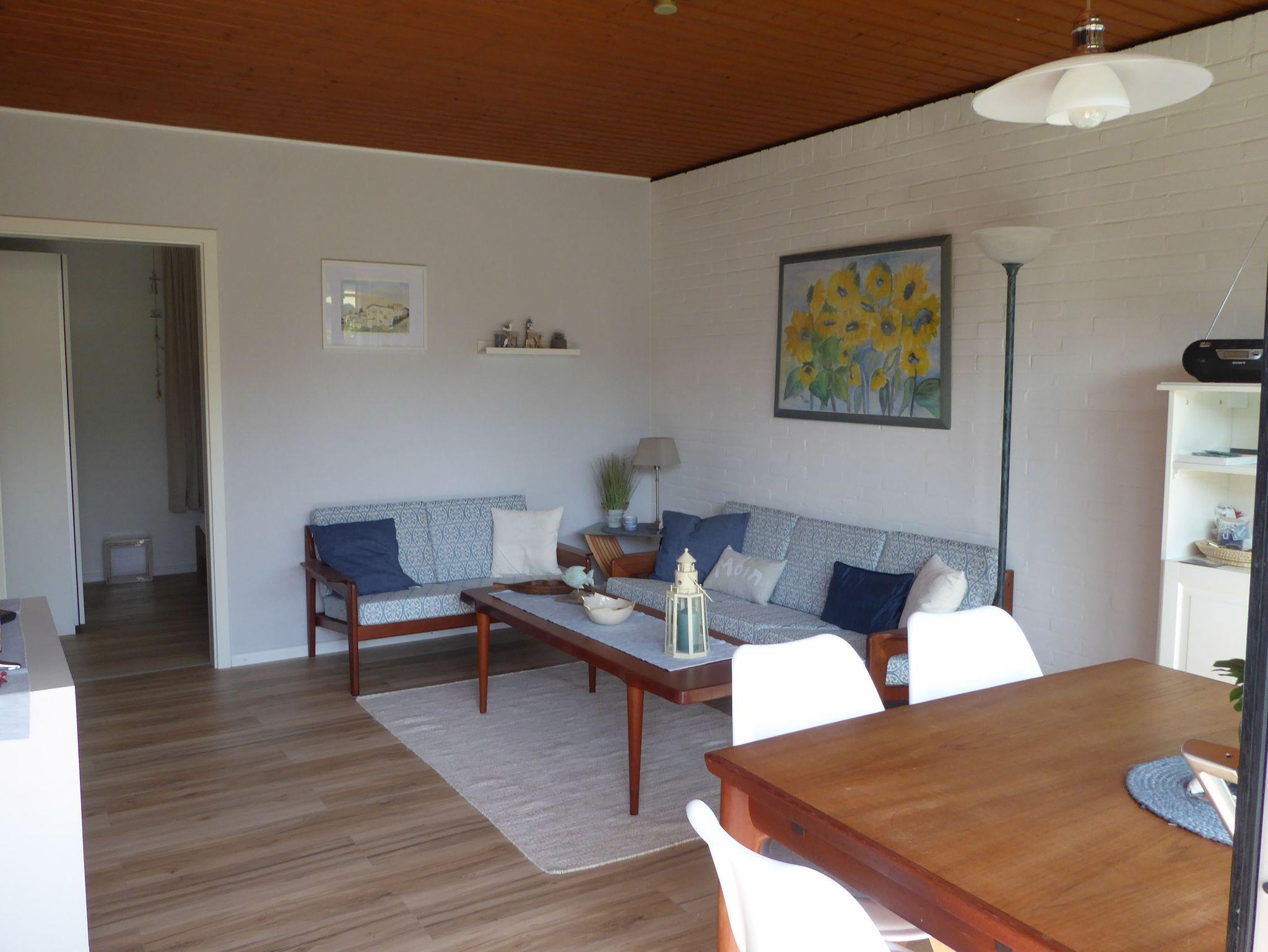 Zum Garten hin gelegen ist eine ca. 20 qm² große Terrasse vom Wohnzimmer aus begehbar. Dort stehen neben Sitz- und Liegemöbeln auch ein Grill im windgeschützten Außenbereich. Außerdem gibt es eine ausfahrbare Markise. Das gesamte Ferienhaus ist neu, modern eingerichtet und wenn doch einmal etwas fehlen sollte, wird Abhilfe geleistet.