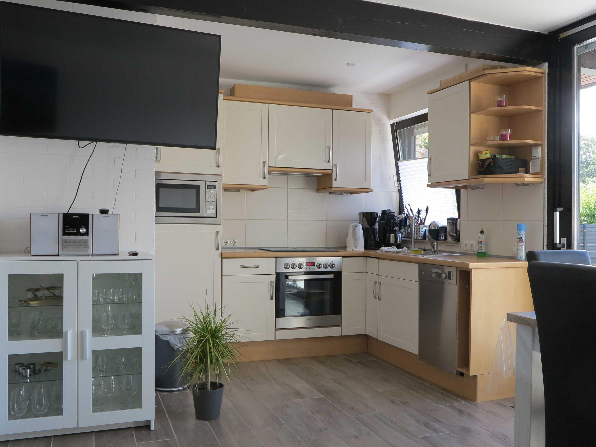 Neben einer voll ausgestatteten Küche erwartet Sie ein großer und offener Wohnbereich mit Internet und stufenlosem Übergang zur Süd-Terrasse sowie ein Stellplatz direkt am Haus. Eine Fußbodenheizung erwärmt das gesamte, durchgefließte Haus. Zum Garten hin gelegen ist eine ca. 30 qm² große Terrasse mit nagelneuen Sitz- und Liegemöbeln, ein Grill sowie ein Sonnenschirm im windgeschützten Außenbereich vorhanden. Außerdem gibt es eine neue, ausfahrbare Markise und einen Strandkorb. Das gesamte Ferienhaus ist neu ausgestattet, modern eingerichtet und wenn doch einmal etwas fehlen sollte, wird Abhilfe geleistet.
