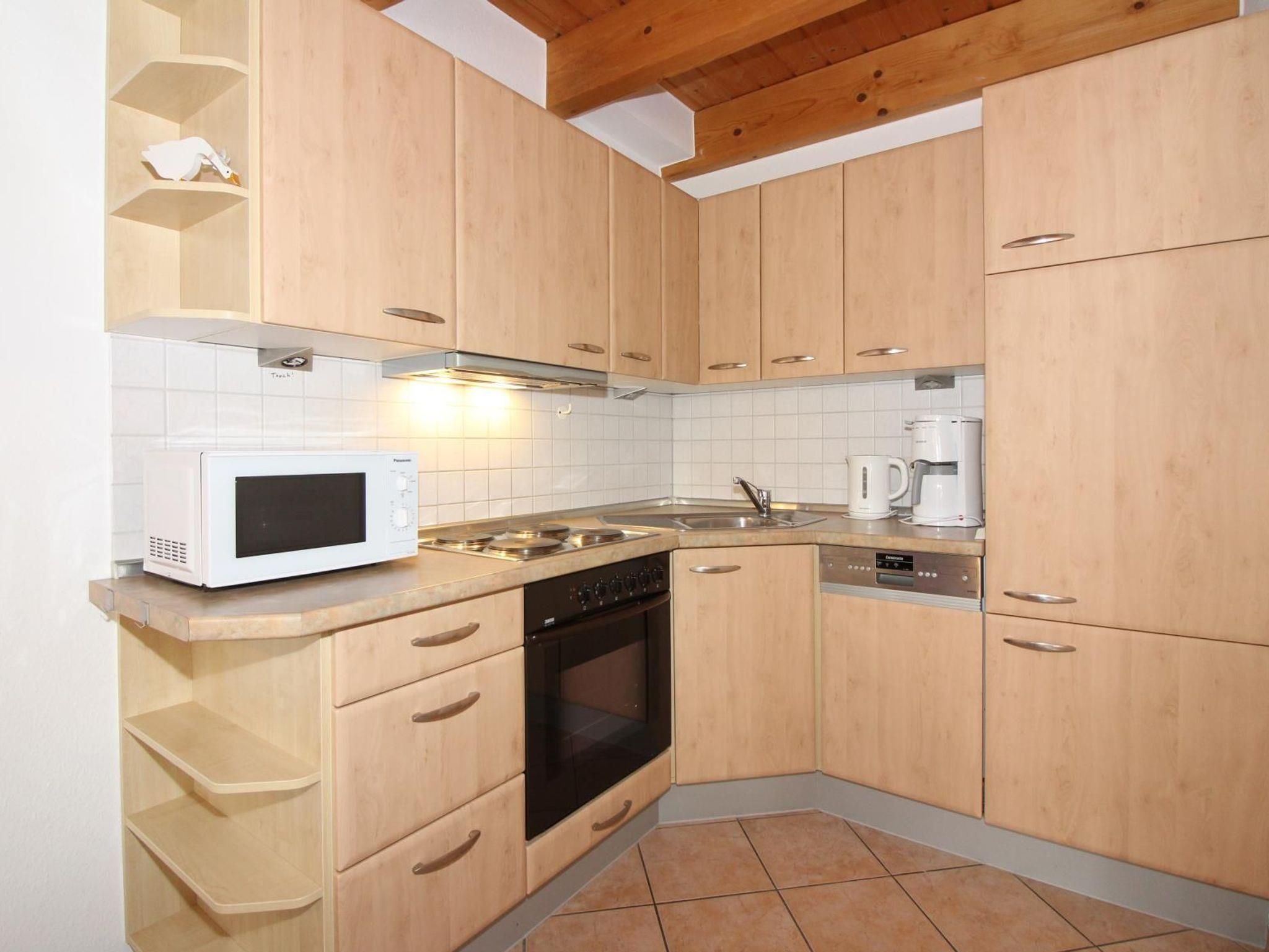 Der Wohnbereich mit der Polstergarnitur, der kompletten Kücheneinrichtung inkl. Kaffeemaschine,