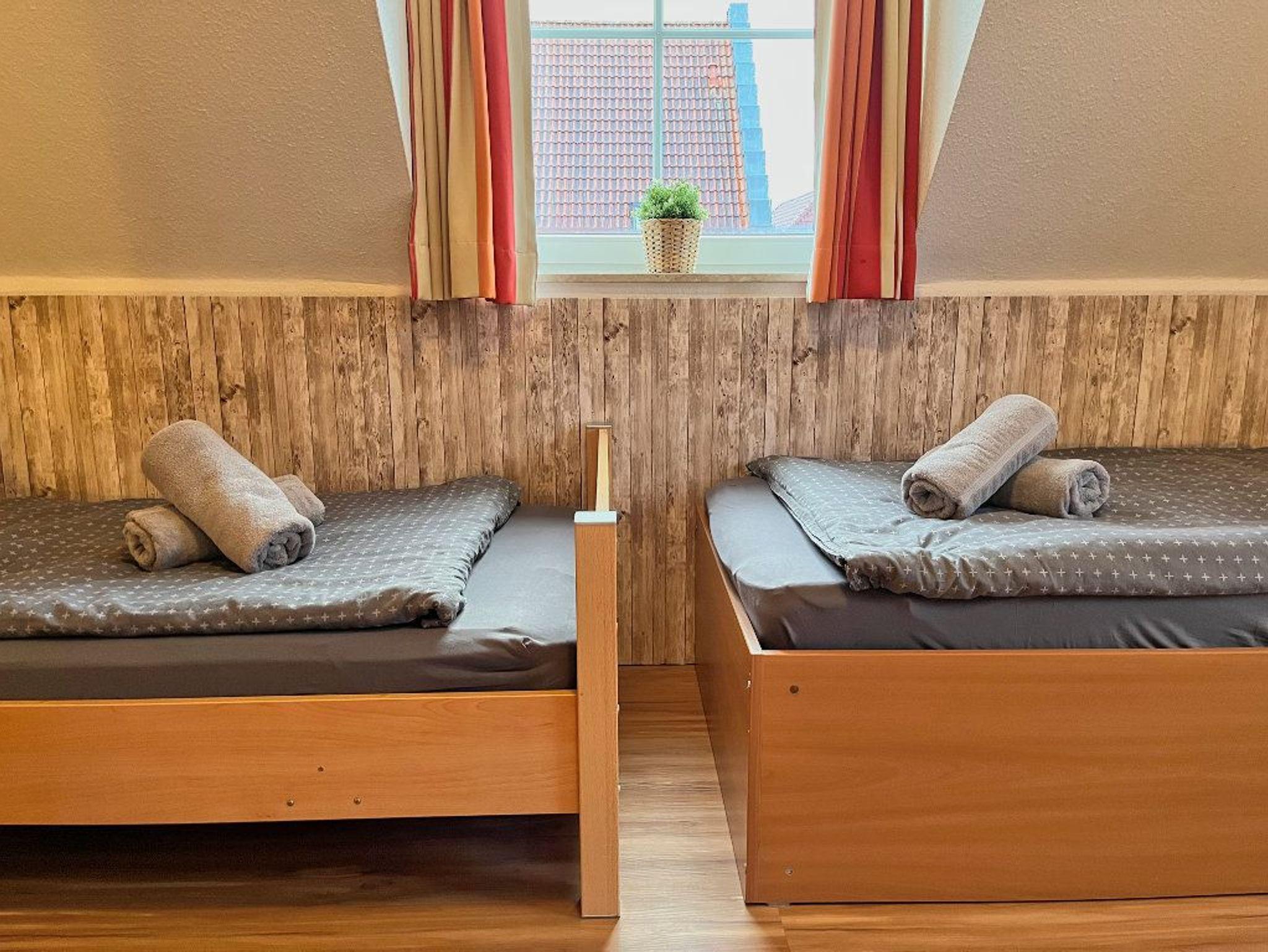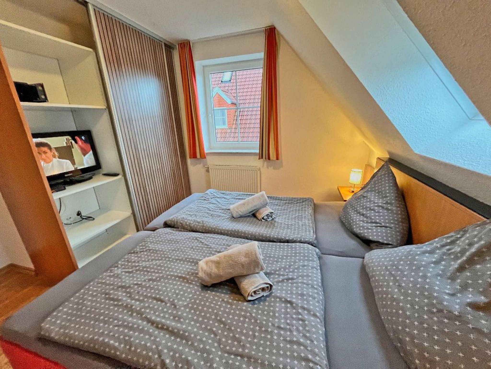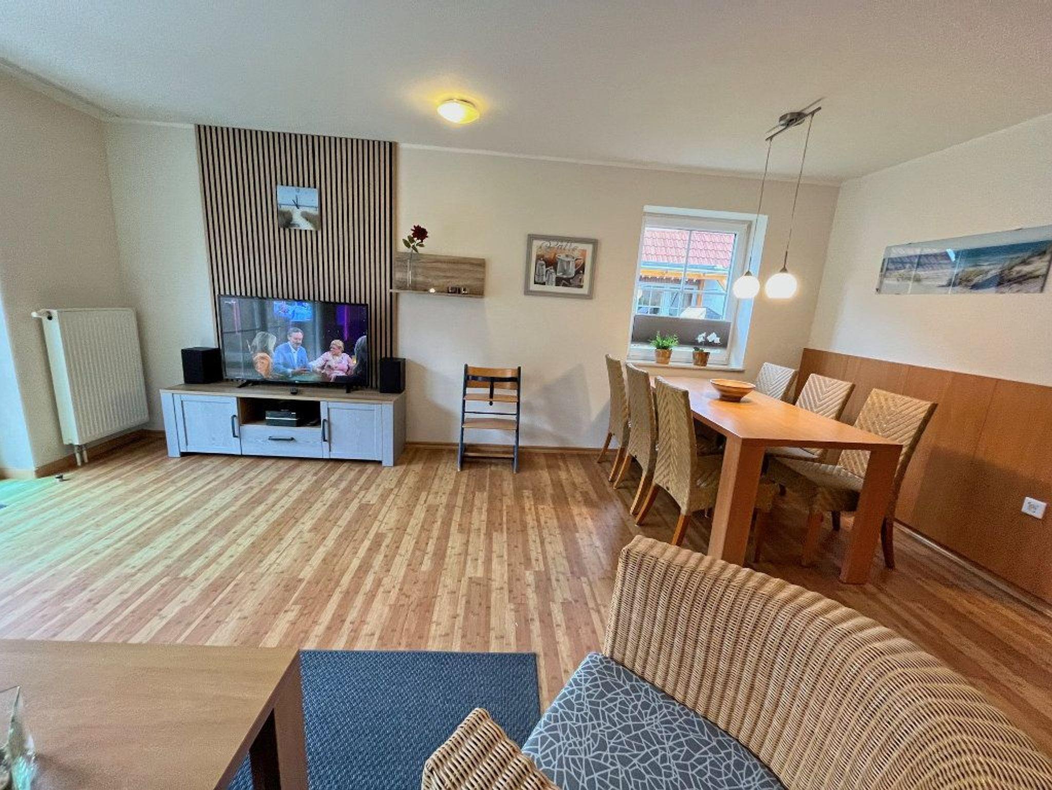 Im Obergeschoss gibt es in beiden Schlafzimmern ebenfalls einen Fernseher. Für die Kinder haben wir eine Auswahl an Büchern und CDs bereitgestellt, die über den CD/MP3-Player abgespielt werden können. Es gibt zusätzlich ein Baby-Reisebett und einen TrippTrapp-Hochstuhl. Die Treppe ist durch ein Treppenschutzgitter gesichert.