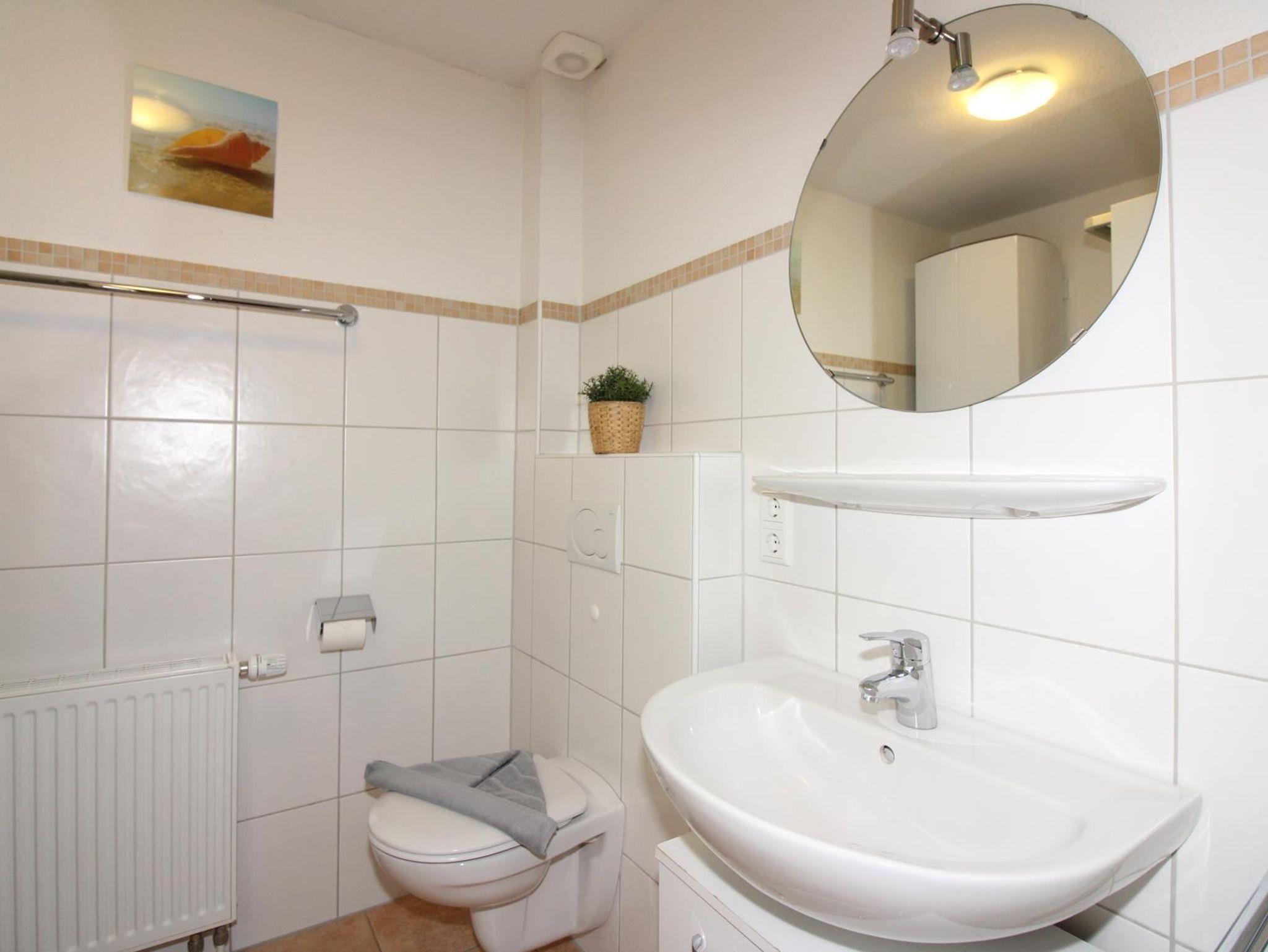Das Ferienhaus verfügt über zwei Bäder mit Dusche und WC, Fön, Kosmetikspiegel, Toilettenaufsatz und Trittschemel für die Kleinen.
