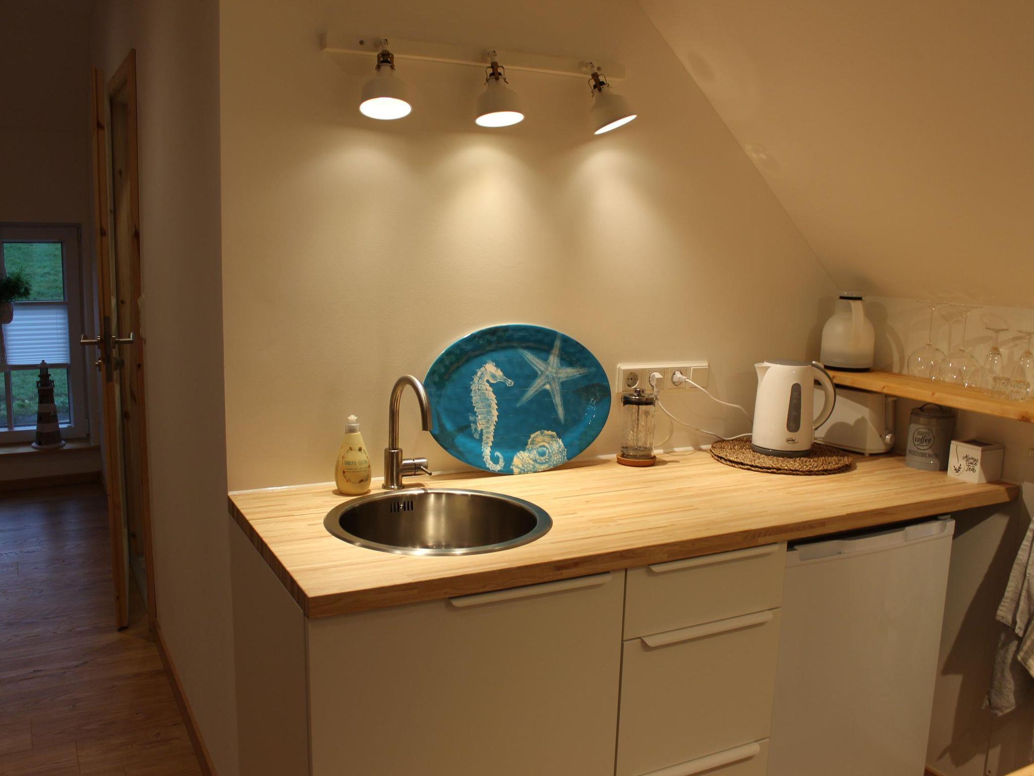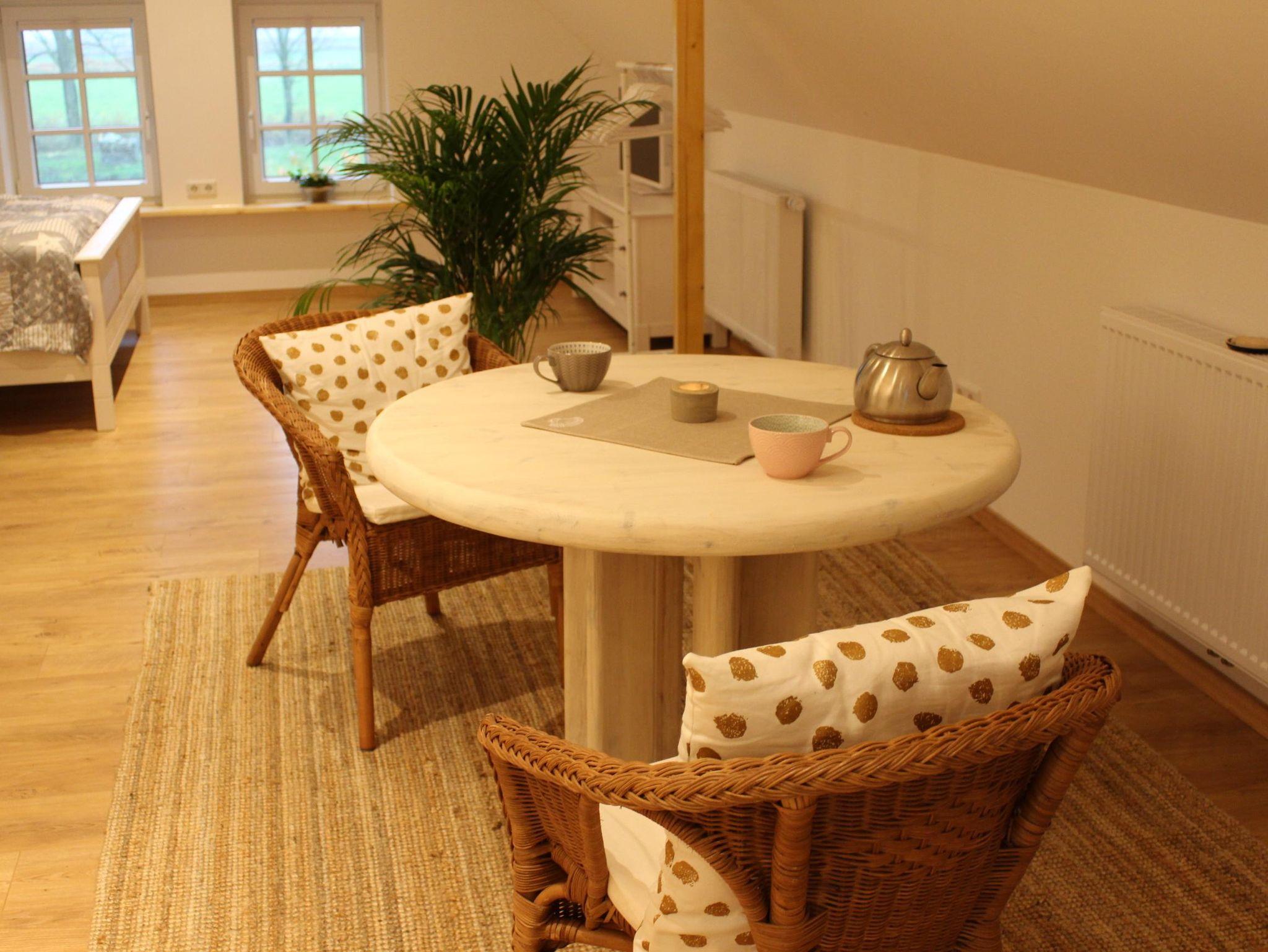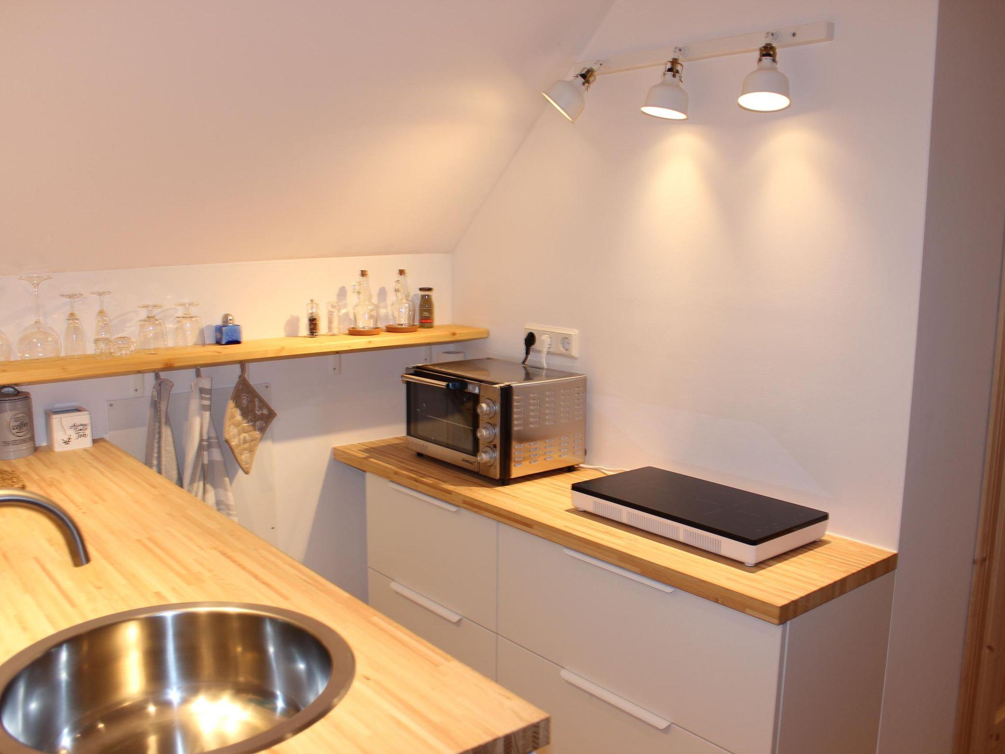 Die renovierte und modern eingerichtete Ferienwohnung DEICHHAUS befindet sich im Dachgeschoss eines Einfamilienhauses und bietet auf einer Wohnfläche von 40 m² Platz für 2 Personen. Die helle 1-Zimmer-Wohnung ist mit einem Doppelbett sowie einer gemütlichen Sitzecke, einem Fernseher und einer Küchenzeile ausgestattet, die über einen Kühlschrank, ein 2-Platten-Kochfeld, einen kleinen Backofen, Wasserkocher und Toaster verfügt. Das Bad ist mit Dusche und WC ausgestattet. Durch die Lage der Wohnung haben Sie einen tollen Blick auf den Deich sowie in die grüne Landschaft. Der große Garten steht Ihnen zur Mitnutzung zur Verfügung.