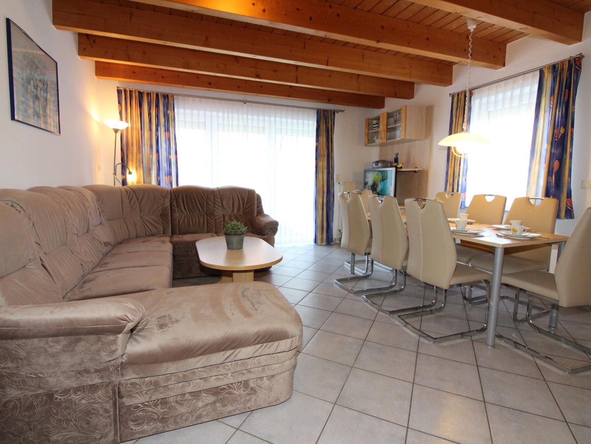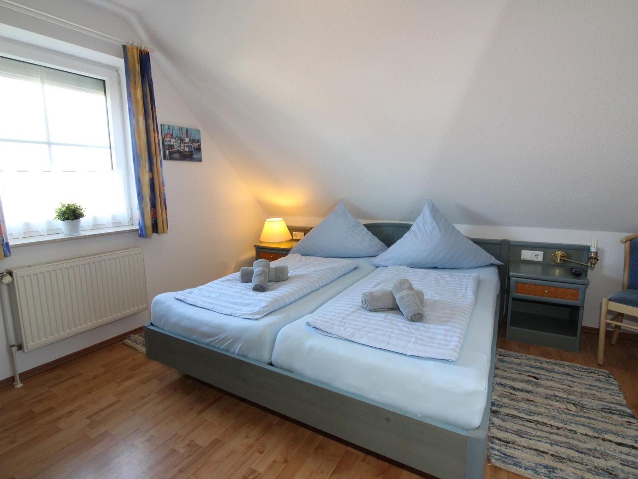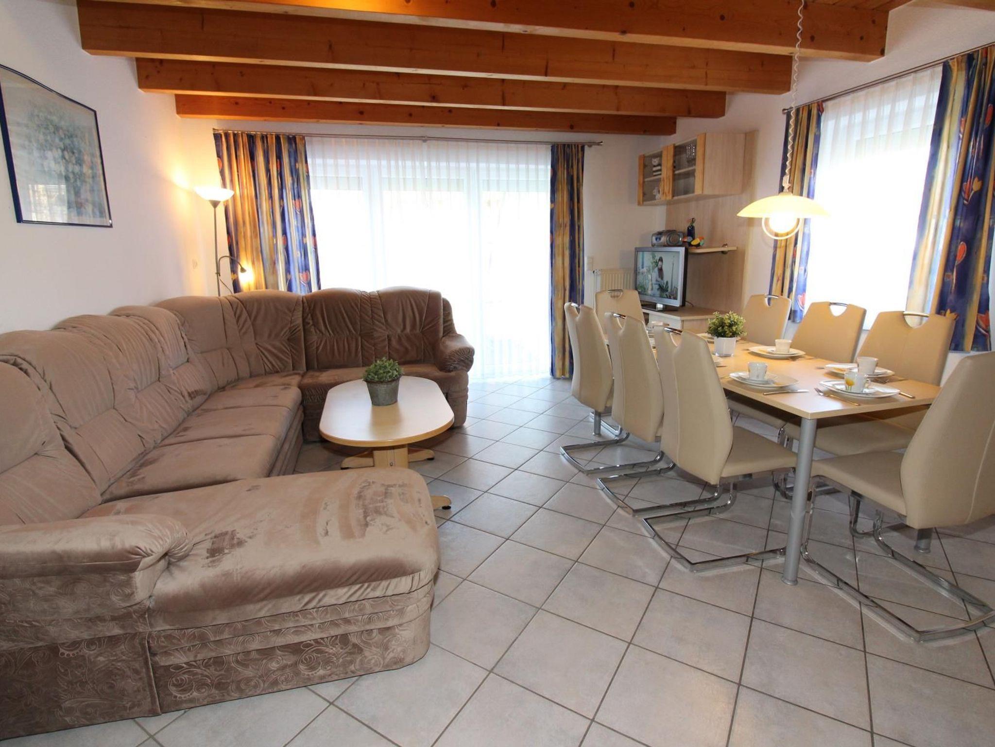 Sie wohnen in einem ruhig gelegenen Eckhaus für bis zu 8 Personen. Das Haus verfügt über eine Wohnfläche von 80 m² und drei Schlafräumen. Ein Schlafraum mit Doppelbett, zwei Schlafräume mit getrennten Betten. Wohn-/Schlafraum mit bequemer Doppelbettcouch, separater Essplatz, Kabel-TV, Stereoanlage, Telefon-ISDN-Anschluss, voll ausgestattete Einbauküche mit Mikrowelle und Geschirrspüler, Dusche/WC im Erd- und Obergeschoss, Terrasse.