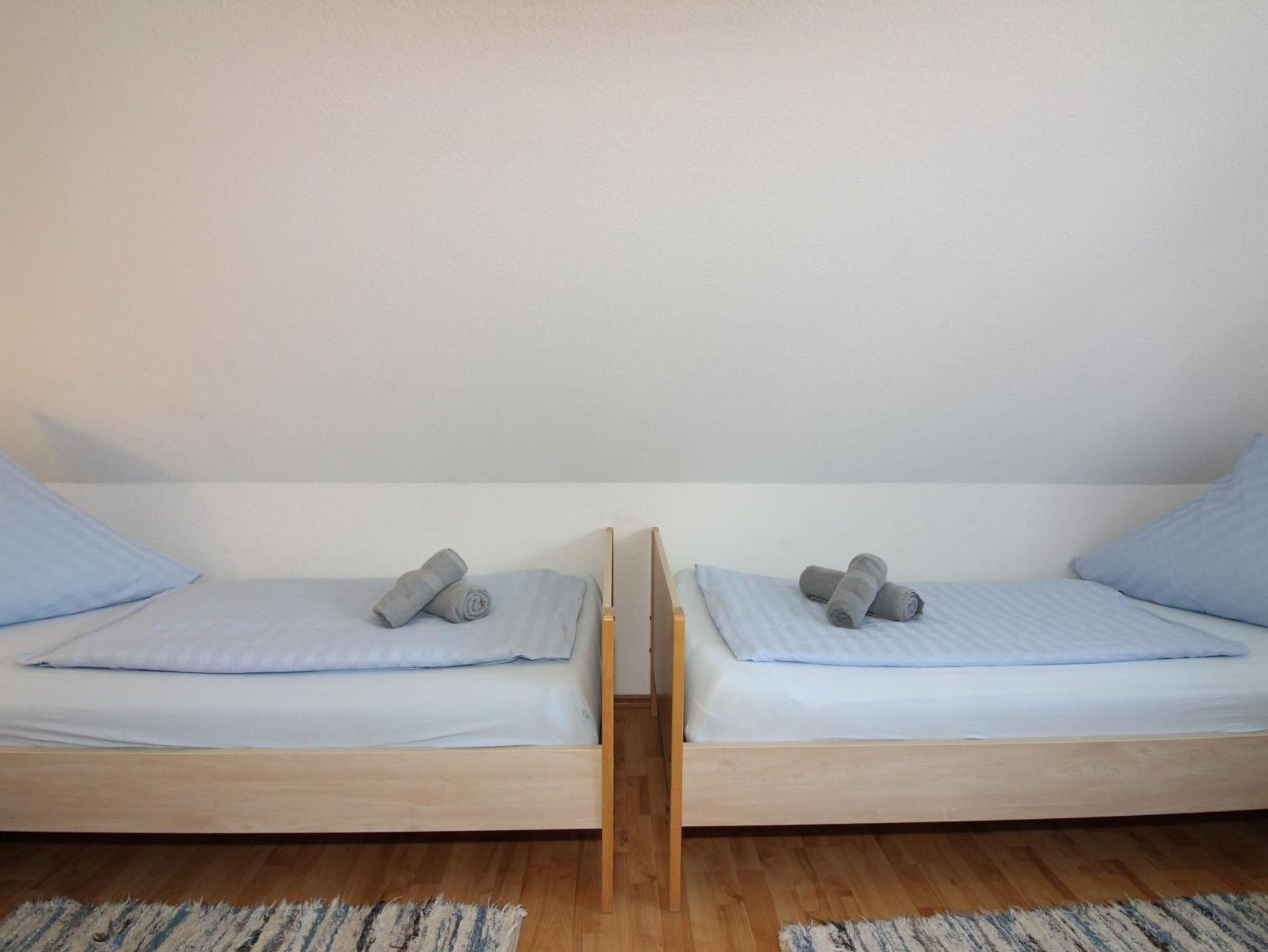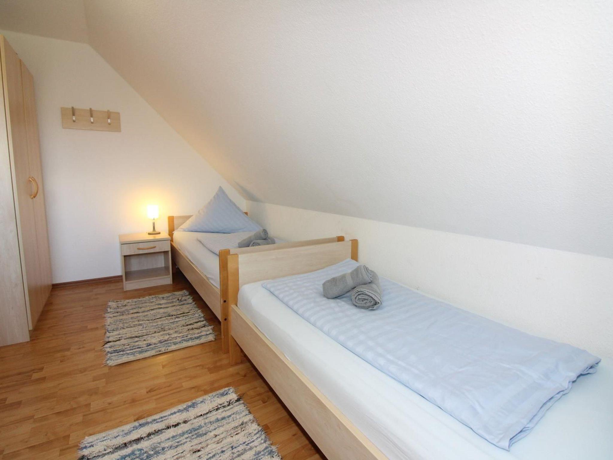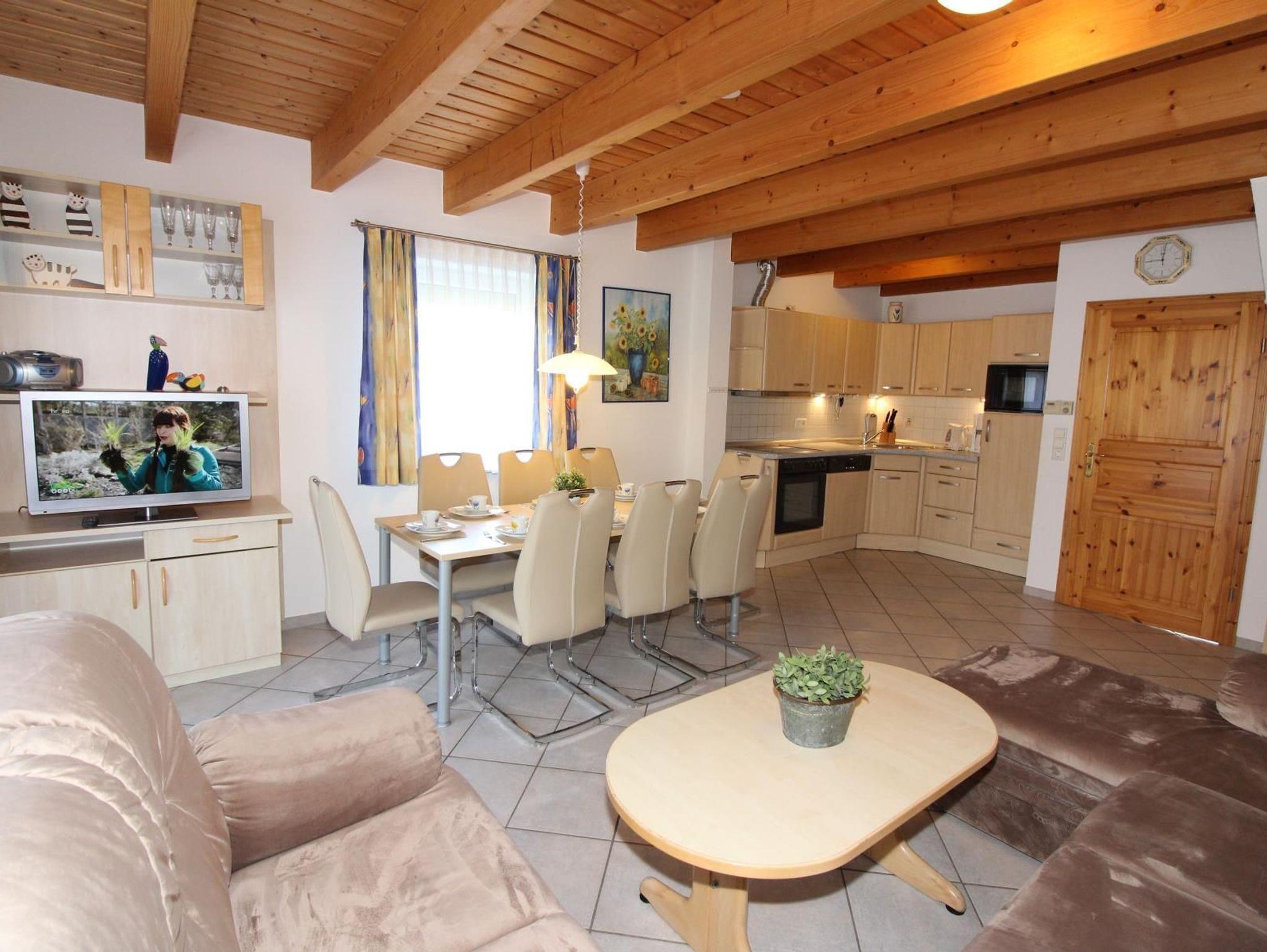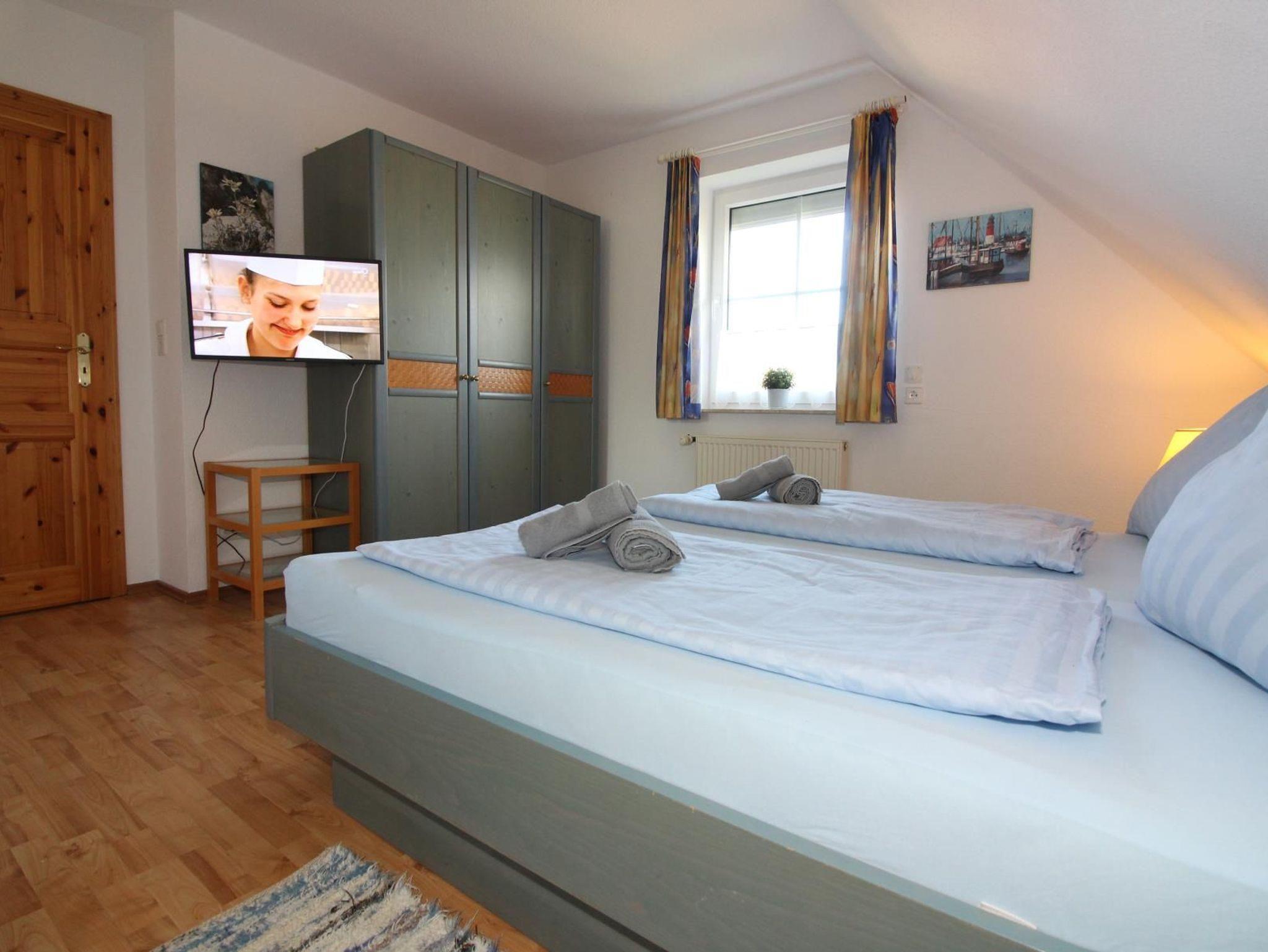 Sie wohnen in einem ruhig gelegenen Eckhaus für bis zu 8 Personen. Das Haus verfügt über eine Wohnfläche von 80 m² und drei Schlafräumen. Ein Schlafraum mit Doppelbett, zwei Schlafräume mit getrennten Betten. Wohn-/Schlafraum mit bequemer Doppelbettcouch, separater Essplatz, Kabel-TV, Stereoanlage, Telefon-ISDN-Anschluss, voll ausgestattete Einbauküche mit Mikrowelle und Geschirrspüler, Dusche/WC im Erd- und Obergeschoss, Terrasse.