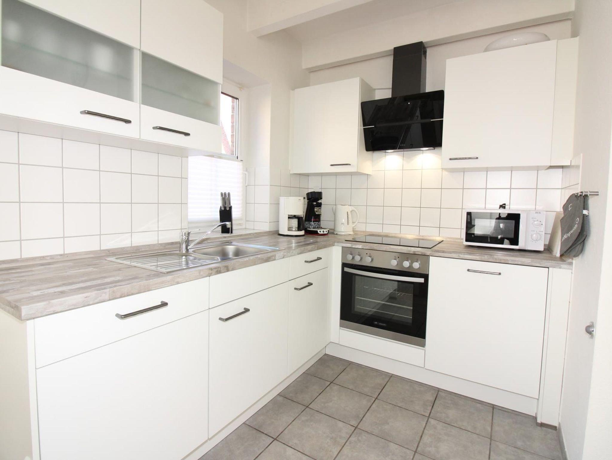 Einkleiner Flur führt zum behaglichen Wohnraum mit Zugang zur Terrasse. Die voll ausgestattete Wohnküche mit Geschirrspüler und Mikrowelle schließt sich an den Wohnraum an. Ein gemütlicher Essplatz, eine moderneSitzecke, TV, Blu-Ray-Player sowie eine separate Toilette stehen im Erdgeschoss zur Verfügung. Ein Kinderhochstuhl steht im Haus für unsere kleinsten Gäste bereit. Auf der Terrasse lädt eine moderne Sitzgarnitur mit gemütlichen Sitzauflagen, Sonnenschirm und Grill zum Entspannen ein.
