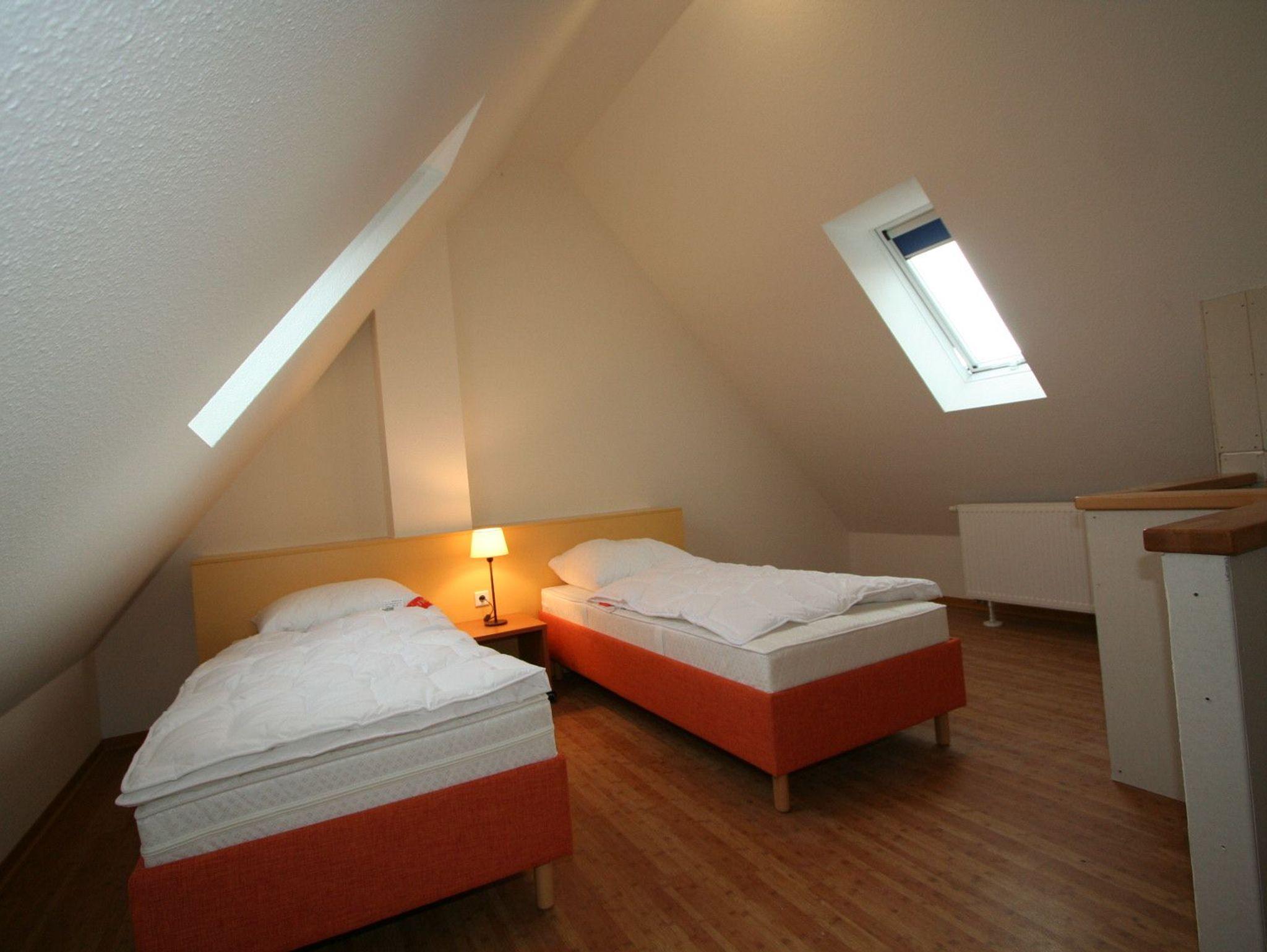 Der ausgebaute, helle Spitzboden mit zwei Dachflächenfenstern verfügt über zwei Betten und einen gemütlichen Lesesessel. Er ist mit einem weiteren Flachbild-TV mit allen erforderlichen Anschlüssen für moderne Spielekonsolen und einem DVD-Player ausgestattet.