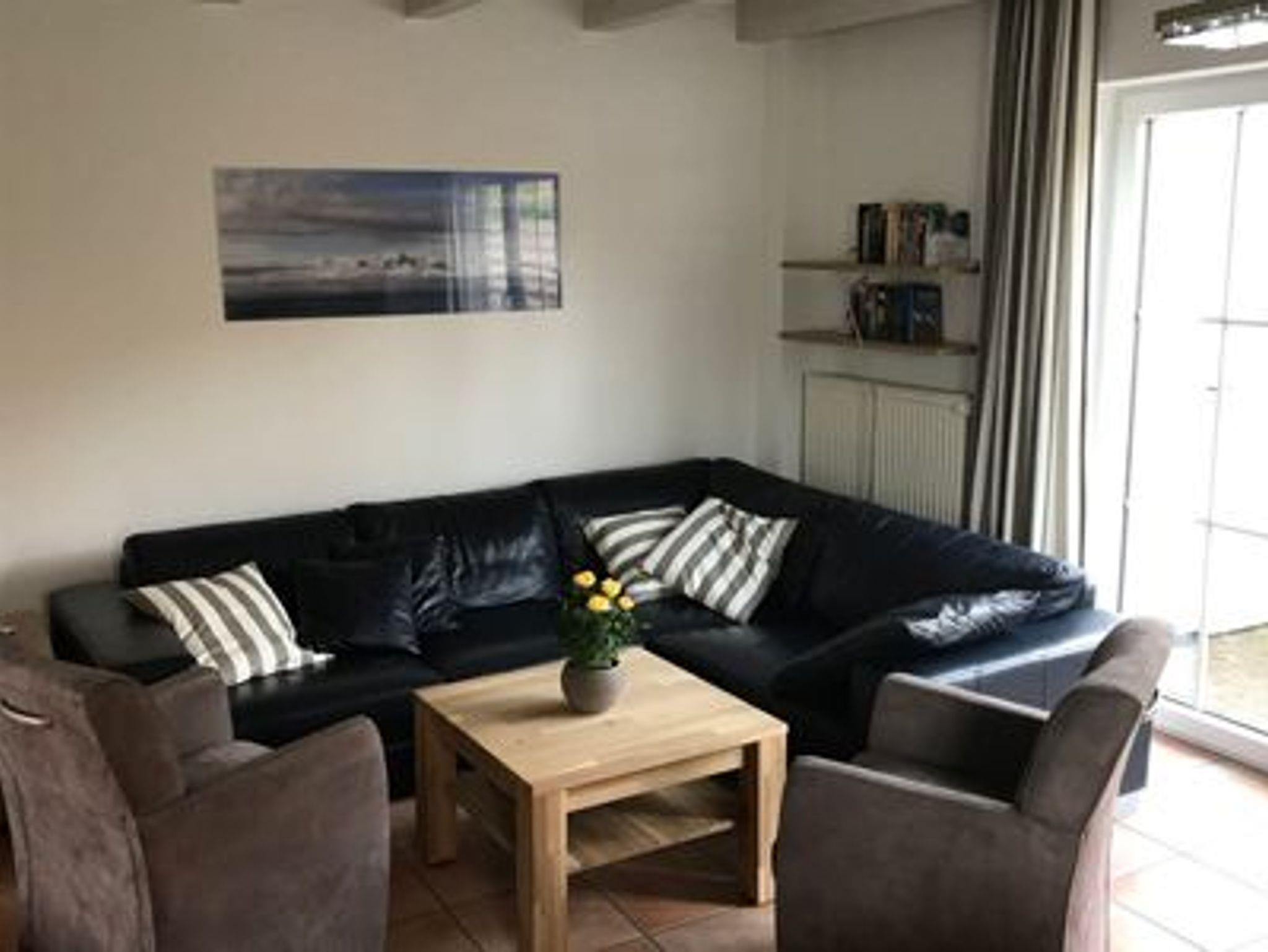 Sie wohnen in einem 4-Zimmer-Ferienhaus (Doppelhaus) für bis zu 6 Personen. Das Haus verfügt über eine Wohnfläche von ca. 65 m² und drei Schlafräume mit Verdunkelungsrollos. 1. Schlafzimmer mit Doppelbett, 2. Schlafzimmer mit zwei Einzelbetten, 3. Schlafzimmer mit Etagenbett. Mückengitter im 1. und 2. Schlafzimmer. Separater Essplatz, voll ausgestatteter Küchenbereich mit Geschirrspüler, Backofen, Ceranfeld, Senseo-Kaffeemaschine und Mikrowelle. Safe, Bad mit Dusche/ WC, zusätzliches WC, Terrasse mit Außengrill. 2 Kabel-TV,, Blu ray-Player, Musikanlage mit Bluetooth. Kinderreisebett mit zus.Matratze, Kinderhochstuhl, Wandwickelregal, Flaschenwärmer, Kindergeschirr, Treppenkindersicherung.