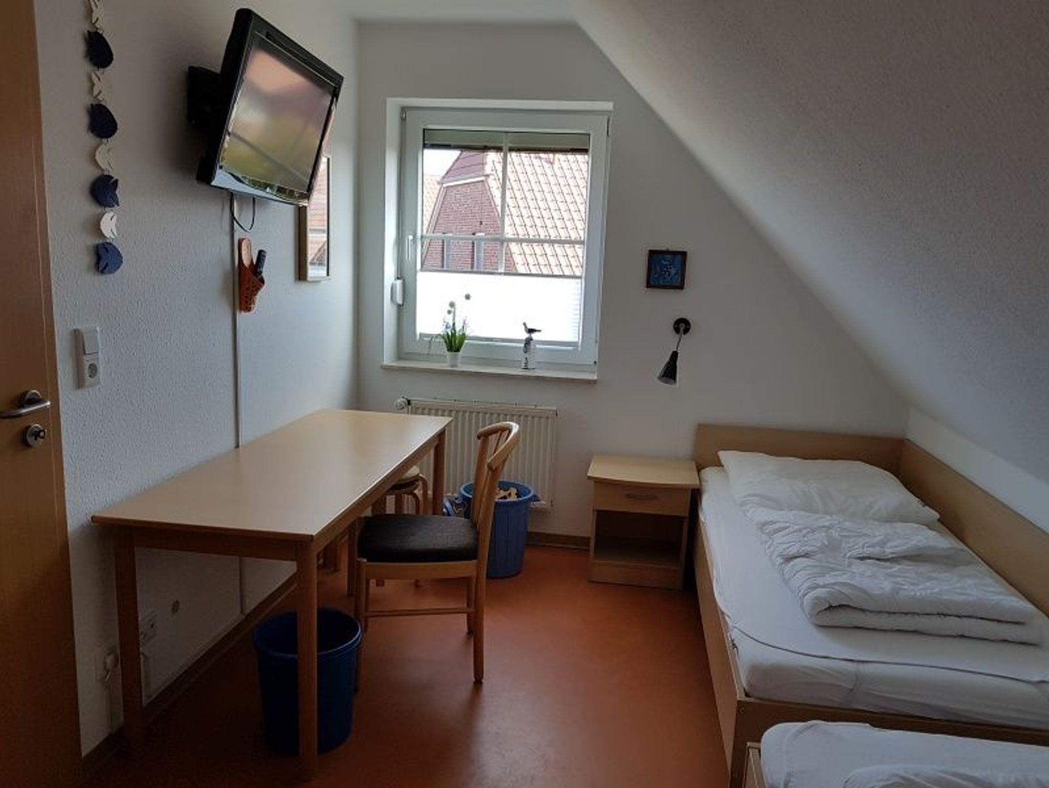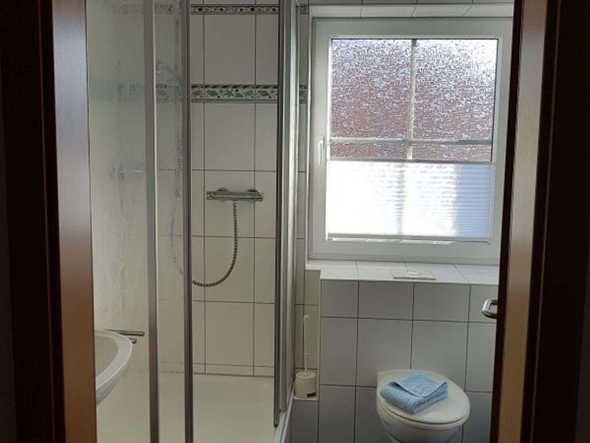 Im Erdgeschoß befindet sich ein Schlafzimmer (Etagenbett) und ein Duschbad.