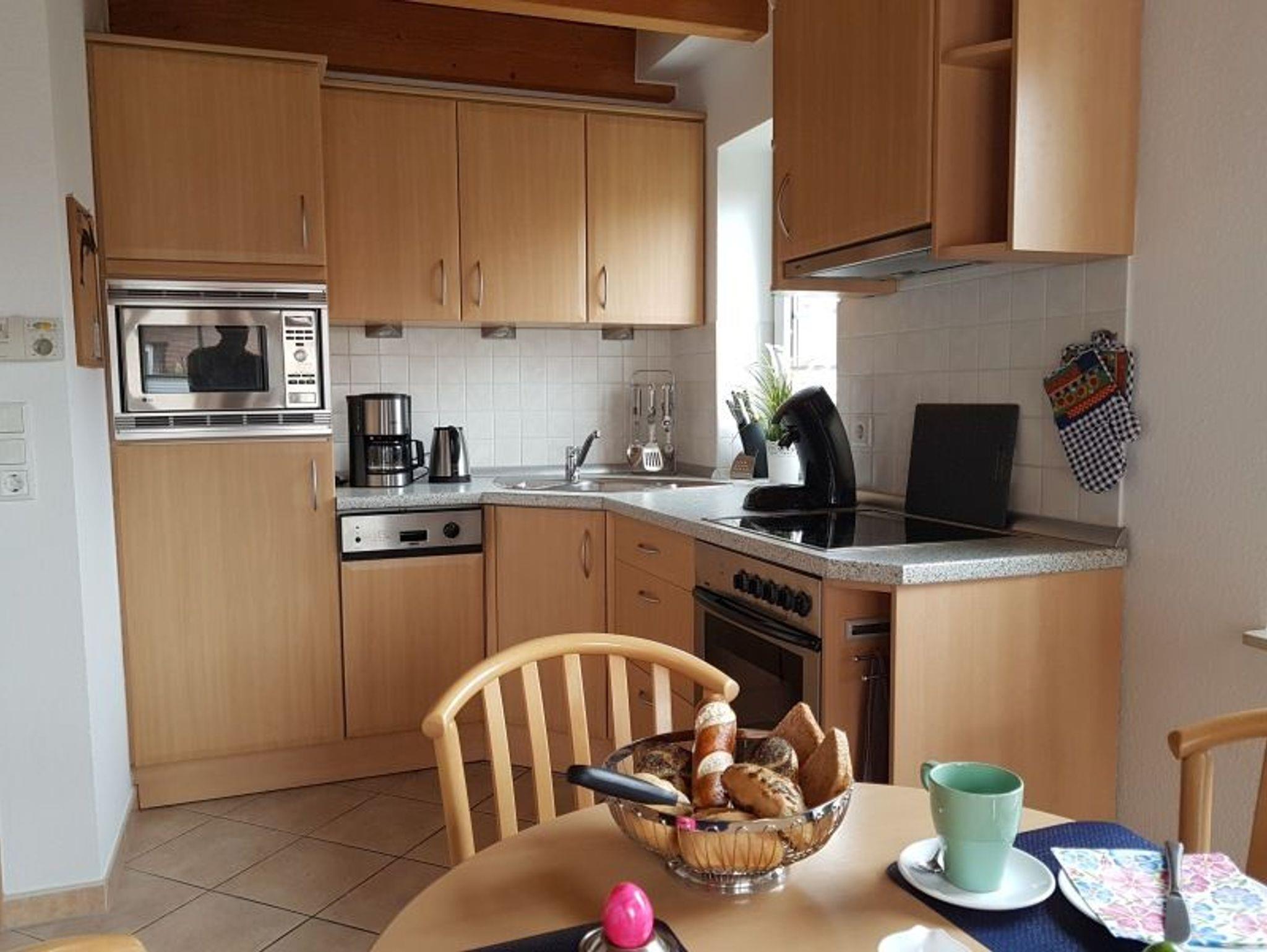 Kleingeräte wie Kaffeemaschine plus Senseo, Wasserkocher, Toaster, Eierkocher, Stabmixer usw. sind ebenfalls vorhanden.