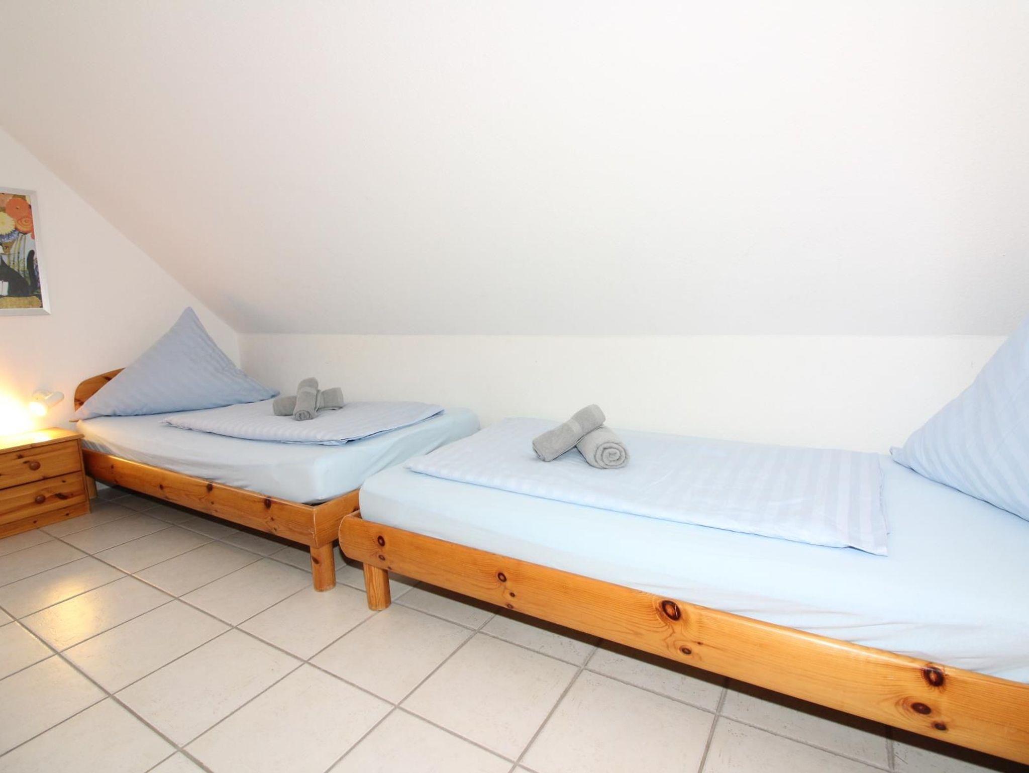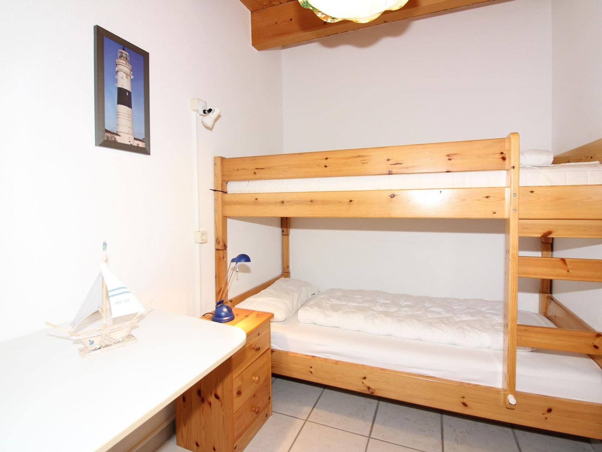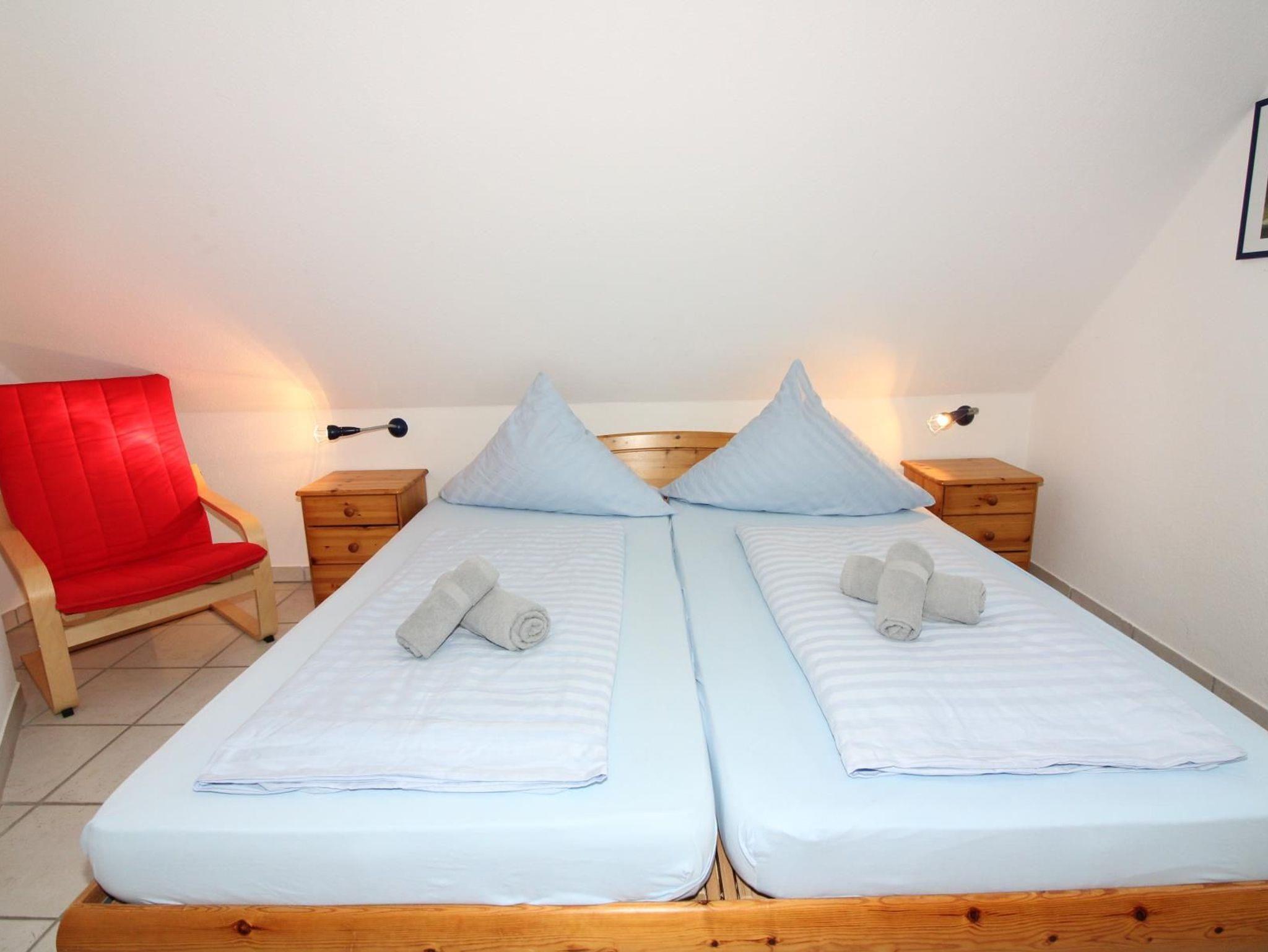 Ein Schlafzimmer mit großem Doppelbett 200 cm x 200 cm, ein Schlafzimmer mit getrennten Betten und ein Schlafzimmer mit Kinder-Etagenbett.