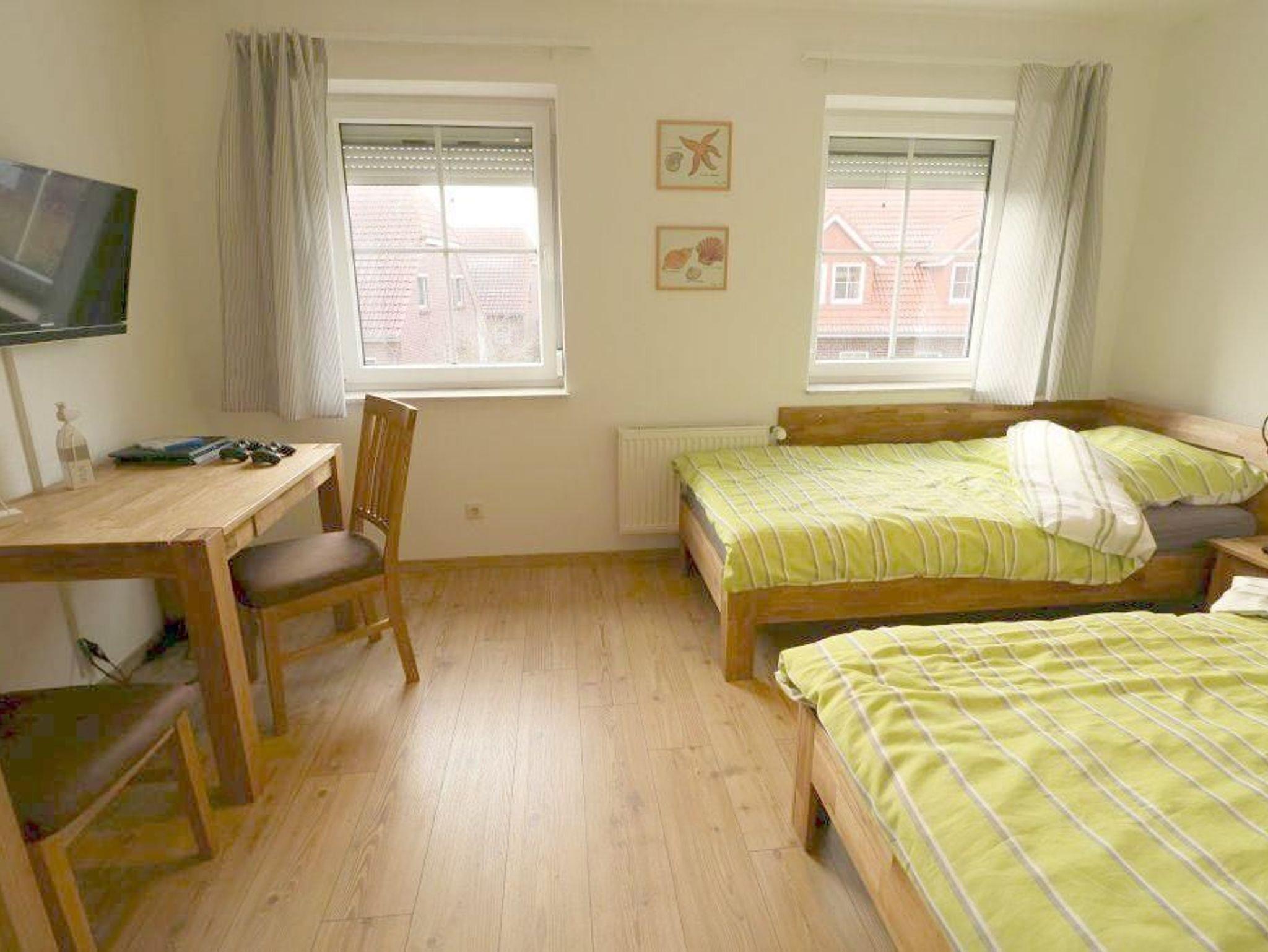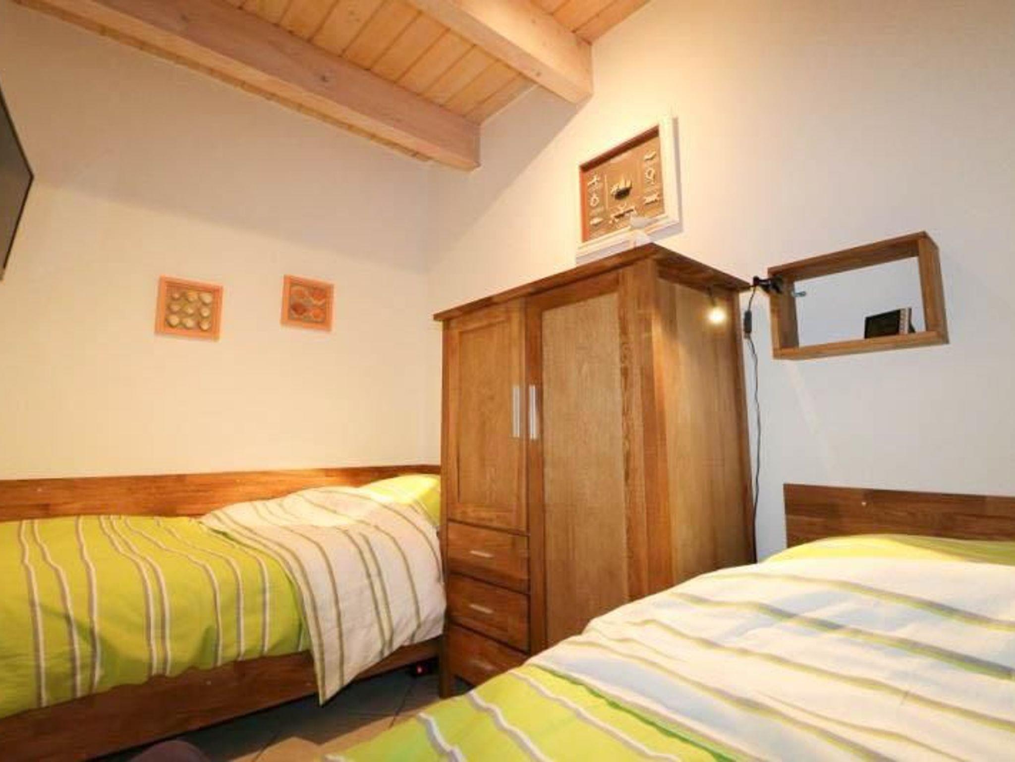 Außerdem befindet sich im Erdgeschoss ein Schlafzimmer mit zwei Einzelbetten, Flachbild-TV, sowie ein WC mit Dusche.