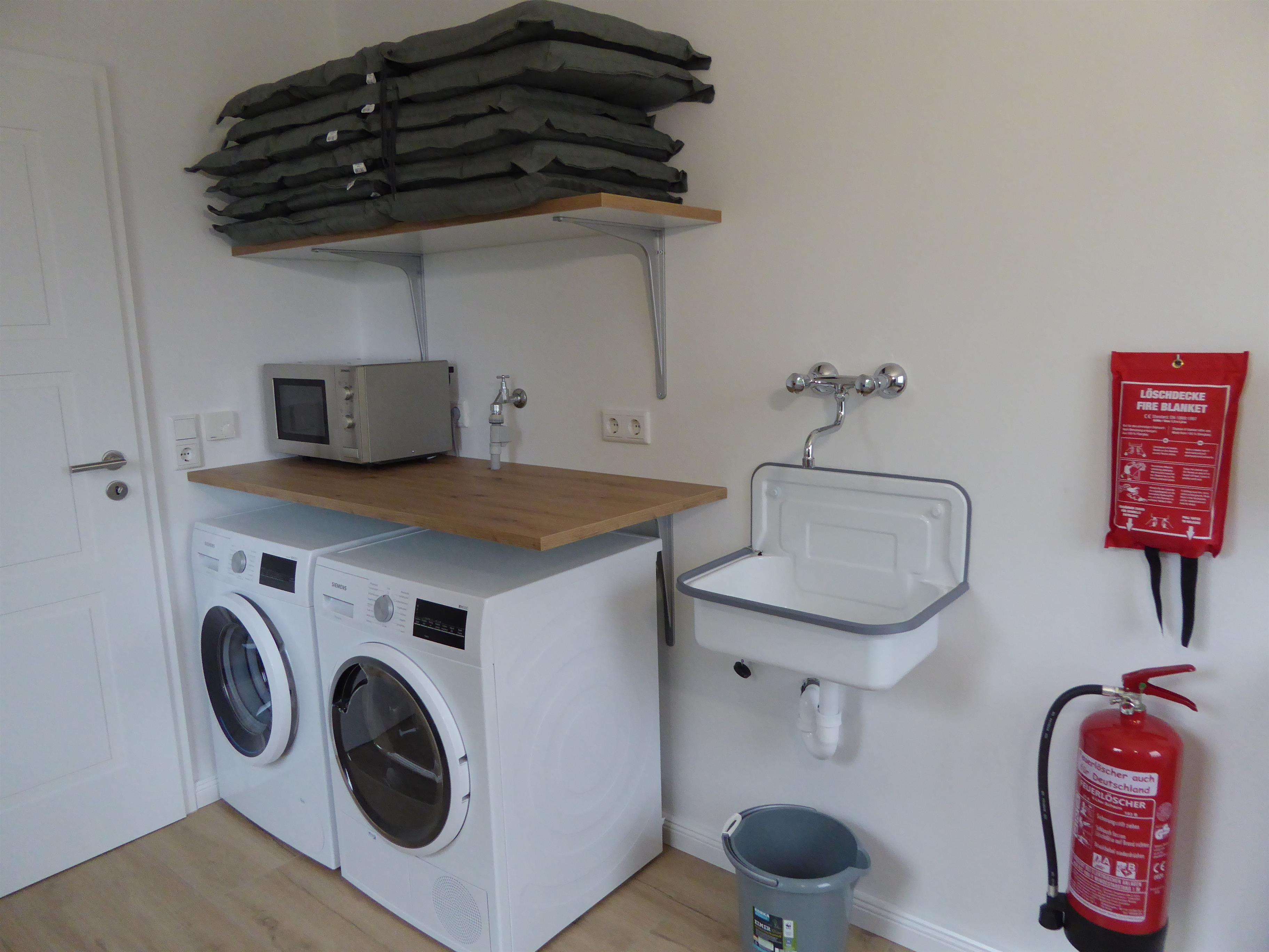 In einem separaten HWR befinden sich Waschmaschine, Trockner sowie eine Mikrowelle.