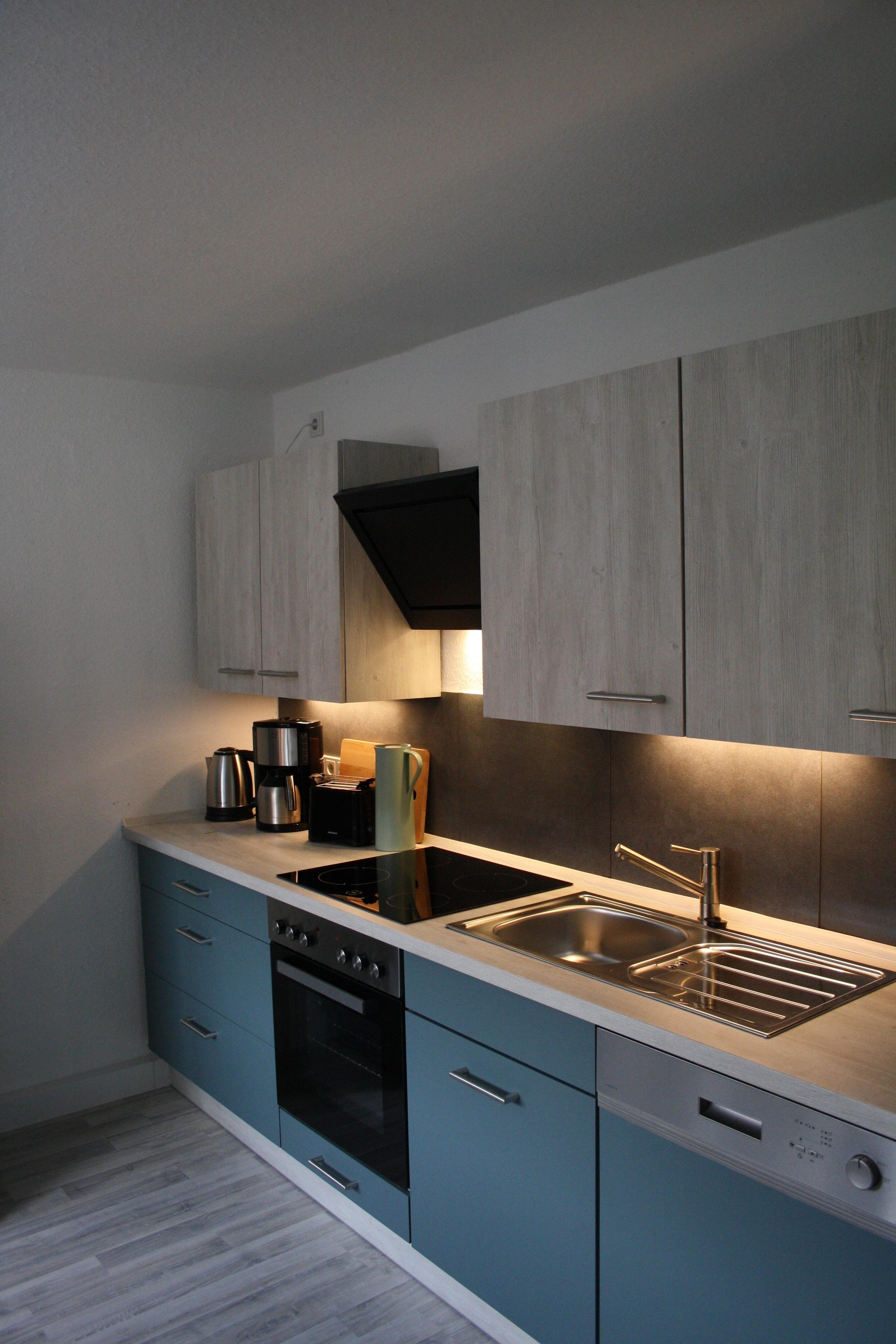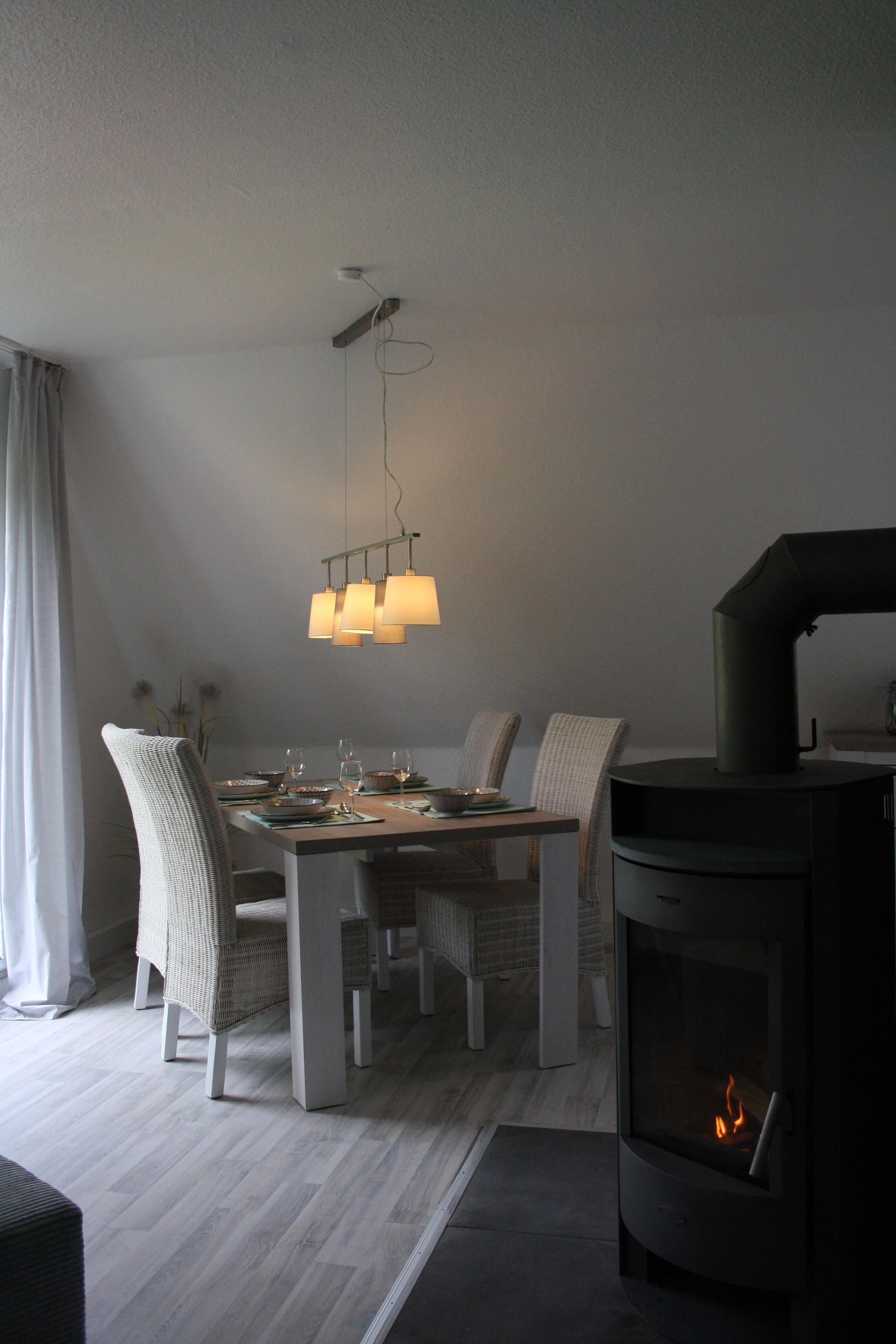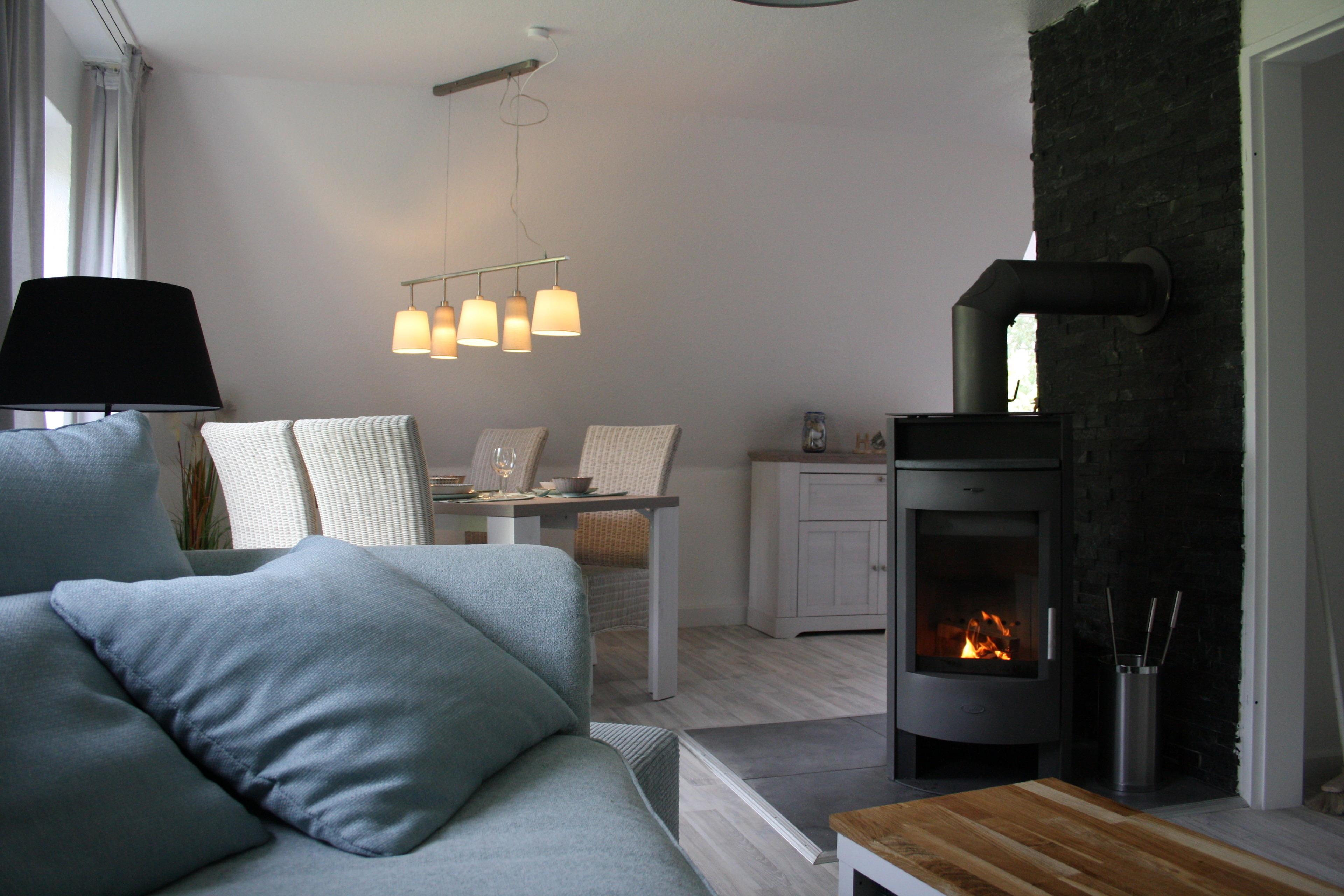 Der große Wohnraum mit offener, komplett eingerichteter Einbauküche, am großen Esstisch ist genug Platz um kulinarische Leckereien in gemütlicher Atmosphäre zu Speisen. Oder auch einen geselligen schöne Spieleabende zu verbringen.