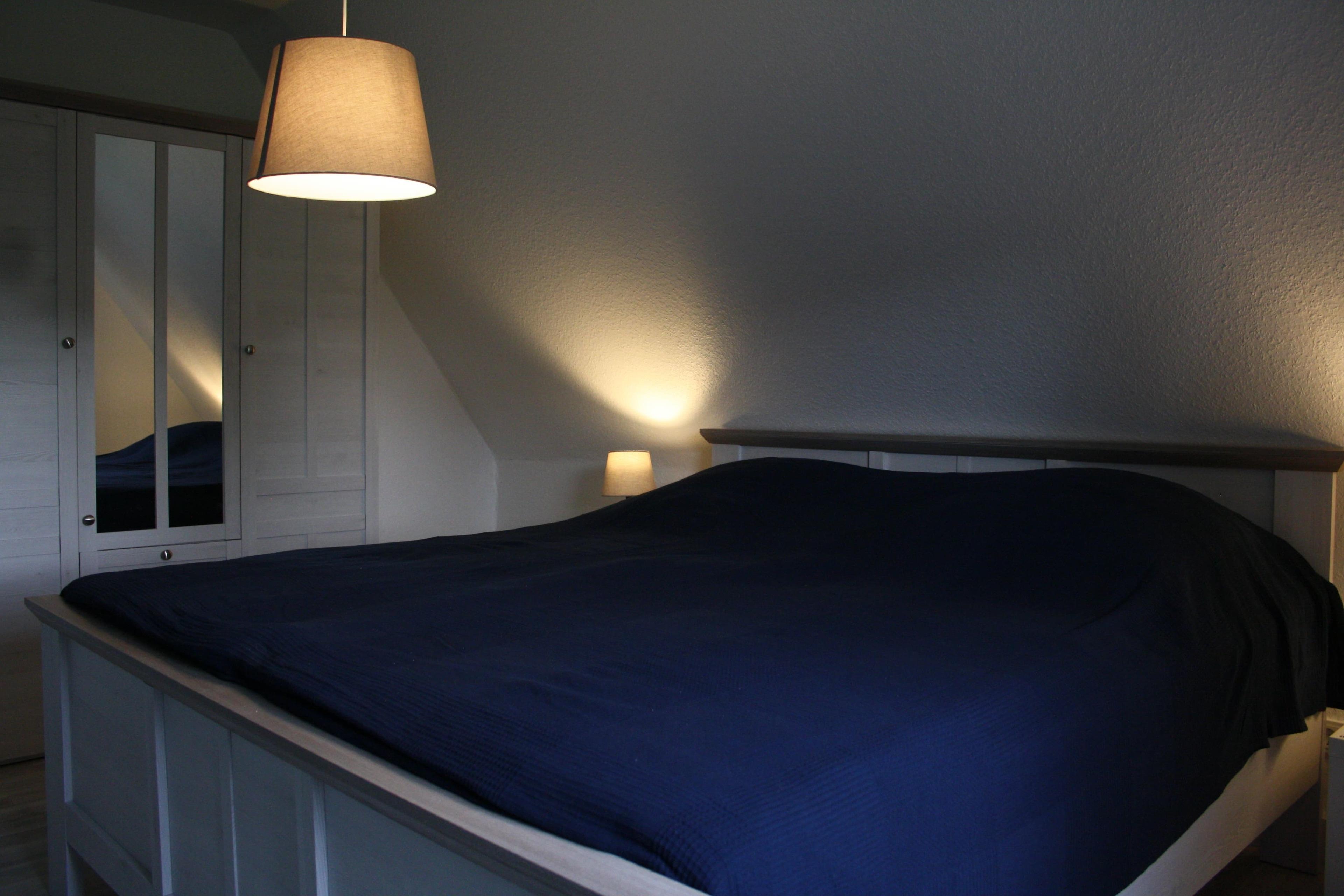 befindet sich im 1. Obergeschoss und ist über eine Treppe zu erreichen. Die Wohnung hat zwei Schlafzimmer. In jedem Schlafzimmer sind sich ein Doppelbett 180 x 200 und ein Kleiderschrank.