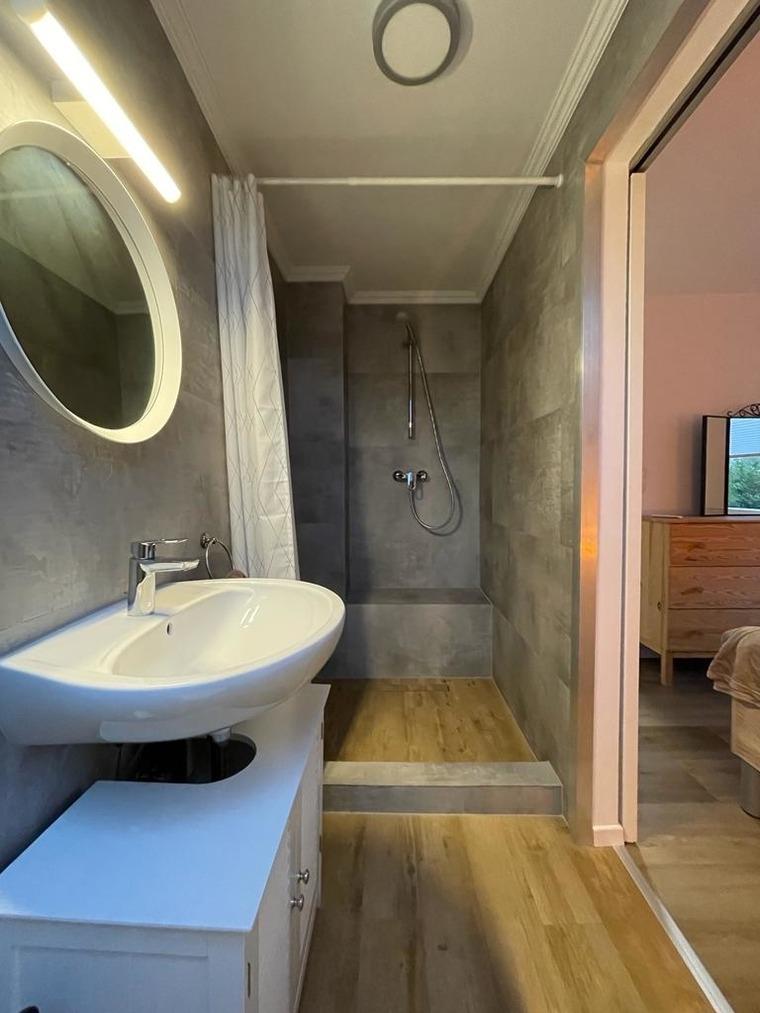 Das Duschbad ist ein Bad en Suite und kann nur über das Hauptschlafzimmer im ersten Stock erreicht werden.
