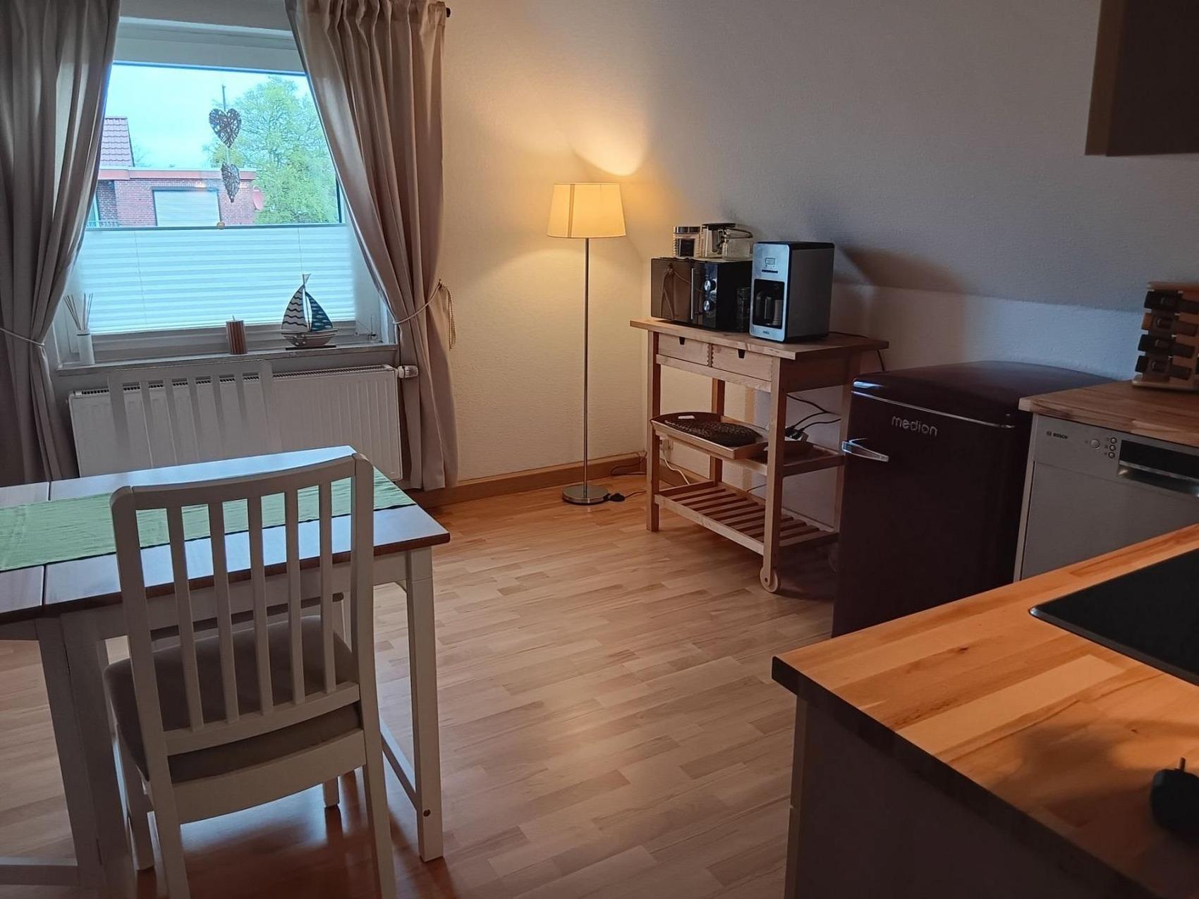 Das Ferienhaus befindet sich im alten Ortskern von Tossens, einem Küstenort Butjadingens, direkt an der Nordsee. Das Ferienhaus liegt zentral und trotzdem ruhig. Das Haus hat zwei Haupteingänge mit Flur, von denen jeweils zwei Ferienwohnungen abgehen. Die helle, gemütliche Ferienwohnung "Heringsmöwe" liegt im 1. Obergeschoss und das Schlafzimmer im Dachgeschoss und bietet für 2 Personen Platz. Die Ferienwohnung bietet 2 Schlafplätze in einem großen Doppelbett mit den Maßen 200 x 200 cm . Für die ganz kleinen Gäste kann auf Wunsch ein Kinderbett und Kinderstuhl zur Verfügung gestellt werden.Das Wohnzimmer verfügt eine gemütliche Couch mit einem modernen Smart-TVFür jeden Gast steht kostenloses WLAN zur Verfügung. Zu jeder Ferienwohnung gehört ein Parkplatz. Die Stellplätze befinden sich unmittelbar vor dem Haus.Alle Wohnungen sind komplett ausgestattet und bestehen zum Teil aus einem Wohnraum mit Küchenzeile, einem Schlafraum und Duschbad.In der Ferienwohnung Heringsmöwe sind Hunde erlaubt. In nur 500 Meter Entfernung gibt es Einkaufsmöglichkeiten. Zum Strandbad ist es nur ca. 1 km, dort gibt es auch einen abgetrennten Hundestrand. Auch ein Ärztehaus, Restaurants, Eisdiele und eine Apotheke befinden sich in der Nähe. In Tossens gibt es neben dem Strandbad auch ein überdachtes Badeparadies, das Aqua Mundo mit Saunalandschaft. In der Nordseelagune in Burhave können Sie den ganzen Tag baden und am Sandstrand relaxen. Surfen, Wasserski, Kitesurfen und Angeln sind in verschiedenen Badeorten möglich.In der Spielscheune Burhave können Kinder unter Aufsicht spielen. Die rund 200 km lange "Deutsche Sielroute" lädt zum Radwandern ein. Auf vorbildlich markierten und landschaftlich reizvollen Wegen erkunden Sie die Region, genießen das Salz in der frischen Luft und lassen sich von der Vielfalt Butjadingens inspirieren.Kurtaxe:Zusätzlich zum Mietpreis kommt noch die Kurtaxe hinzu. Diese beträgt im Zeitraum vom 01.03. bis 31.10 für Erwachsene 3,20 Euro pro Tag und Erwachsener, und für Kinder vom 3. bis zum 13. Lebensjahr 1,95 Euro pro Tag und Kind.Im Zeitraum vom 01.11 bis 31.02 beträgt die Kurtaxe für Erwachsene 1,50 Euro pro Tag und Erwachsener, und für Kinder vom 3 bis zum 13. Lebensjahr 0,85 Euro pro Tag und Kind.Die Kurtaxe entrichten Sie in der Unterkunft.