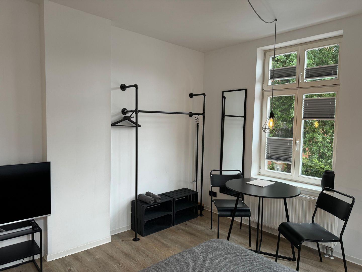 Das 22 qm große 1-Zimmer Apartment (Nichtraucher) befindet sich im 1. Obergeschoss eines 2014 renovierten denkmalgeschützten Gebäudes und bietet Platz für zwei Personen. Öffentliche Stellplätze (teilweise kostenpflichtig) sind fußläufig erreichbar.