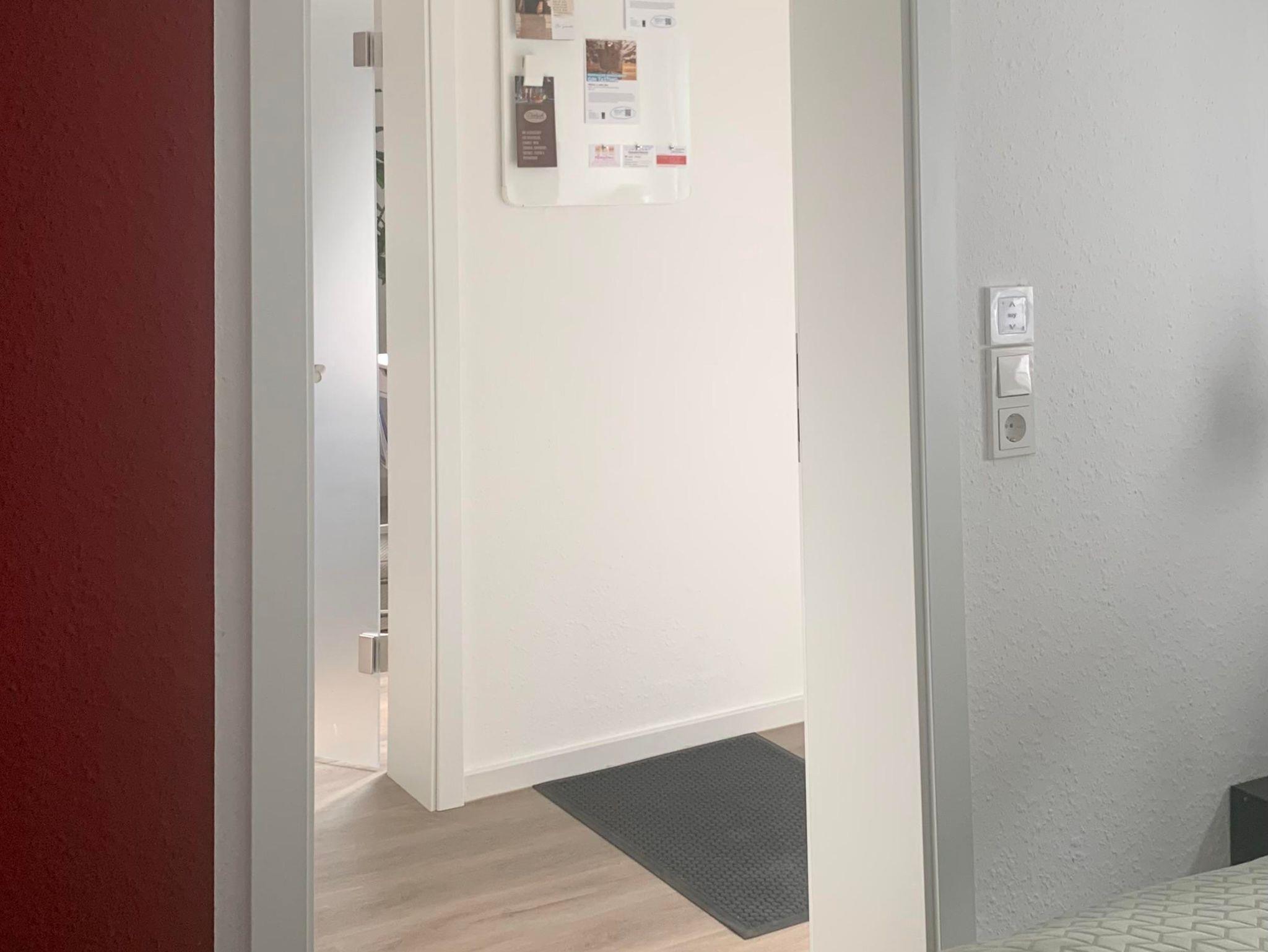 Alle Fenster der Ferienwohnung verfügen über eine Zwangsbelüftung und elektrische Rollläden. Zu Ihrer Sicherheit sind unsere Wohnungen mit Rauchmeldern und Feuerlöscher ausgestattet. Der zur Wohnung gehörende Parkplatz mit Wallbox ist direkt vor Ihrer Tür. Das Appartement befindet sich im ruhigen Hinterhaus, das nur über eine private Zufahrt zu erreichen ist. Von dort aus sind es nur wenige Meter bis zur Bahn-u. Bushaltestelle.