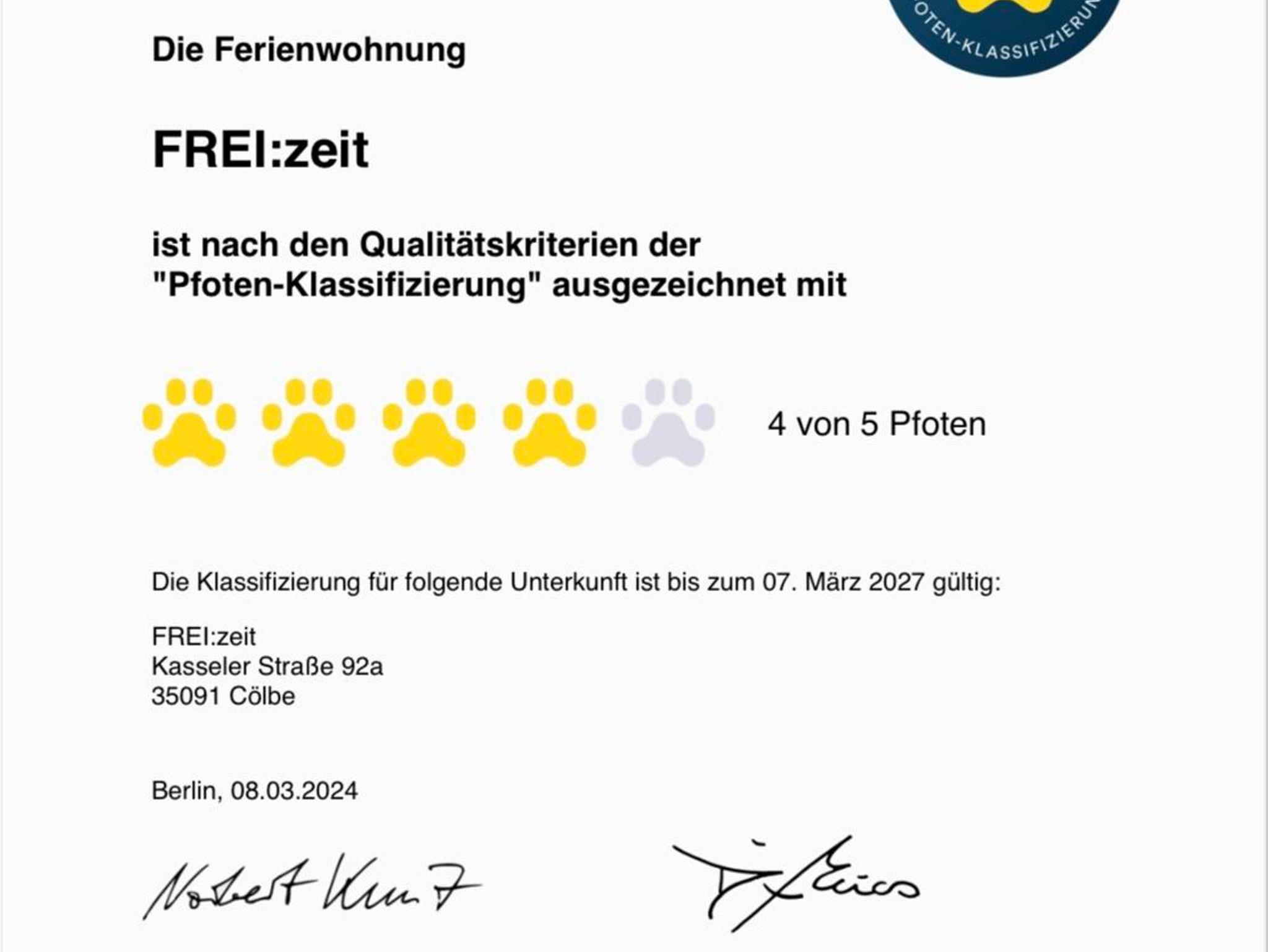 Reisende mit Hund wird es freuen, dass alle unsere Wohnungen mittlerweile vom DTV und dem Portal „Deine Tierwelt“ als hundefreundliche Unterkünfte geprüft und mit vier von fünf möglichen Pfoten zertifiziert wurden! Für 15,-€/ Nacht und Tier stellen wir Ihrer mitreisenden Fellnase gerne unser umfangreiches Haustier-Package zur Verfügung.