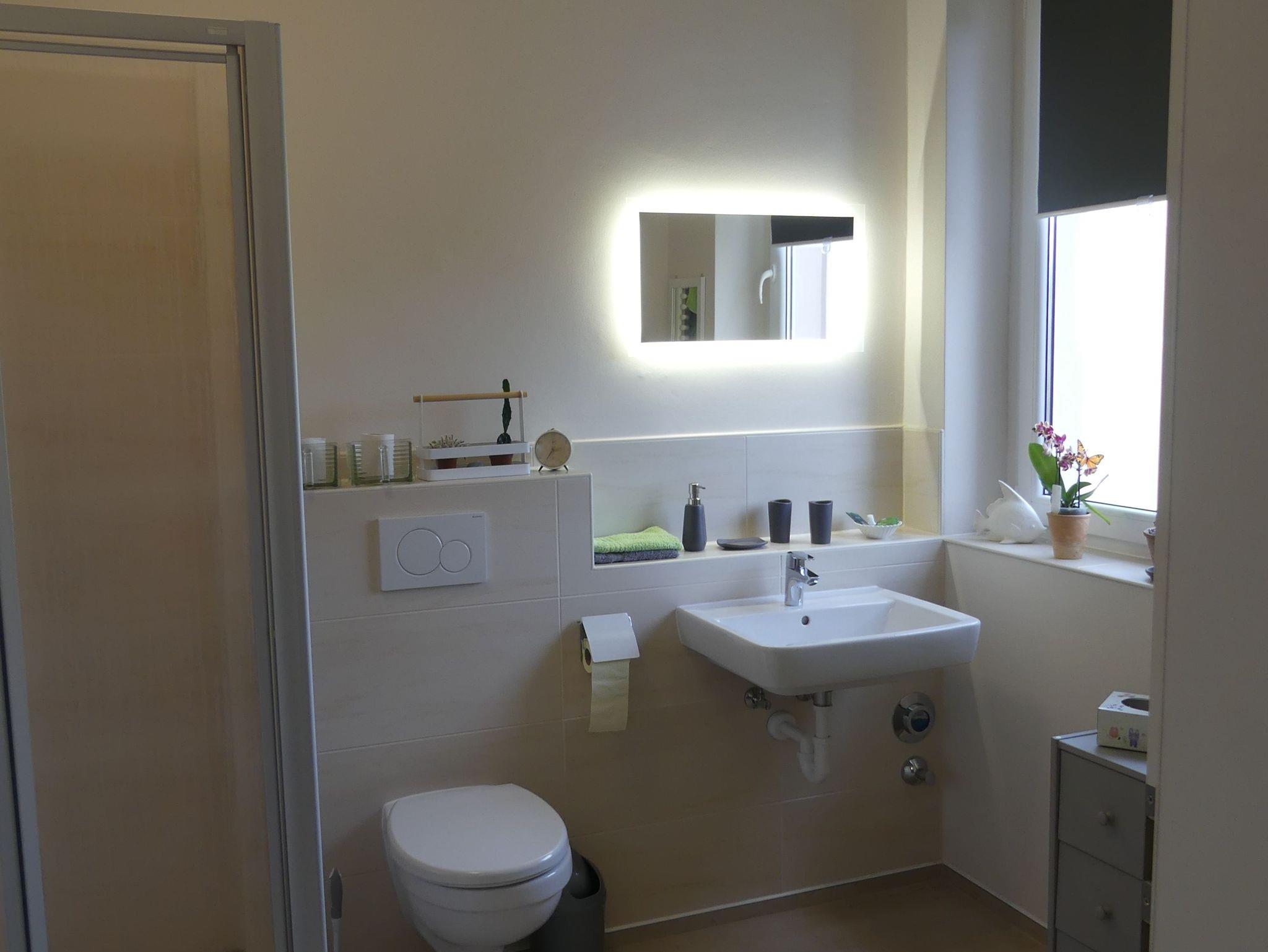 neues Bad mit Dusche und Leuchtspiegel